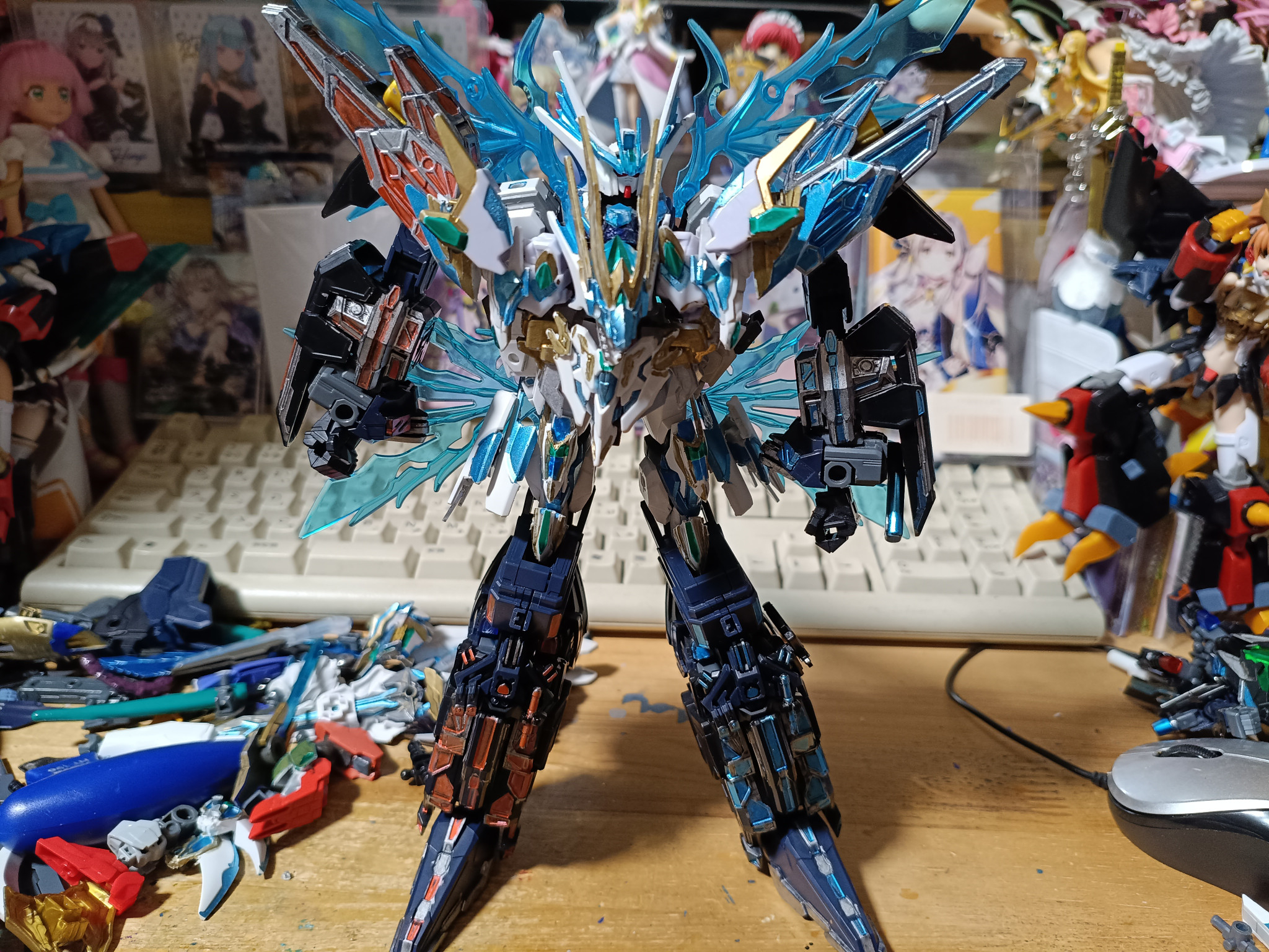 以上です いやこれ塗装かなり大変そうとりあいず黒のパーツを白に塗装して青とゴールドで塗装したいところでもできればまだ塗装してないパーツを使いけど足はあるけど腕が前に手放したからない 中古屋さんで買いなおしたいけどなかなか高いからねこのガンプラ(´;ω;`)といって模型屋さんにも置いてないと まあこの形態は完成が先か諦めて消滅が先かどちらかです場所もかなり取るというね(;・∀・)