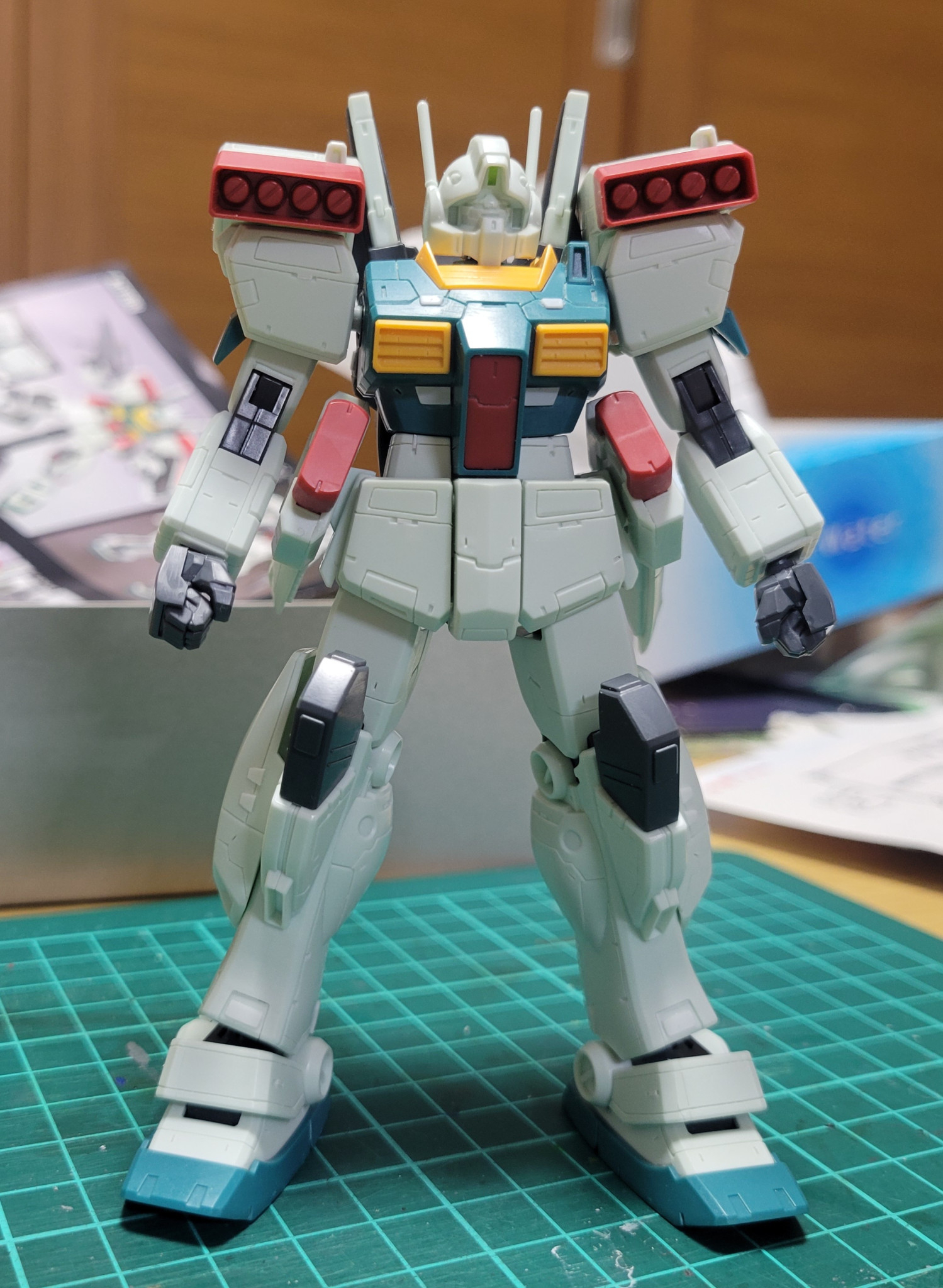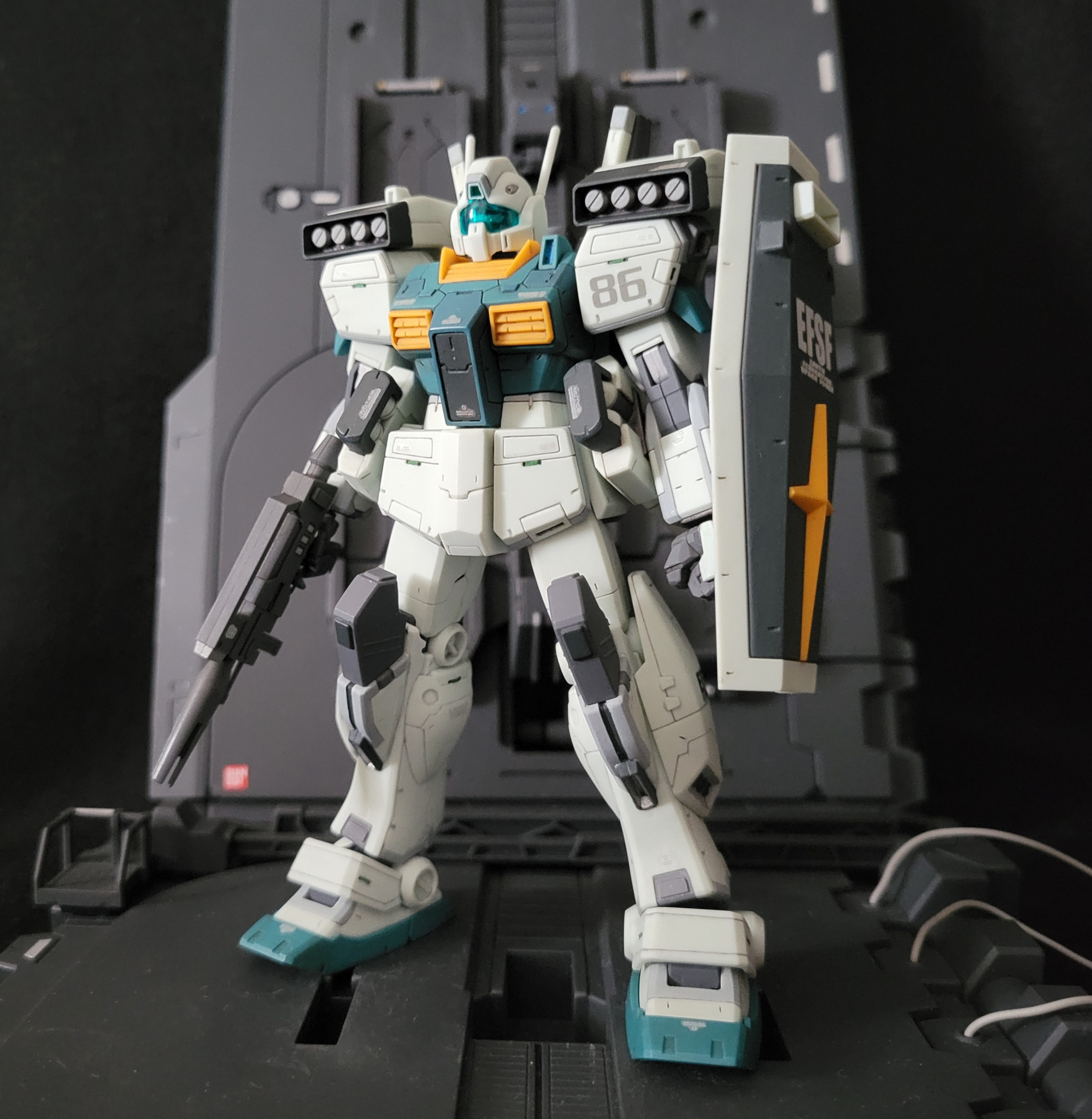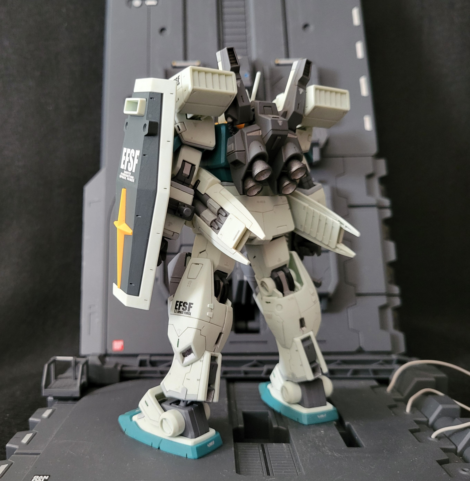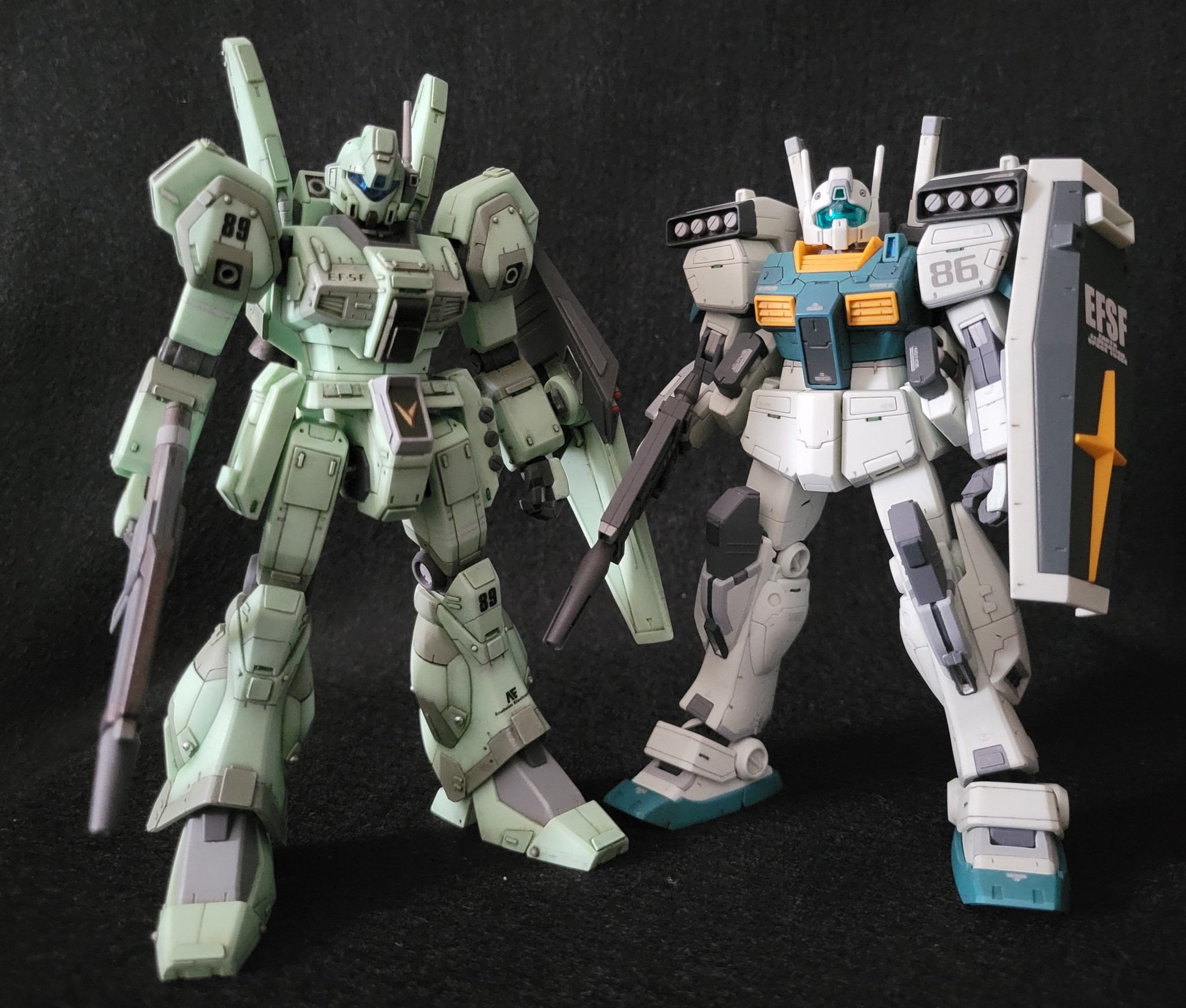 ジェガンと2ショット。ジェガンに比べるとパッと見プレーンな仕上がりになりました。なんか…連邦量産型MSにはついつい入れ込み過ぎてるかも。