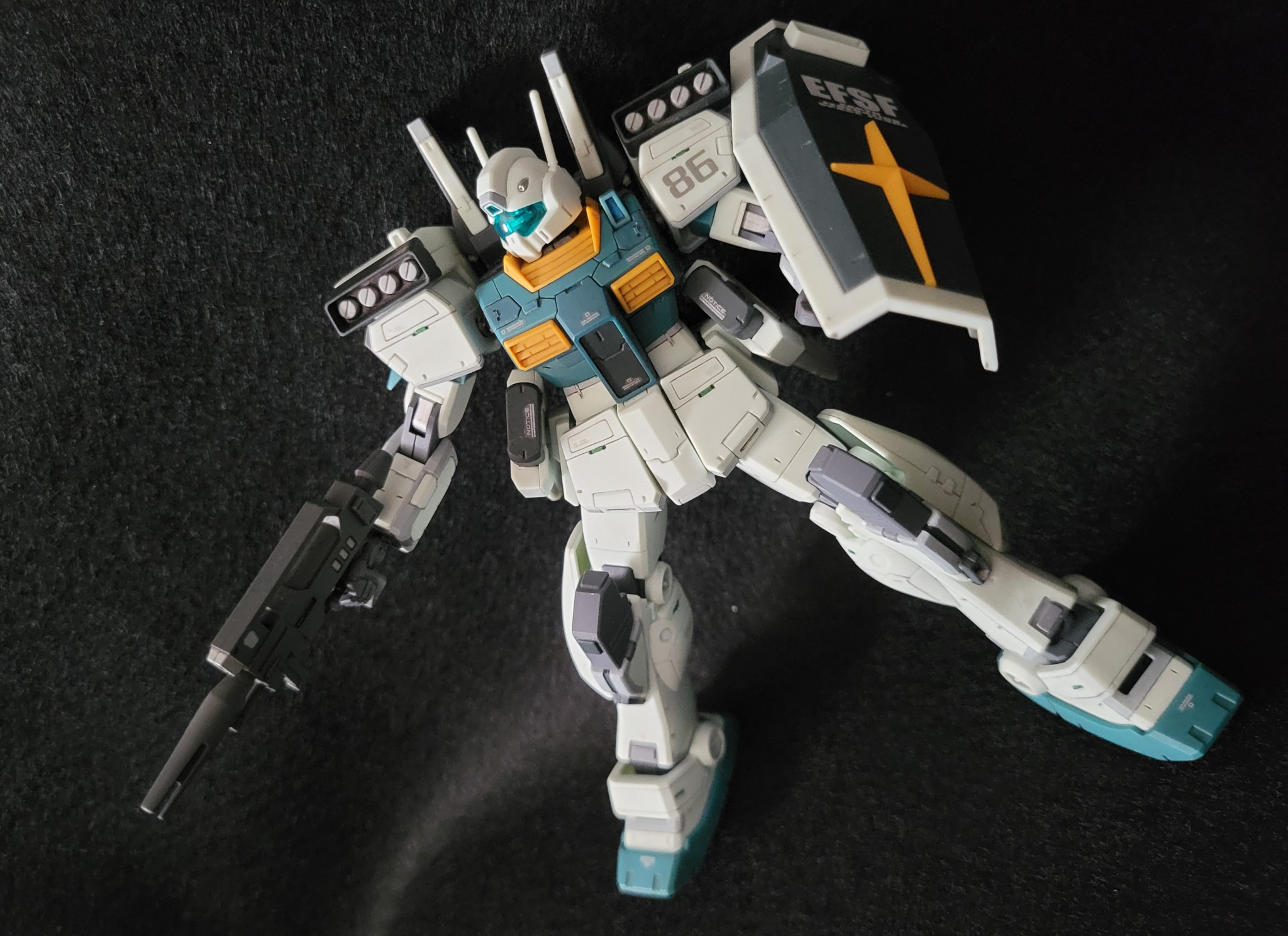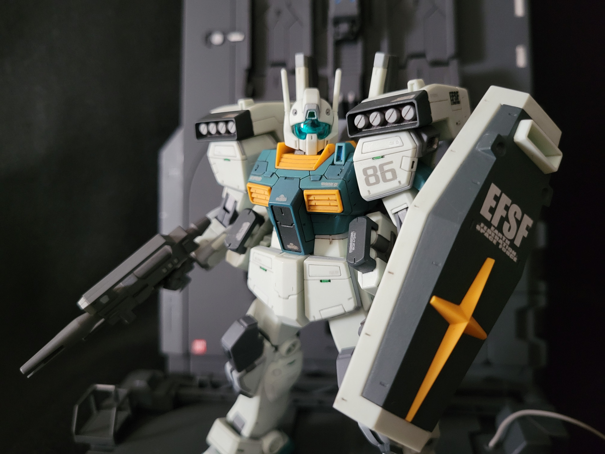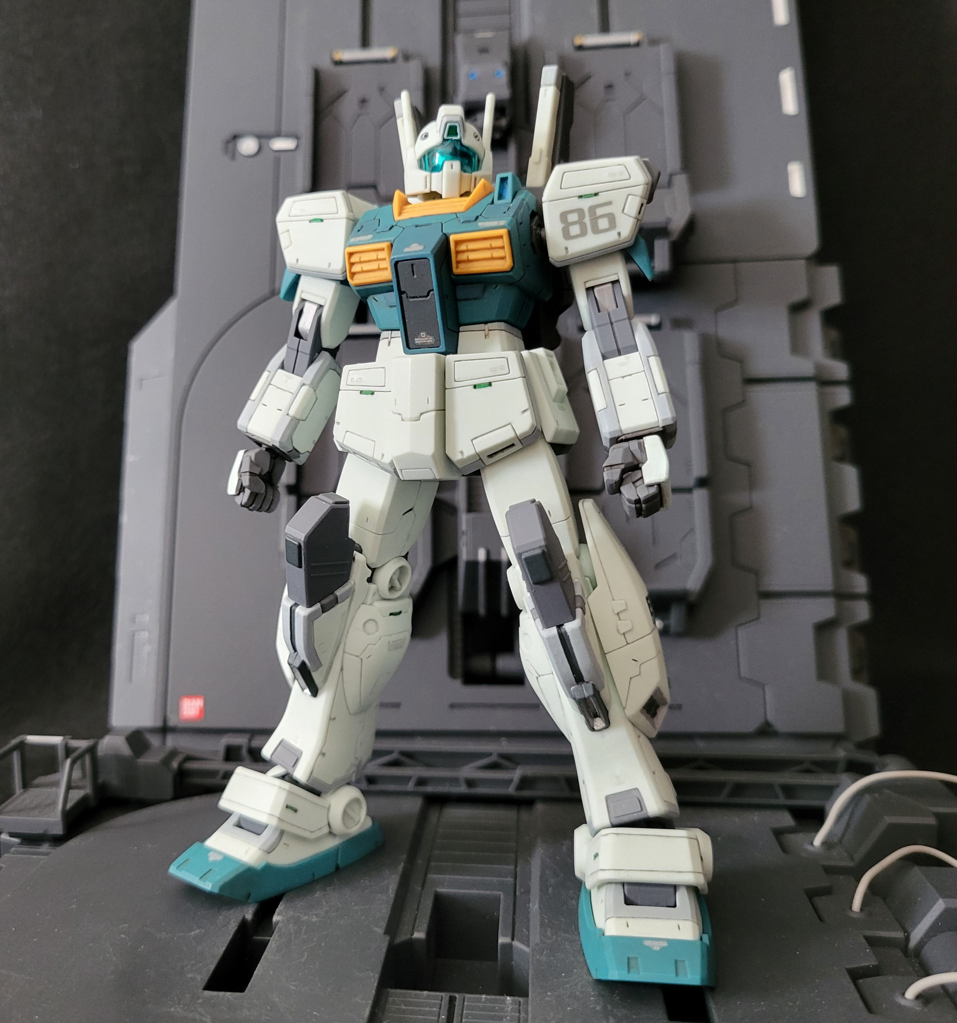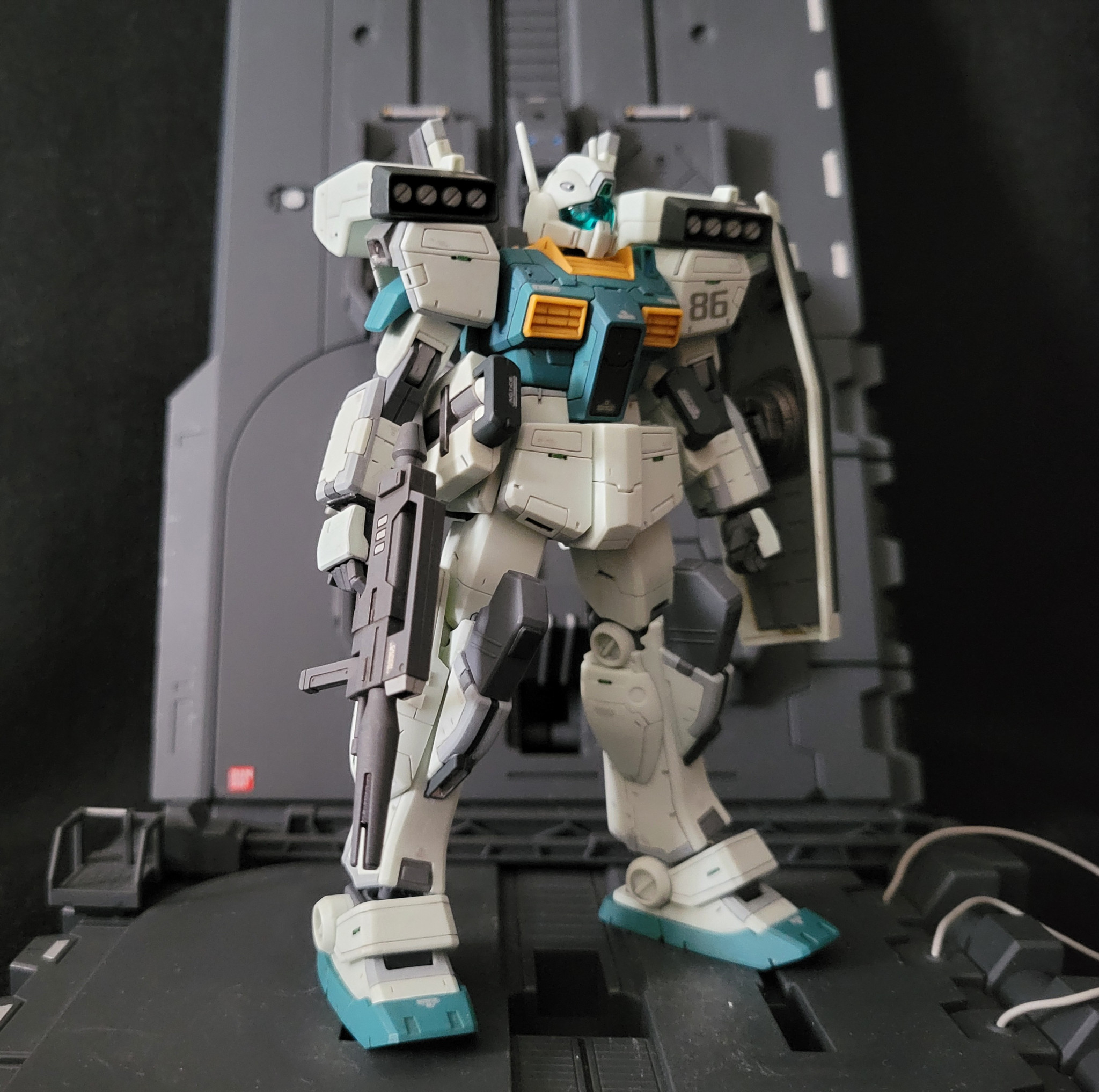 ジェガンと2ショット。ジェガンに比べるとパッと見プレーンな仕上がりになりました。なんか…連邦量産型MSにはついつい入れ込み過ぎてるかも。
