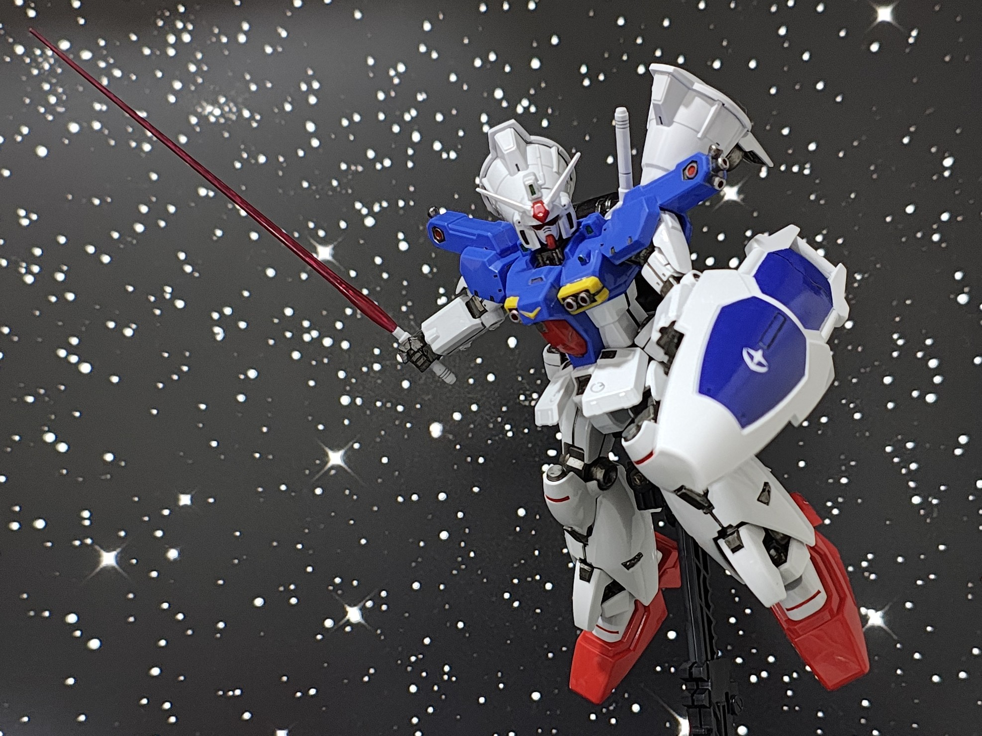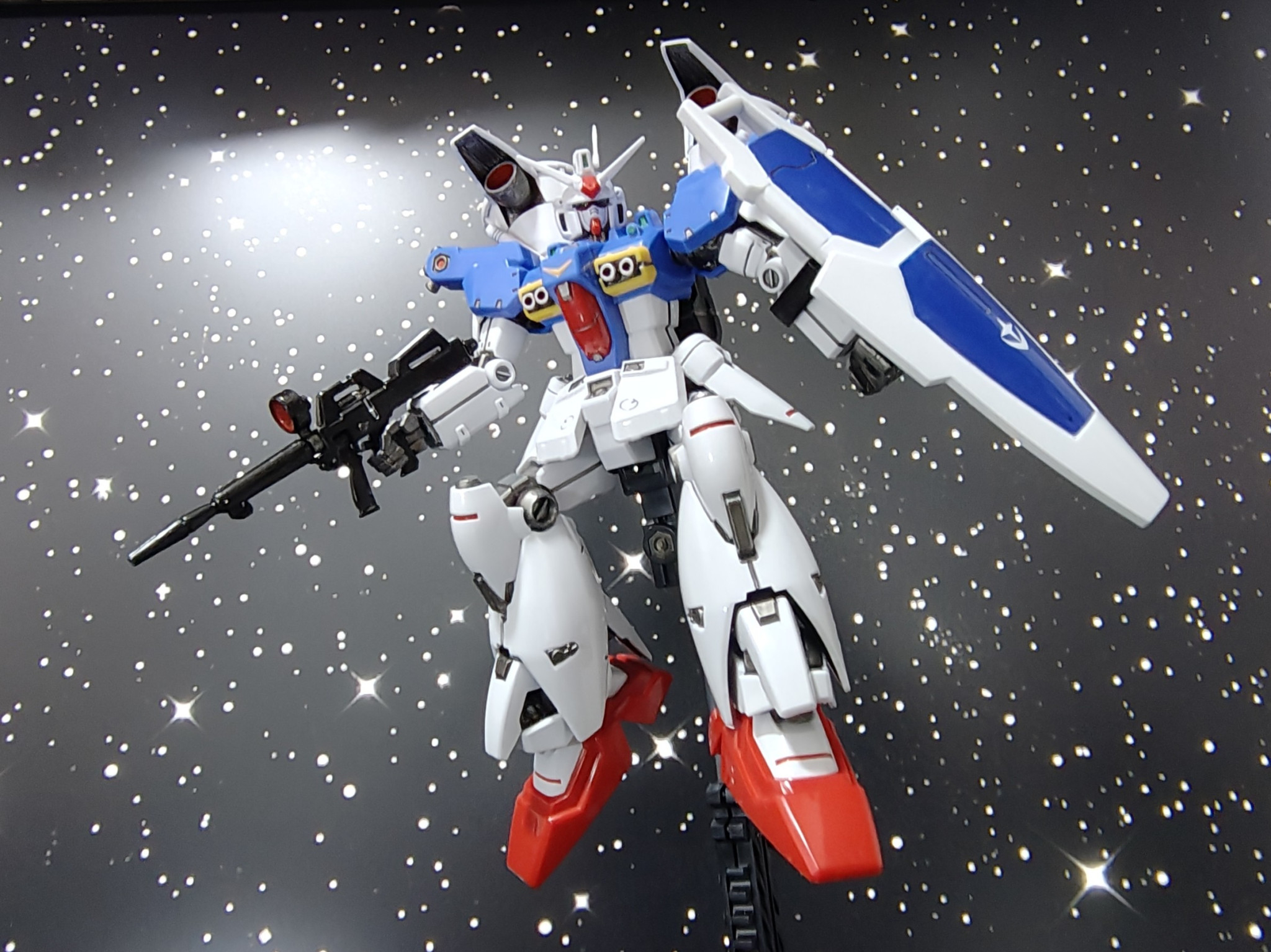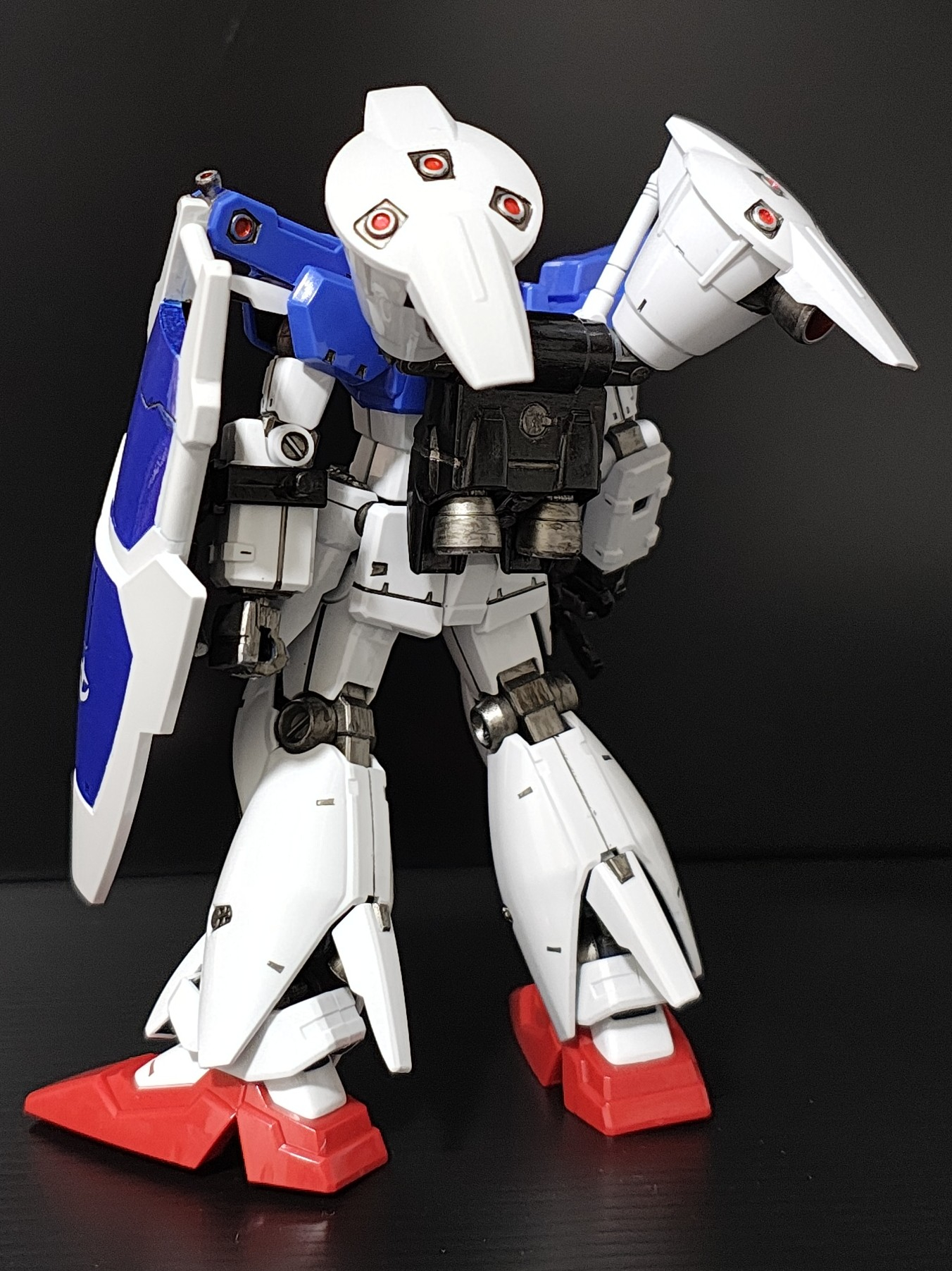 メインスラスターの可動部分は出来が良く、前向きのポージングもイケてます(gandam-hand1)