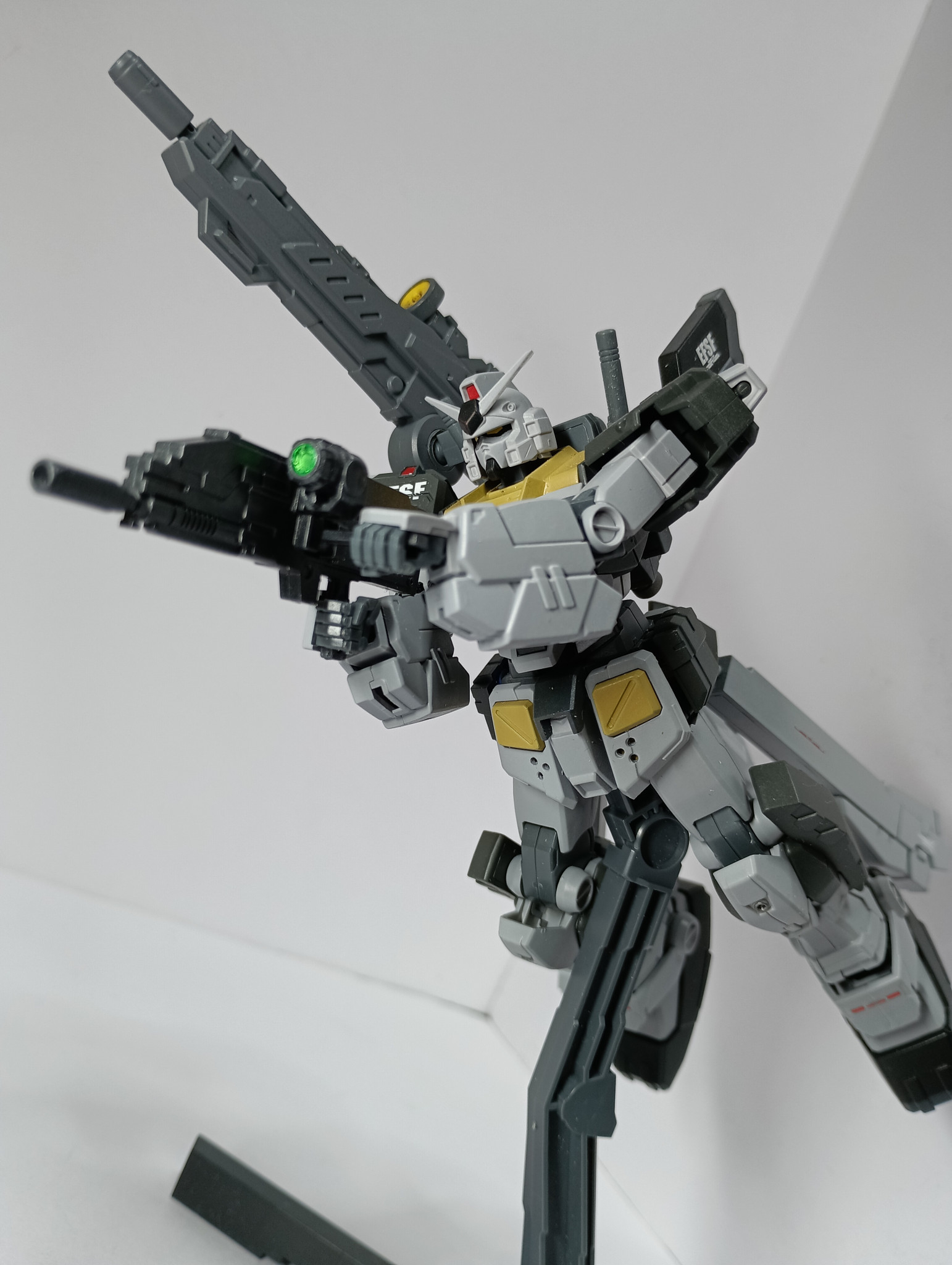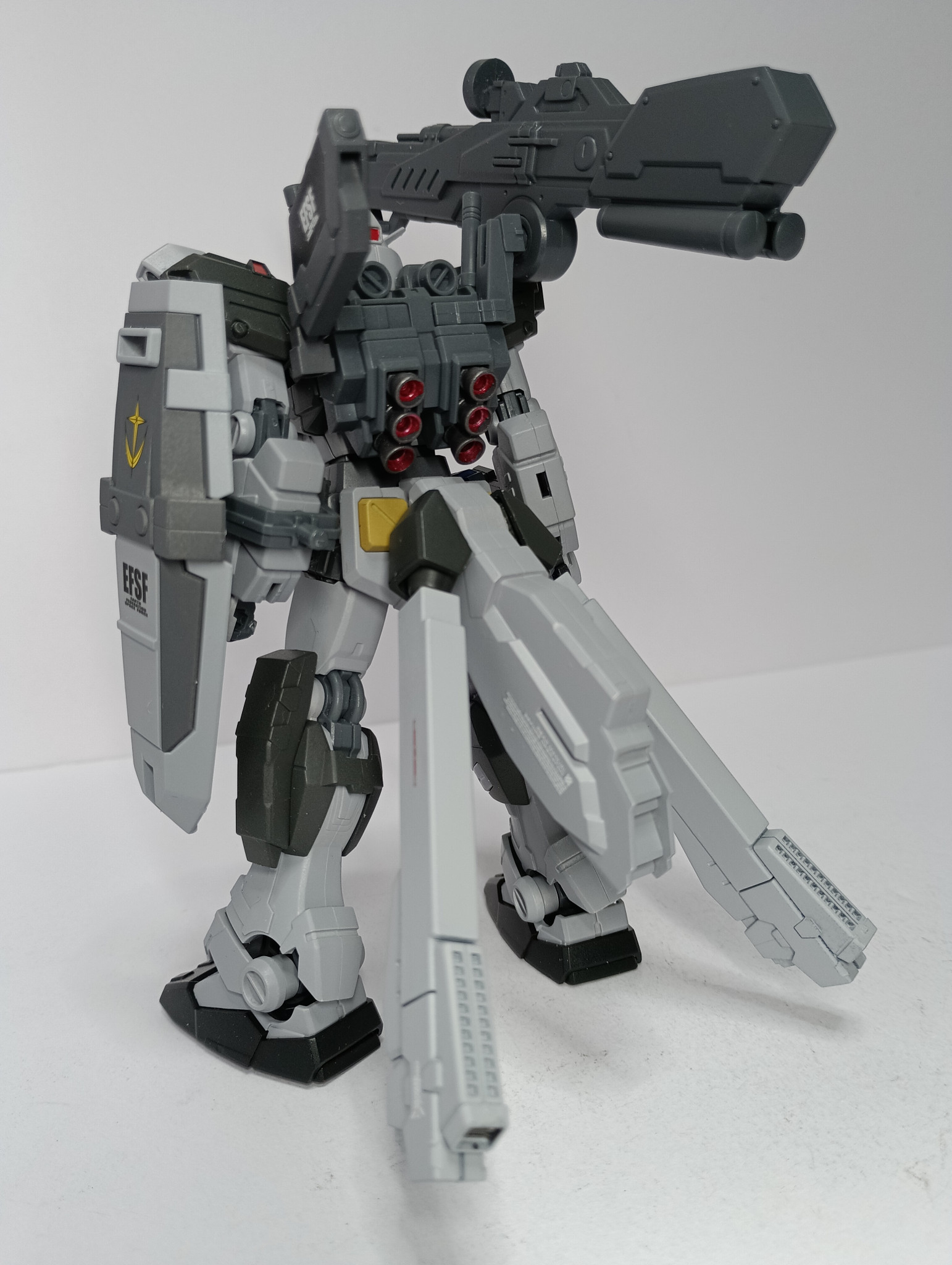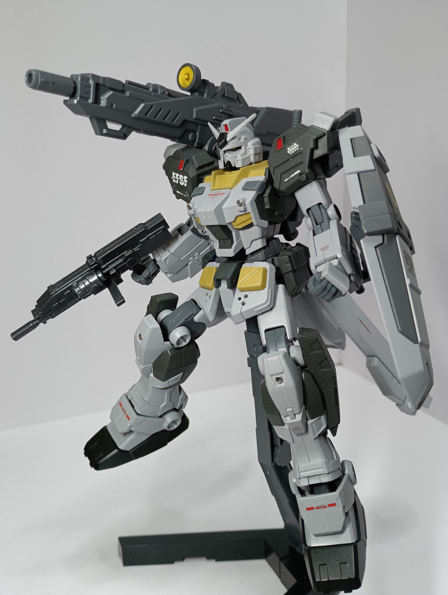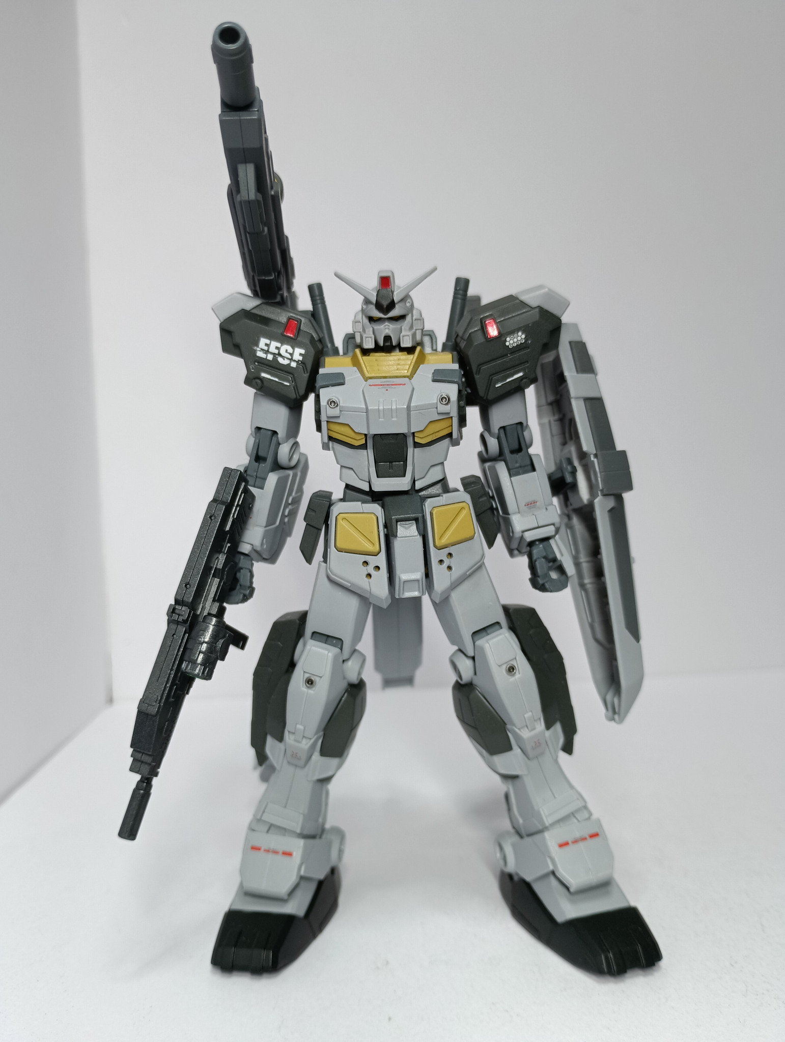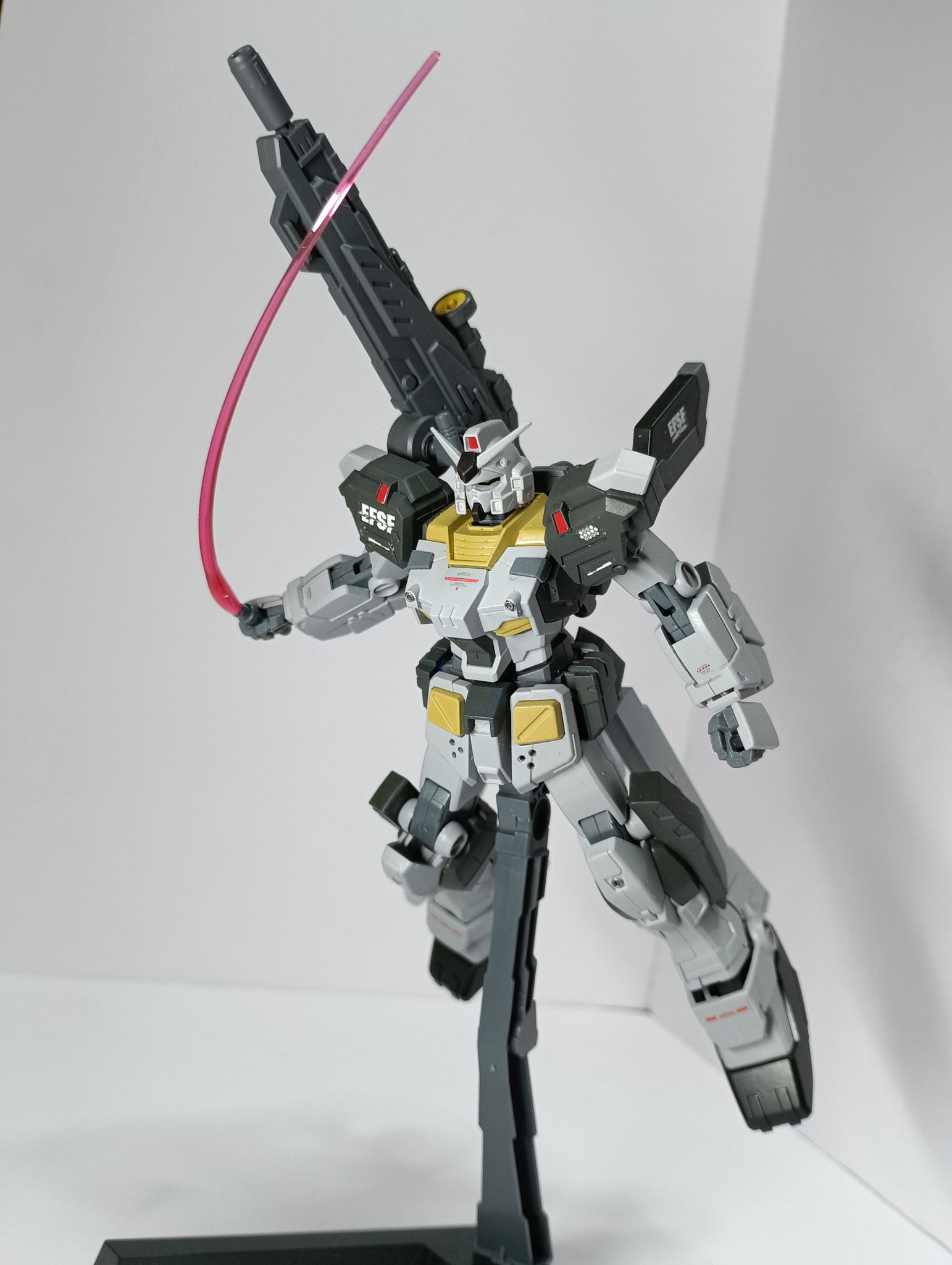 長距離ビームキャノン。背部に重量が行き過ぎたので、つま先に錘をいれたのですが、なおバランスが悪いので台座を使用…(zaku-kao4)