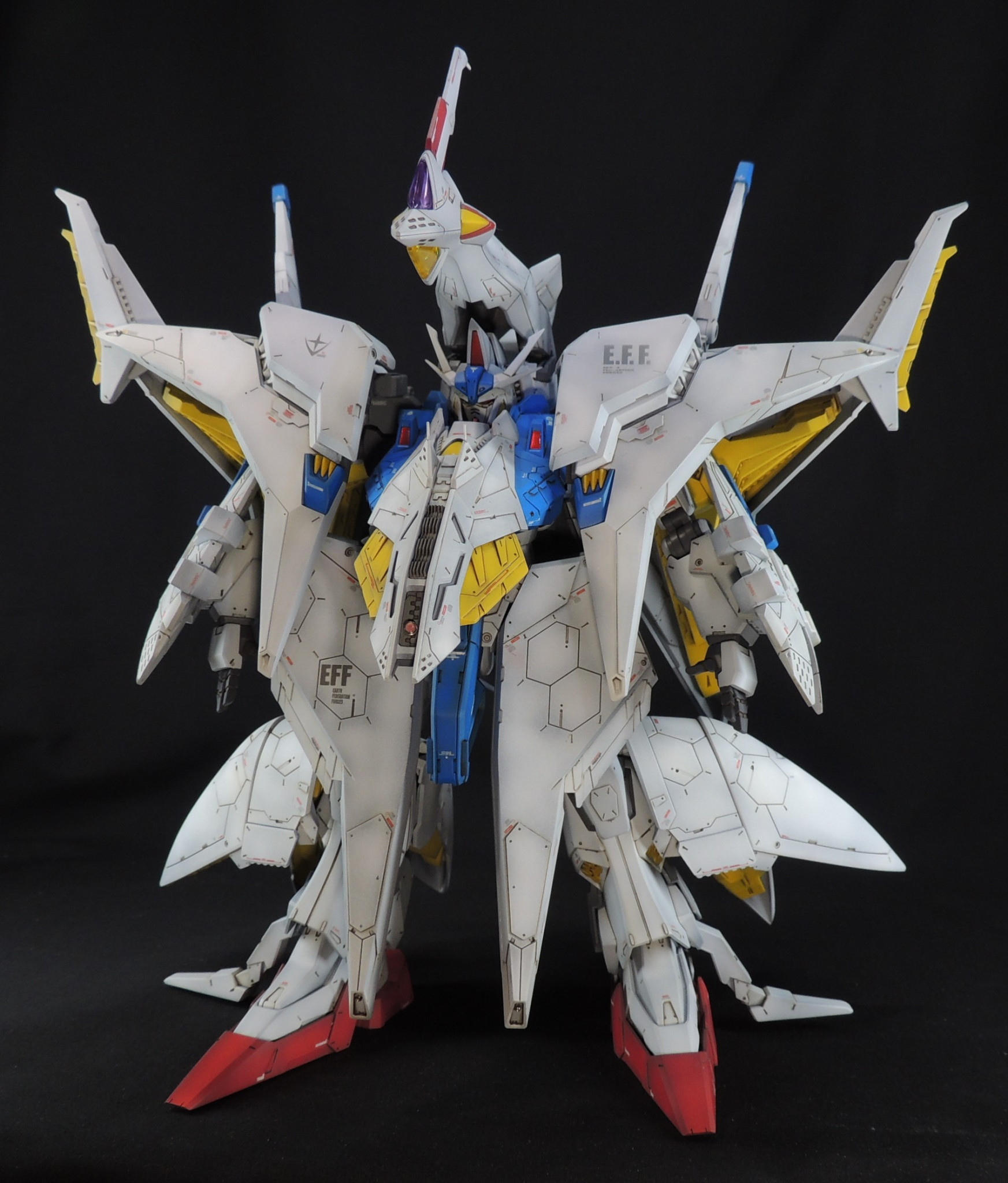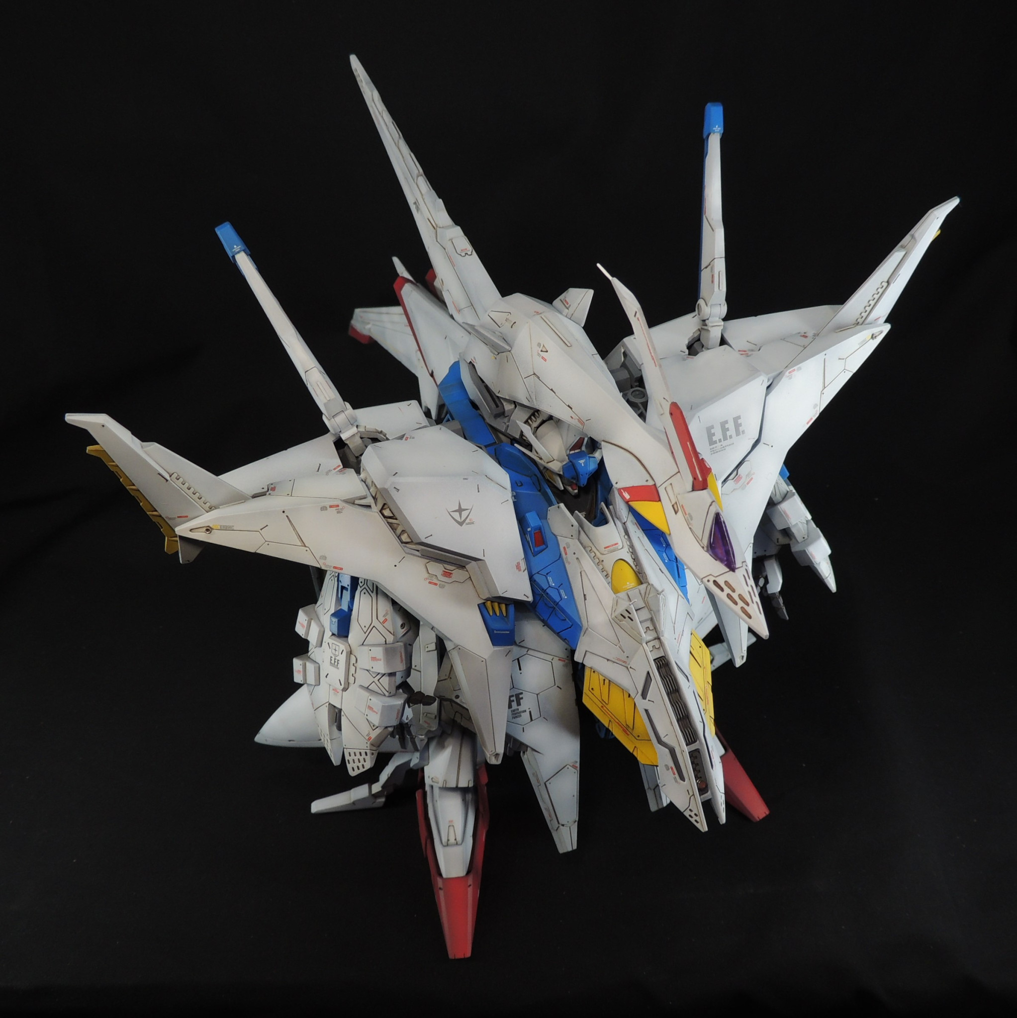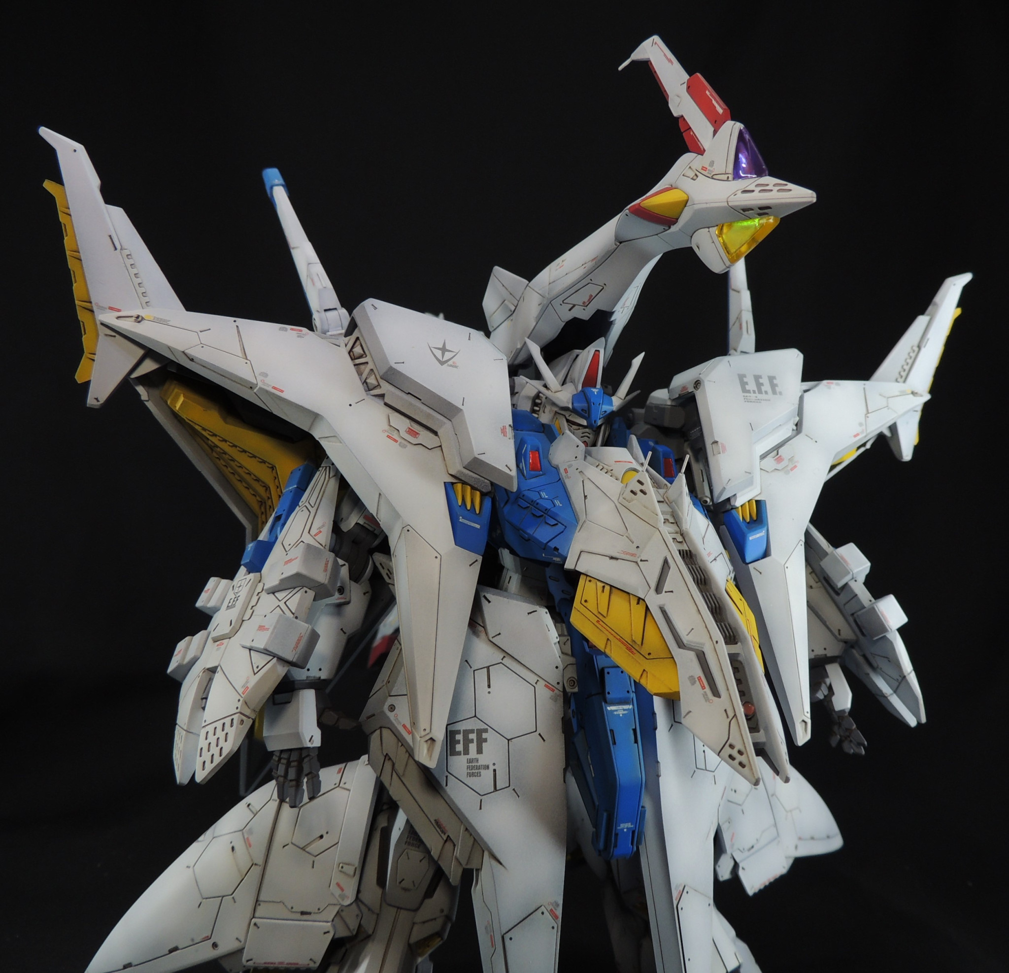 デカールは主にガンダムデカールを使用しています。「E.F.F」のロゴは模型雑誌ガンダムホビーライフの付録デカールも使用しました。