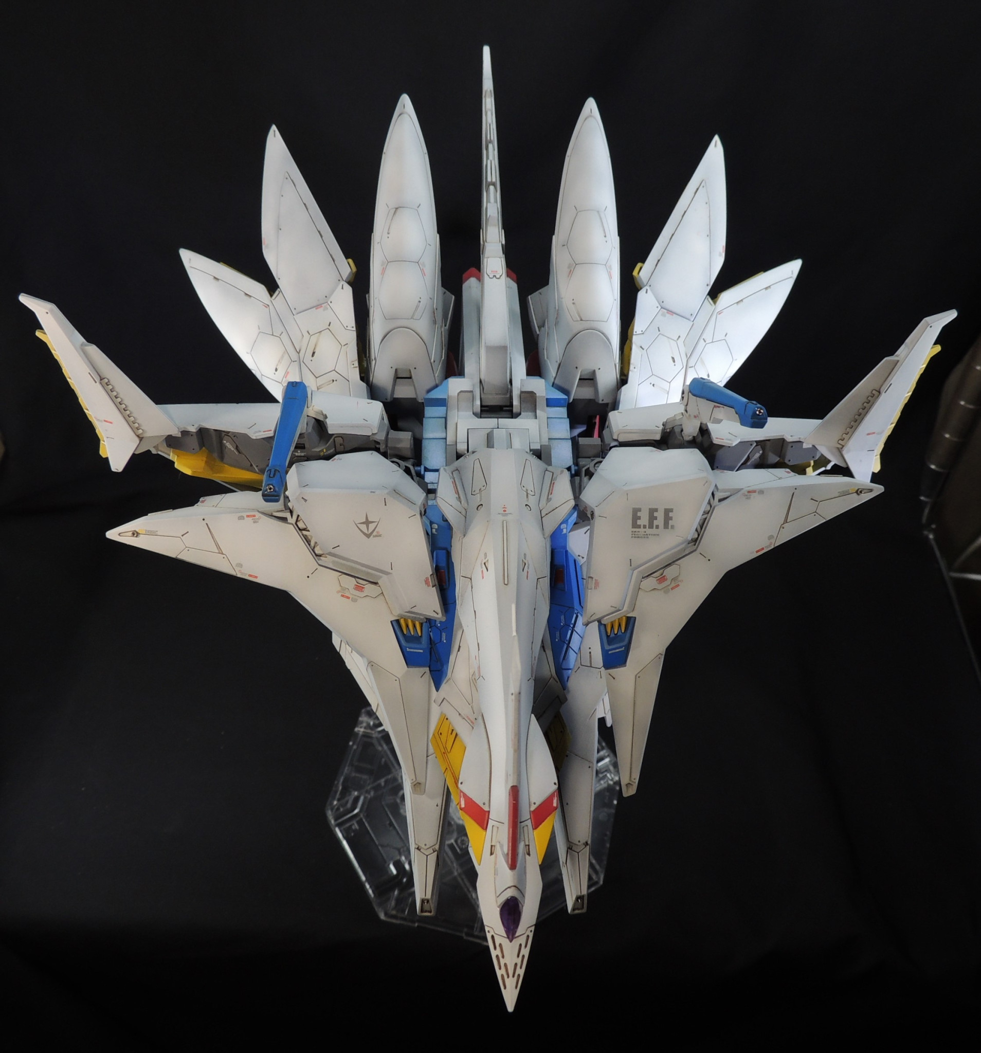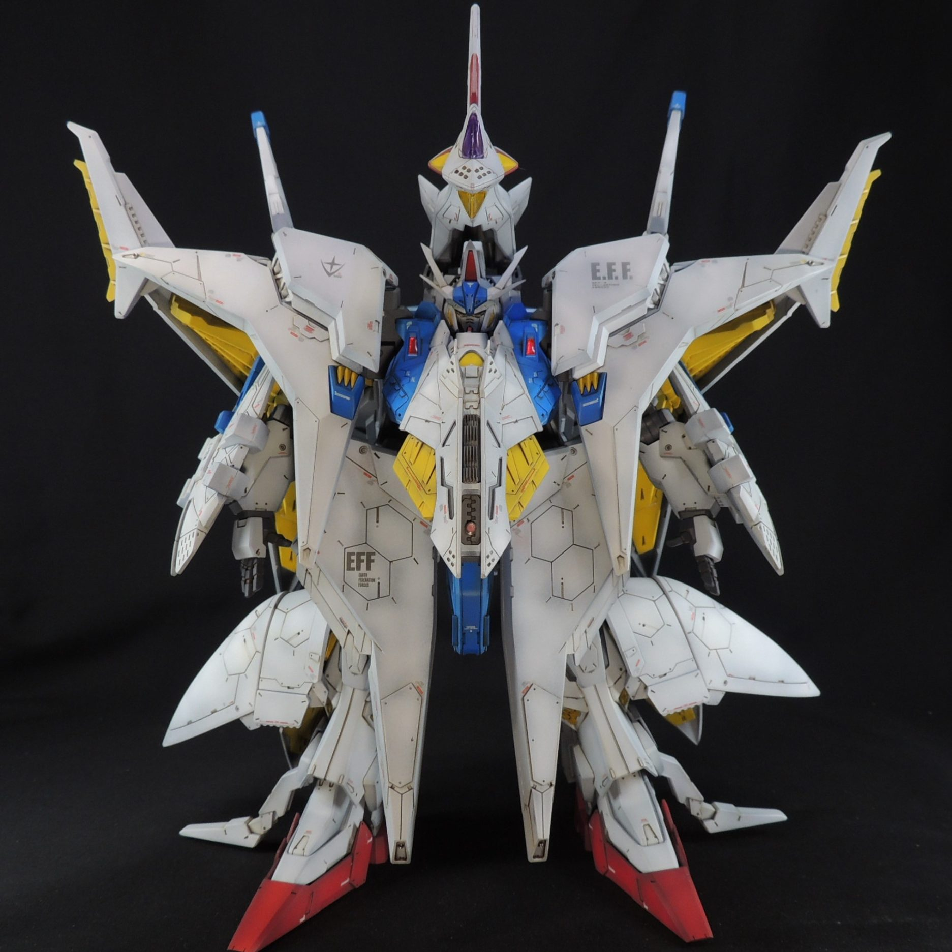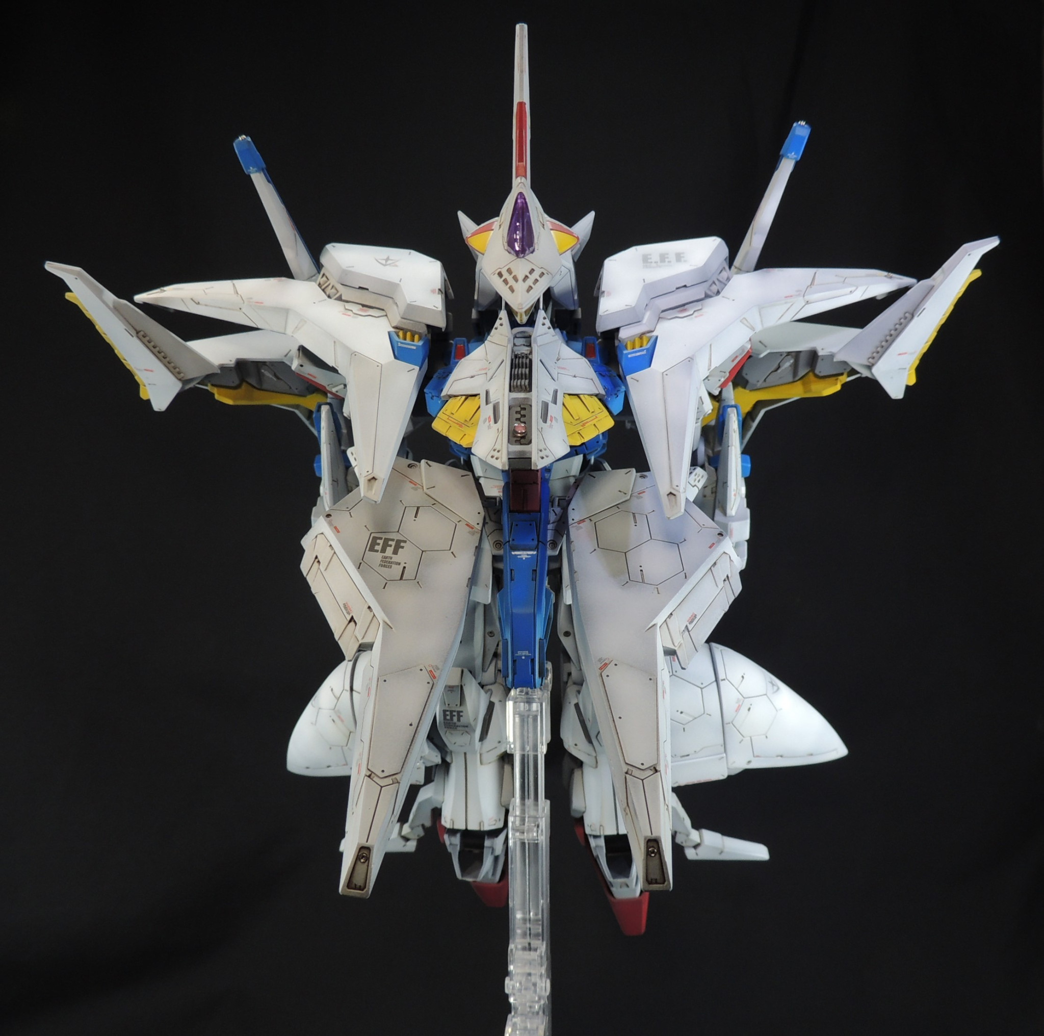 デカールは主にガンダムデカールを使用しています。「E.F.F」のロゴは模型雑誌ガンダムホビーライフの付録デカールも使用しました。