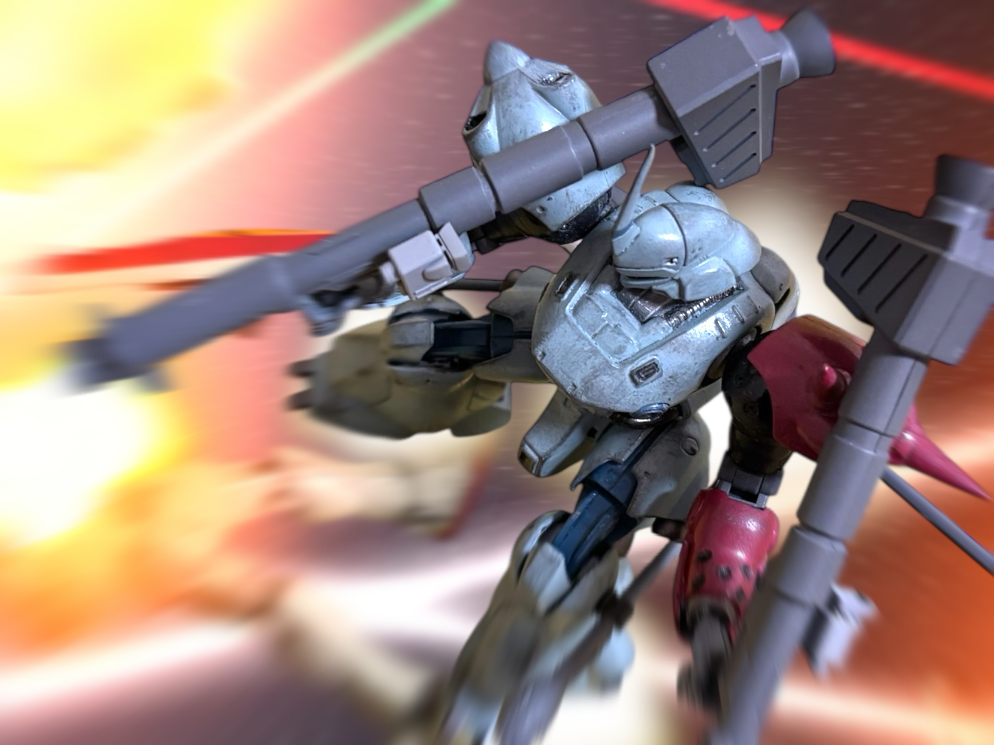 ジオンには、MSが携行できるビーム兵器はない。ジムのビームスプレーガンもビームサーベルも、敵にとって十分脅威的な、必殺の火力だが、どちらも射程が短い。ならばーー