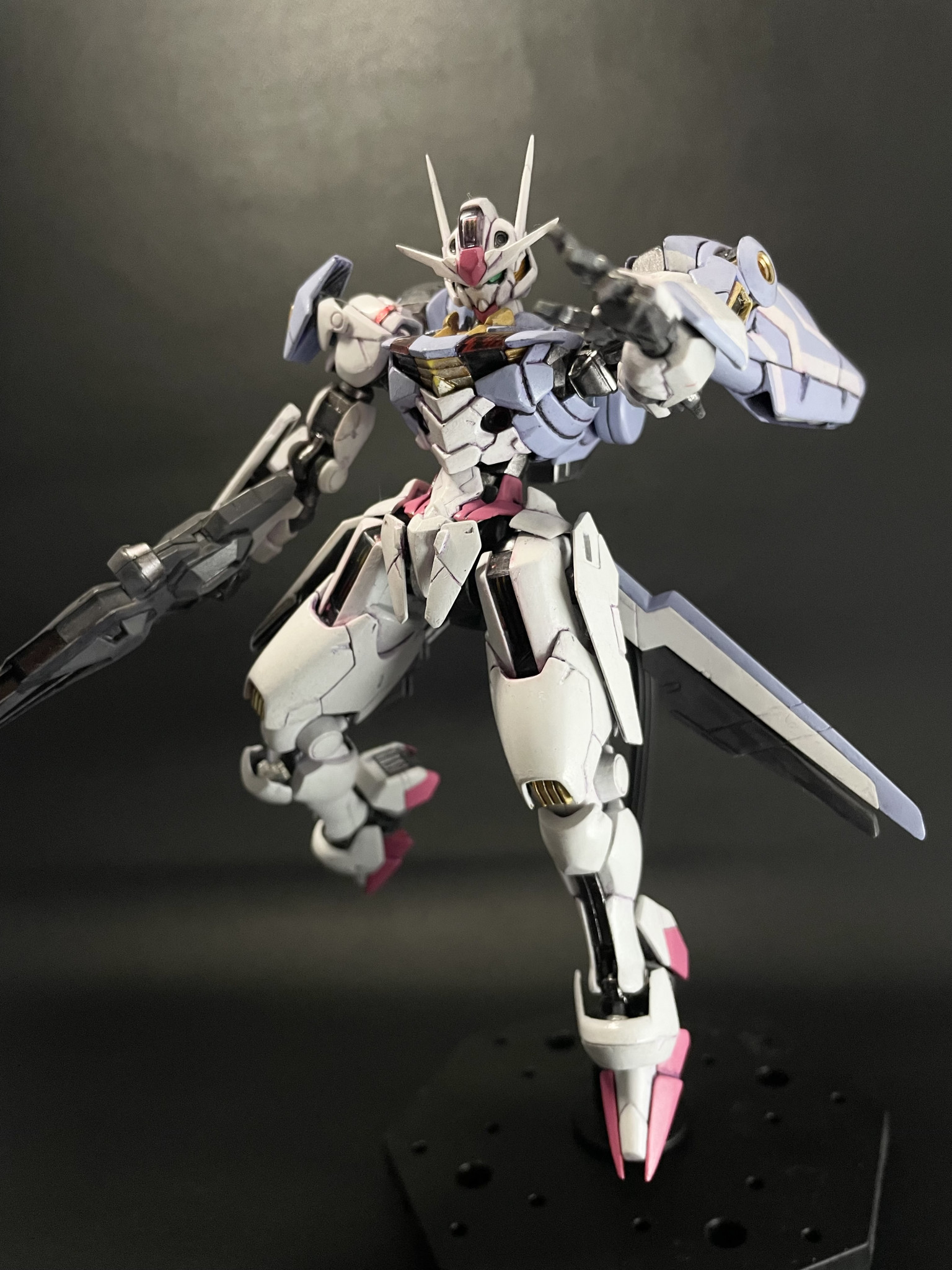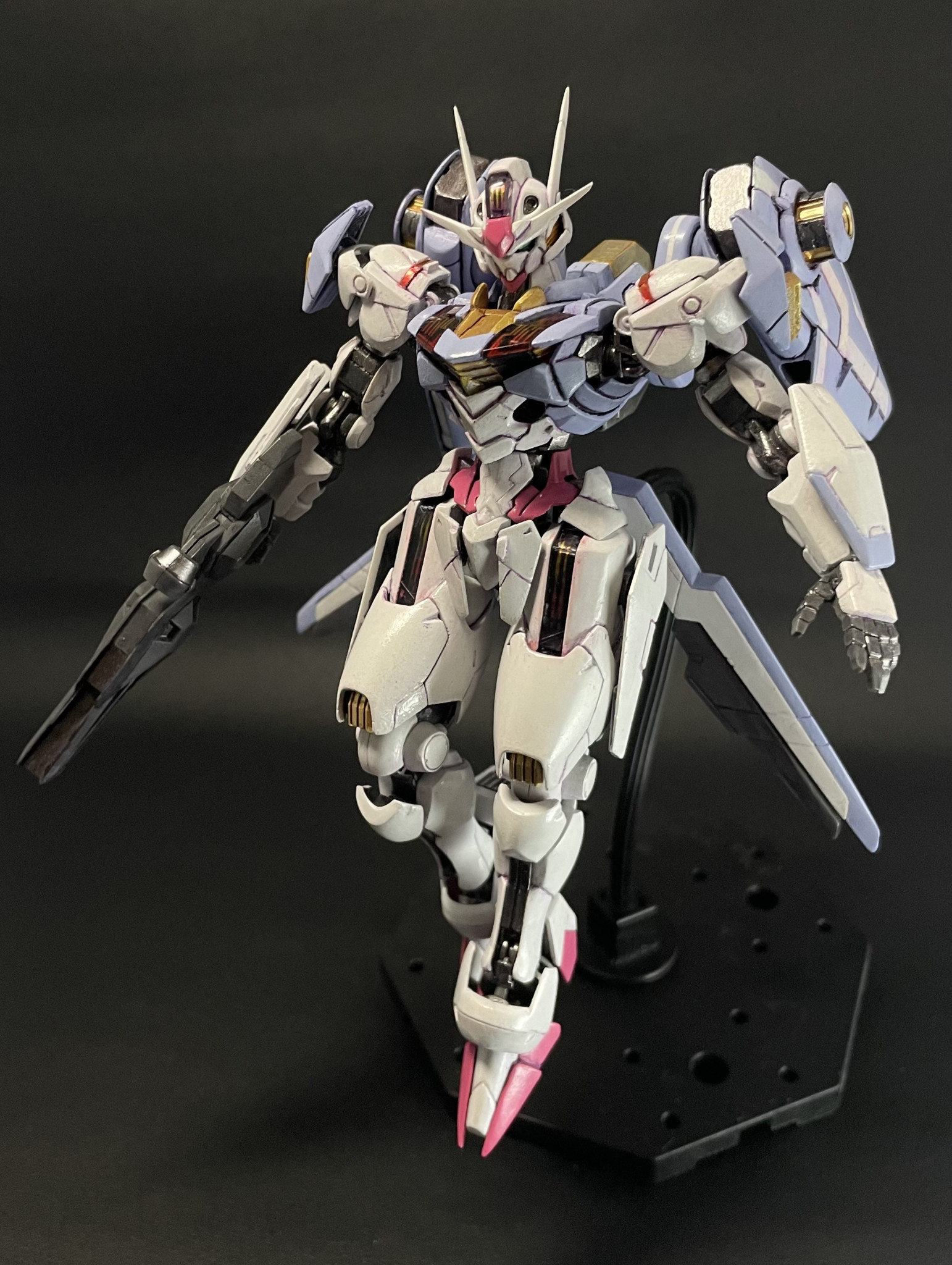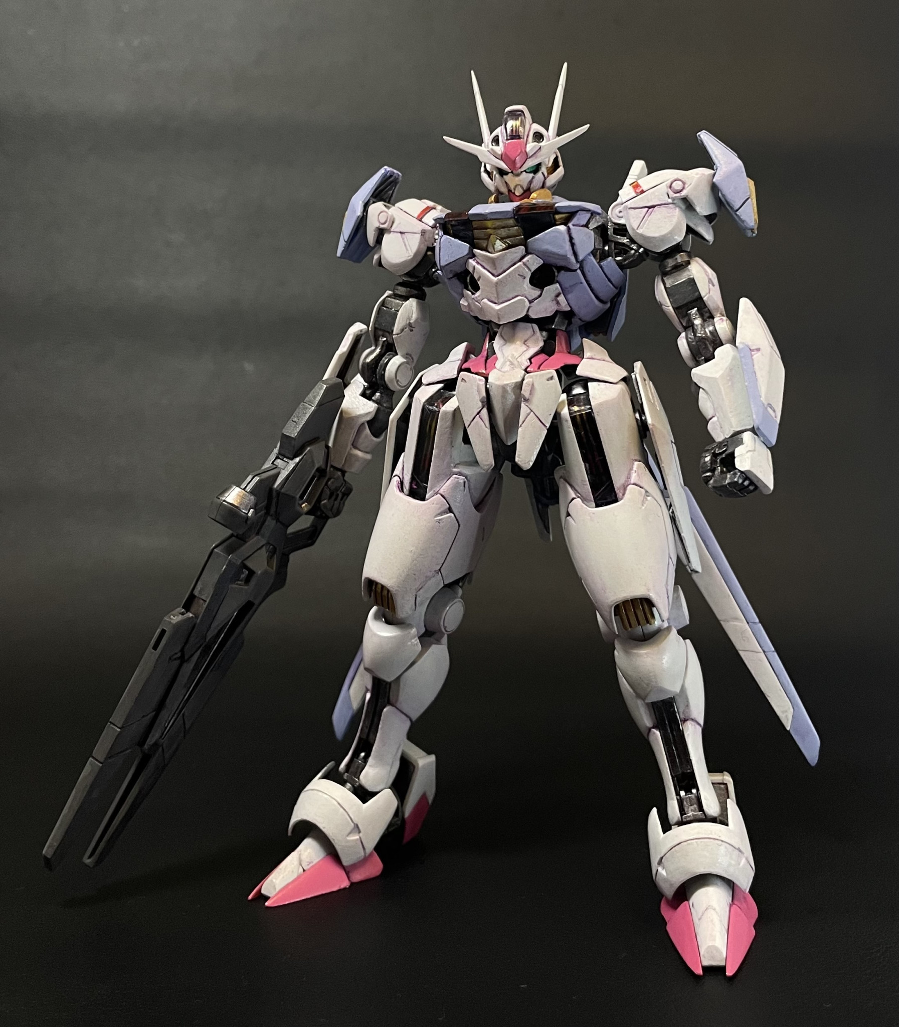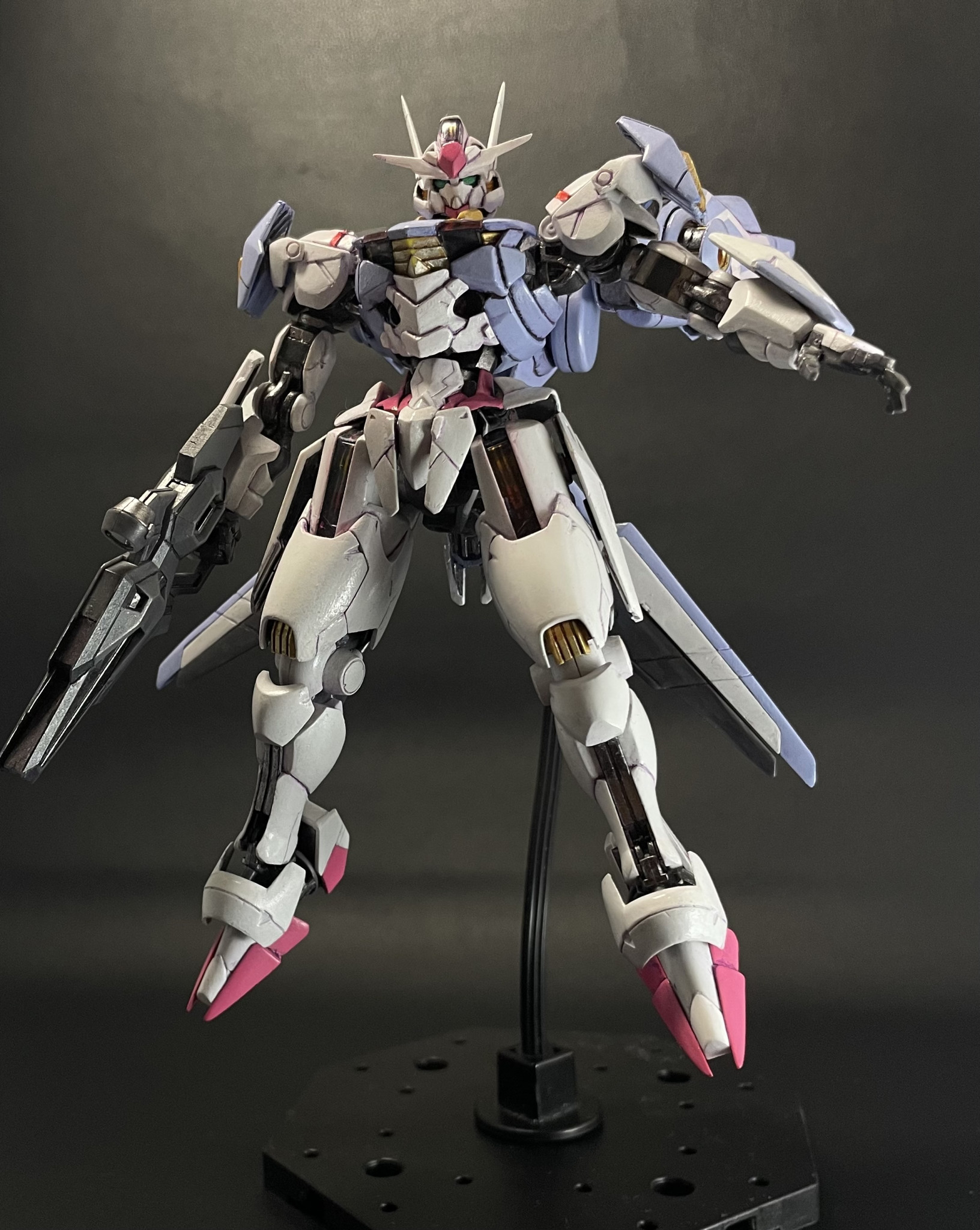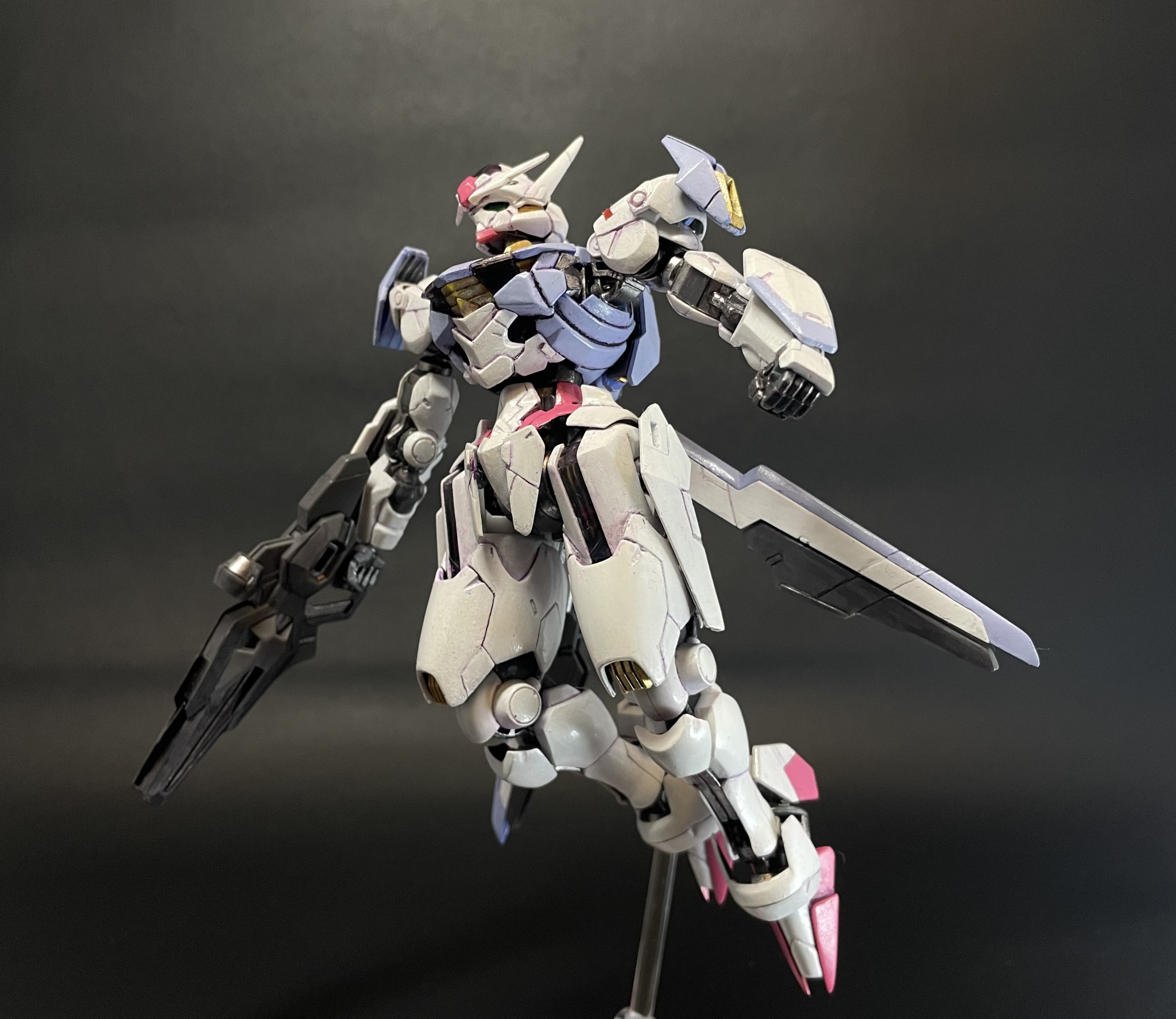 過去作ですが、HGエアリアルです。2023年に13年ぶりの全塗装復帰作で非常に思い入れがあります。あまりにも久しぶりに塗装したので、ノウハウを完全に忘れてて、下地やサフを塗装せずに、そのままベタ塗りです。