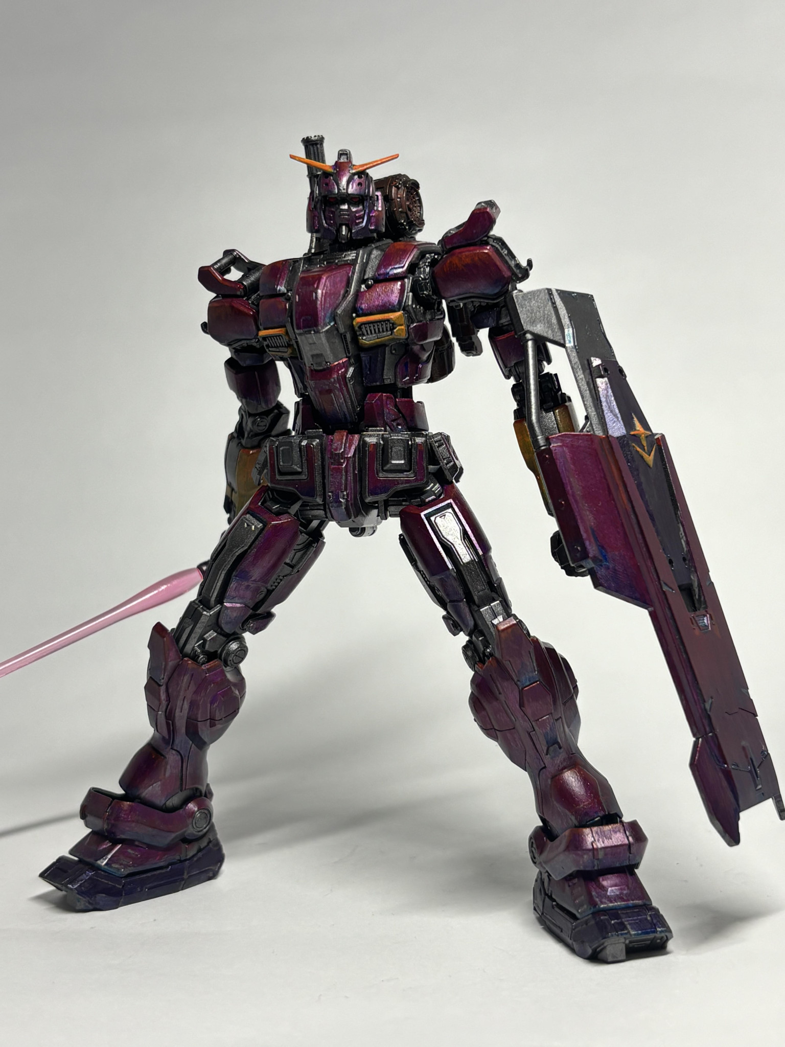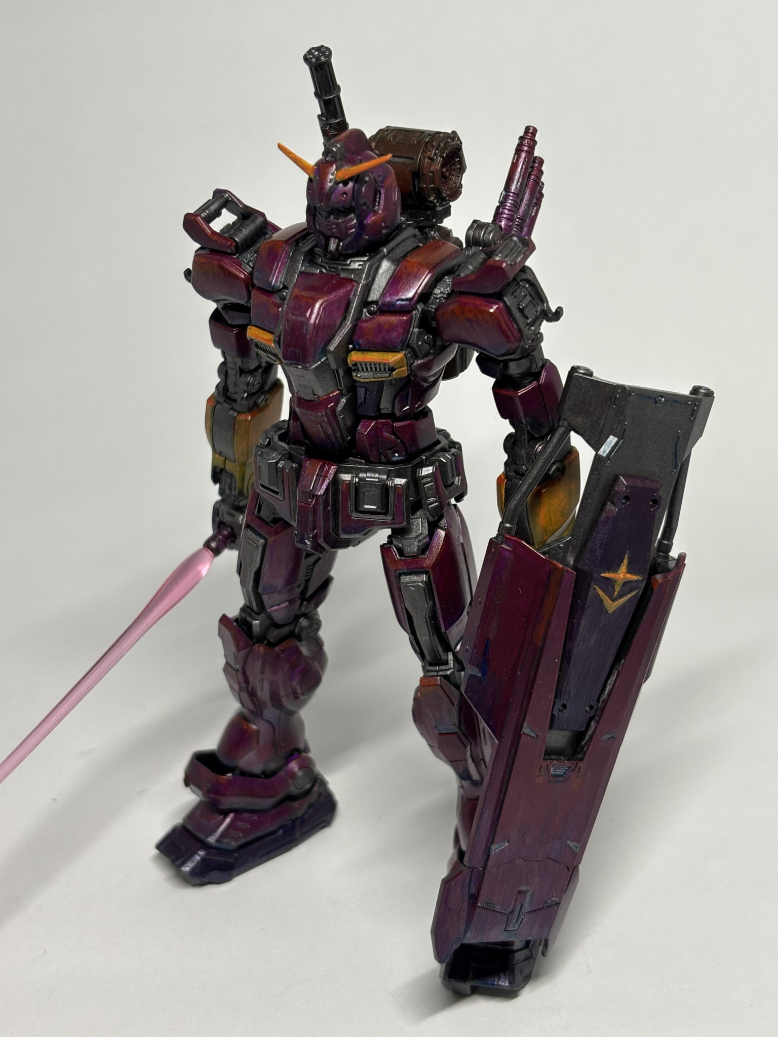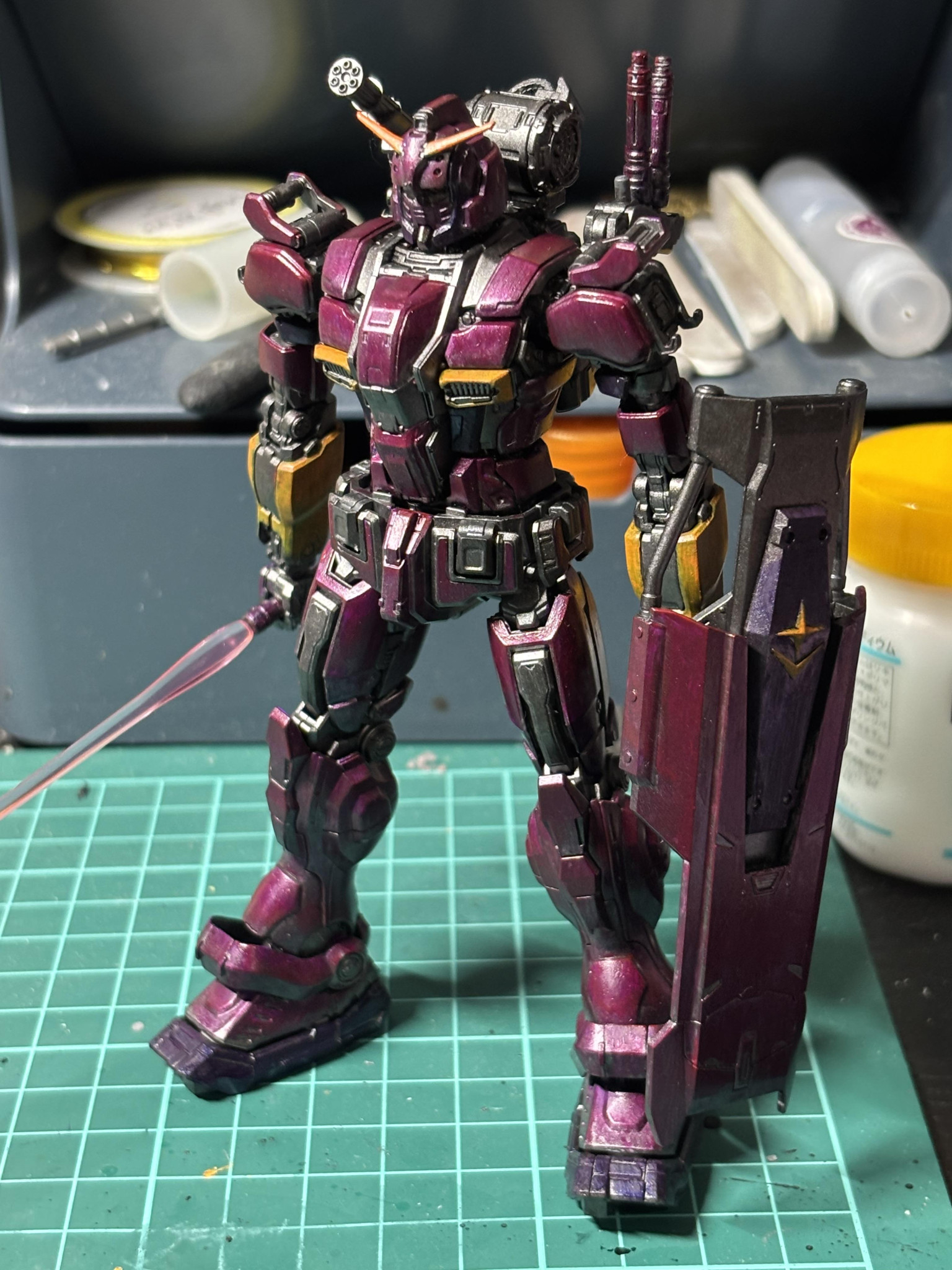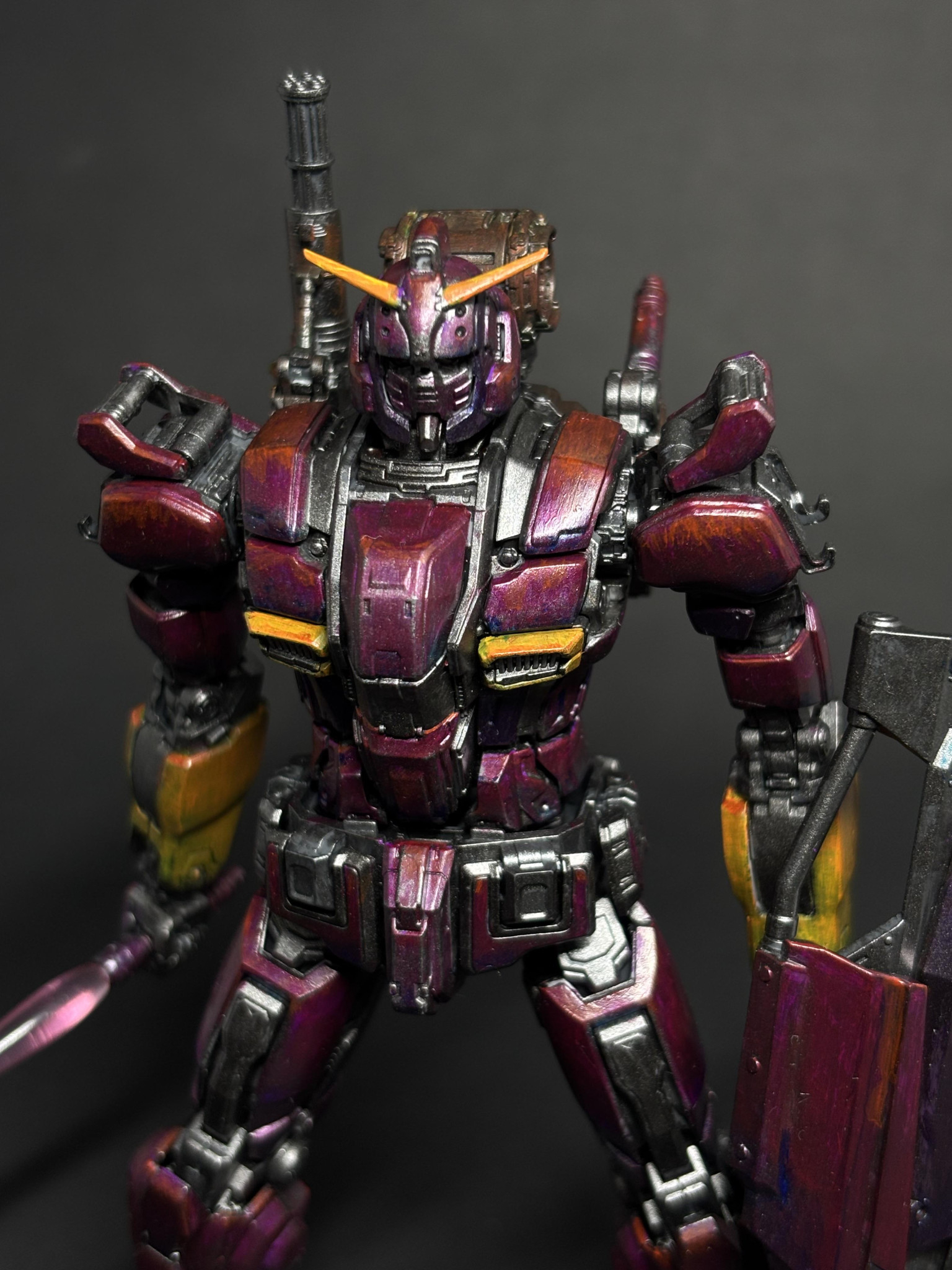 色塗りはメカサフのガンメタ塗ってからアクリルガッシュとu35で仕上げていて、u35が透ける系なので色の重ね方としてはキャンディ塗装的な感じにもなってるかなと