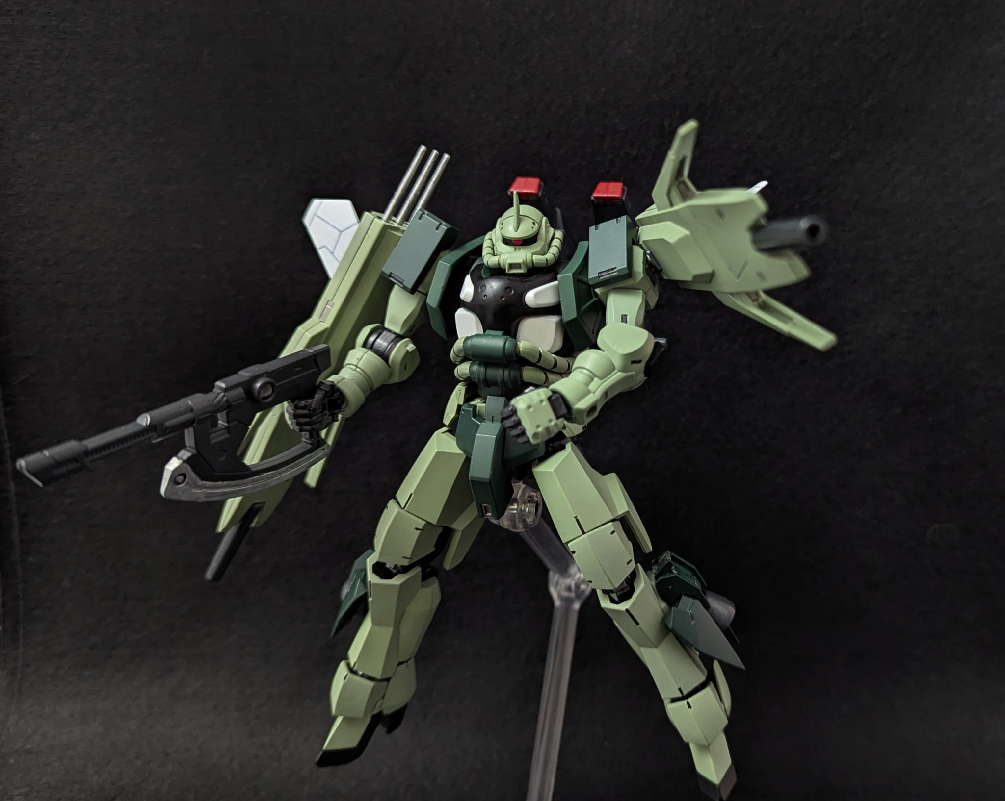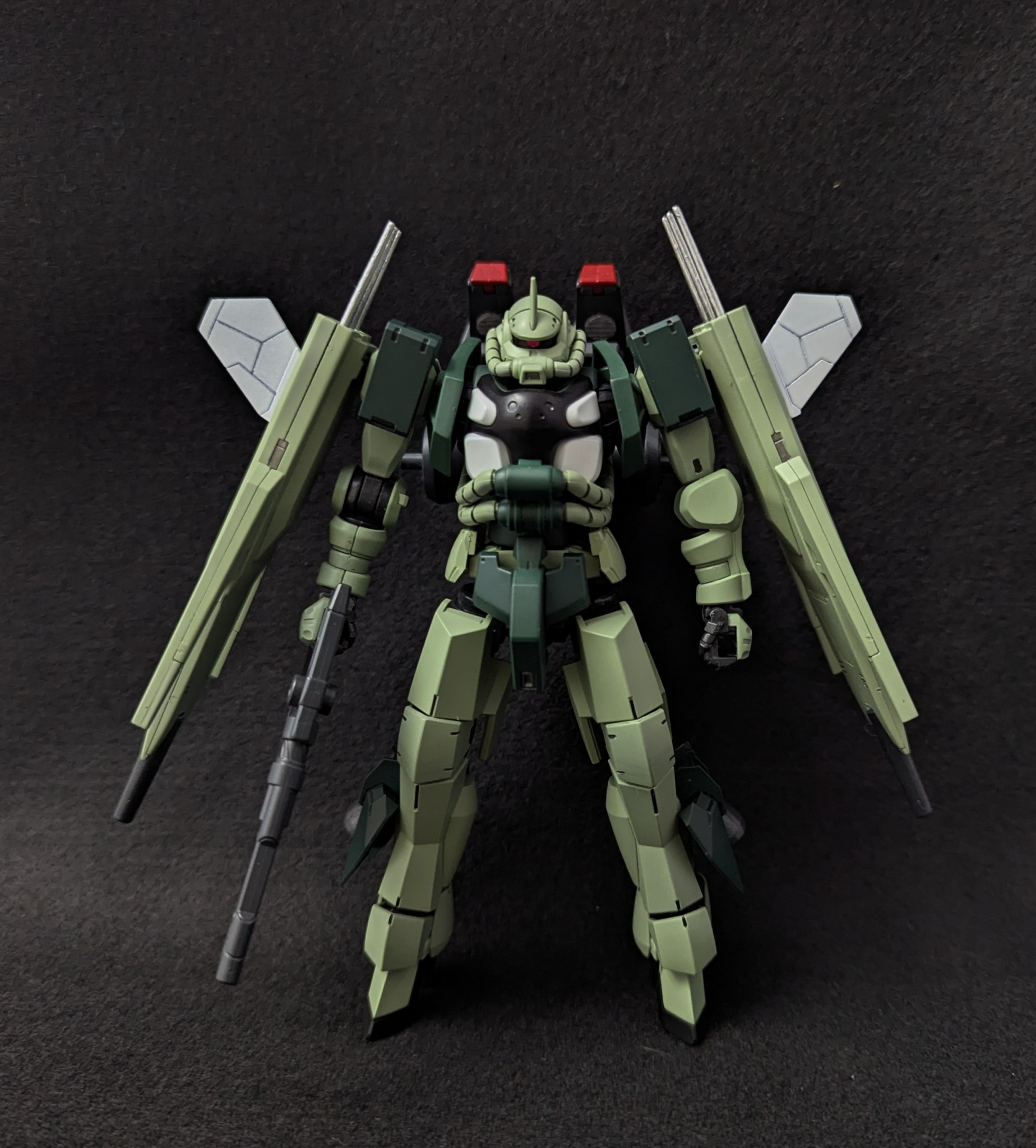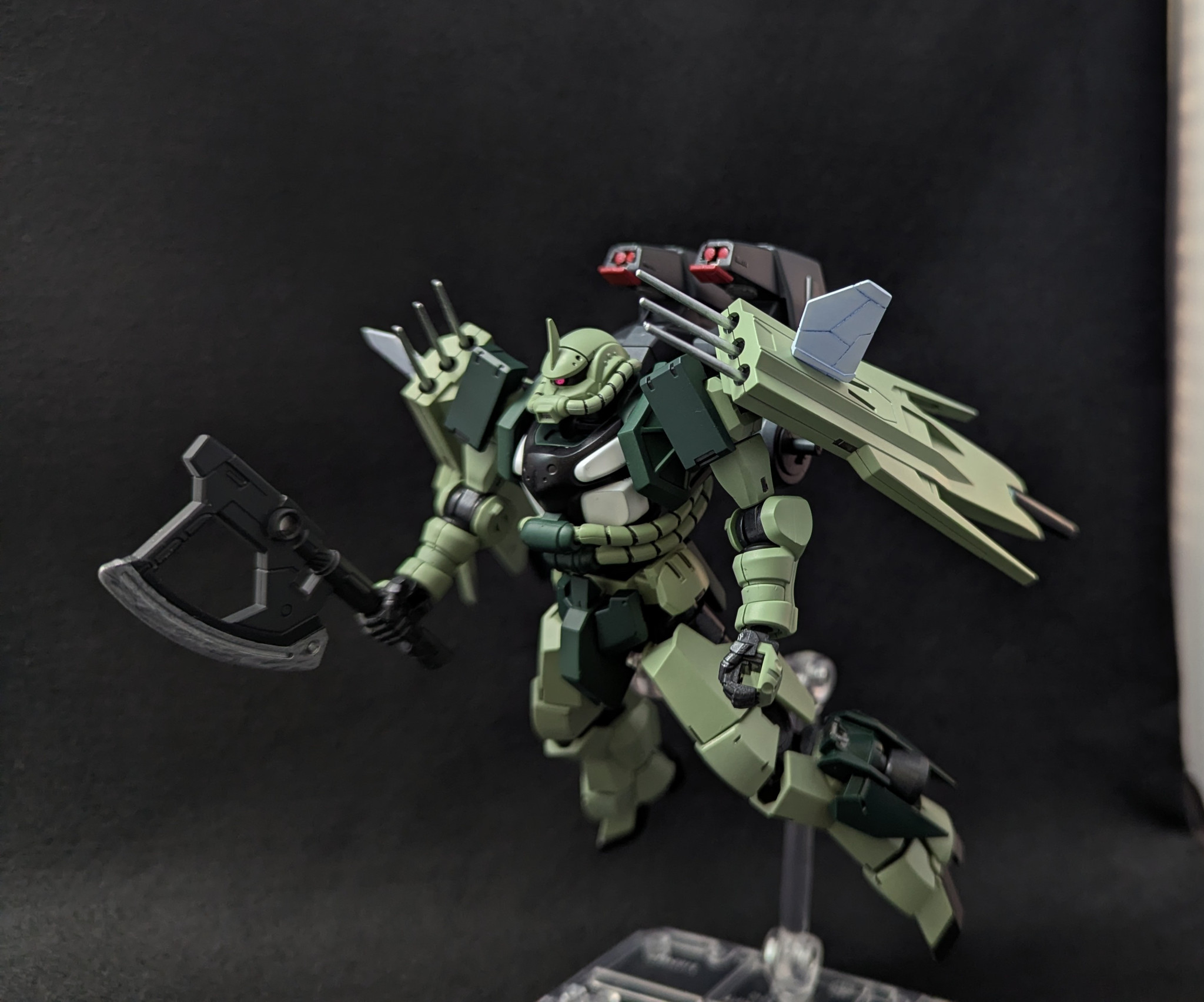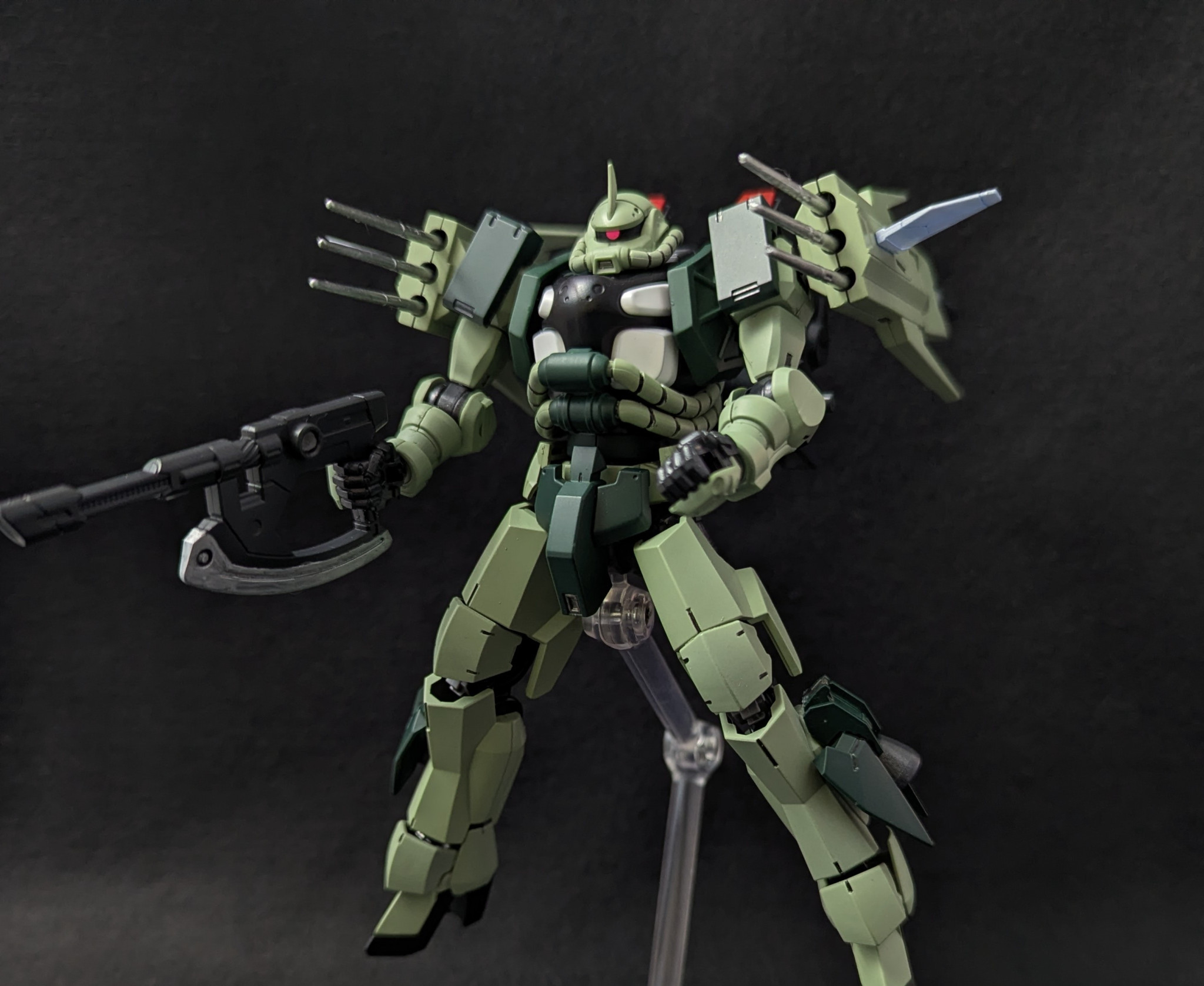 GQザク上半身+グレイズ下半身にあとはオマージュ元のブレイズザクファントムに近い装備構成という感じでセットアップ(細かいとこは前回の製作記録をどうぞ)しました