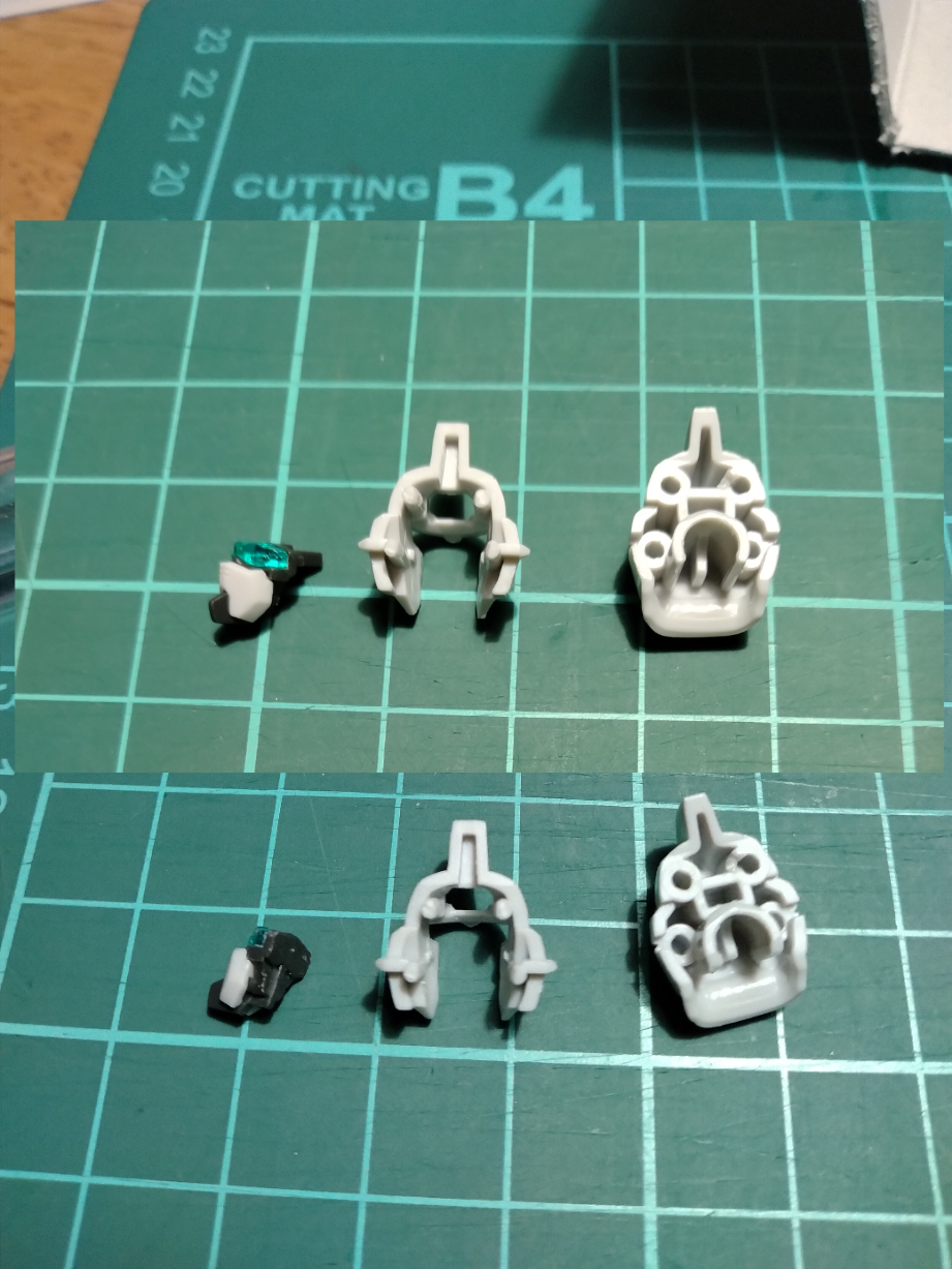 側面にある排気口のパーツに沿って分割されてはいるんですがそれでも気になるところがあったのでサブカメラ周辺の合わせ目消し、ツインアイの部分を後ハメできるようにパーツを削ってます。塗装の際にパーツが分かれていることで色ムラを減らすためです。作成動画を見てとても参考になりました。ありがとうございます。