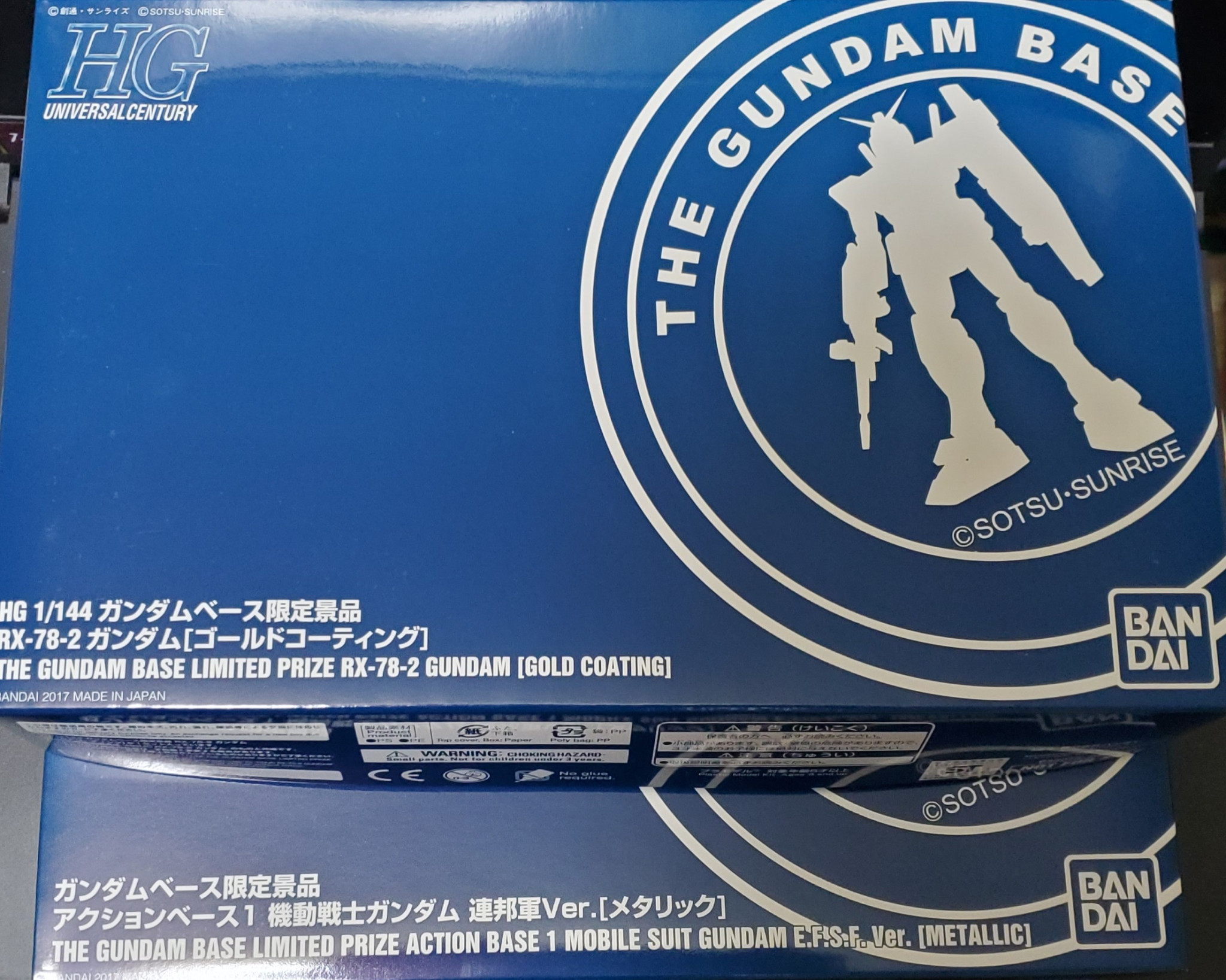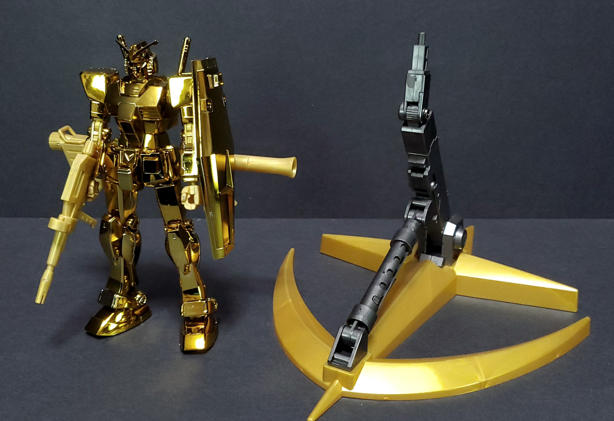 ガンダムベースのポイント交換景品であるゴールドメッキのRX-78-2とアクションベース1 連邦軍ver.【メタリック】です。