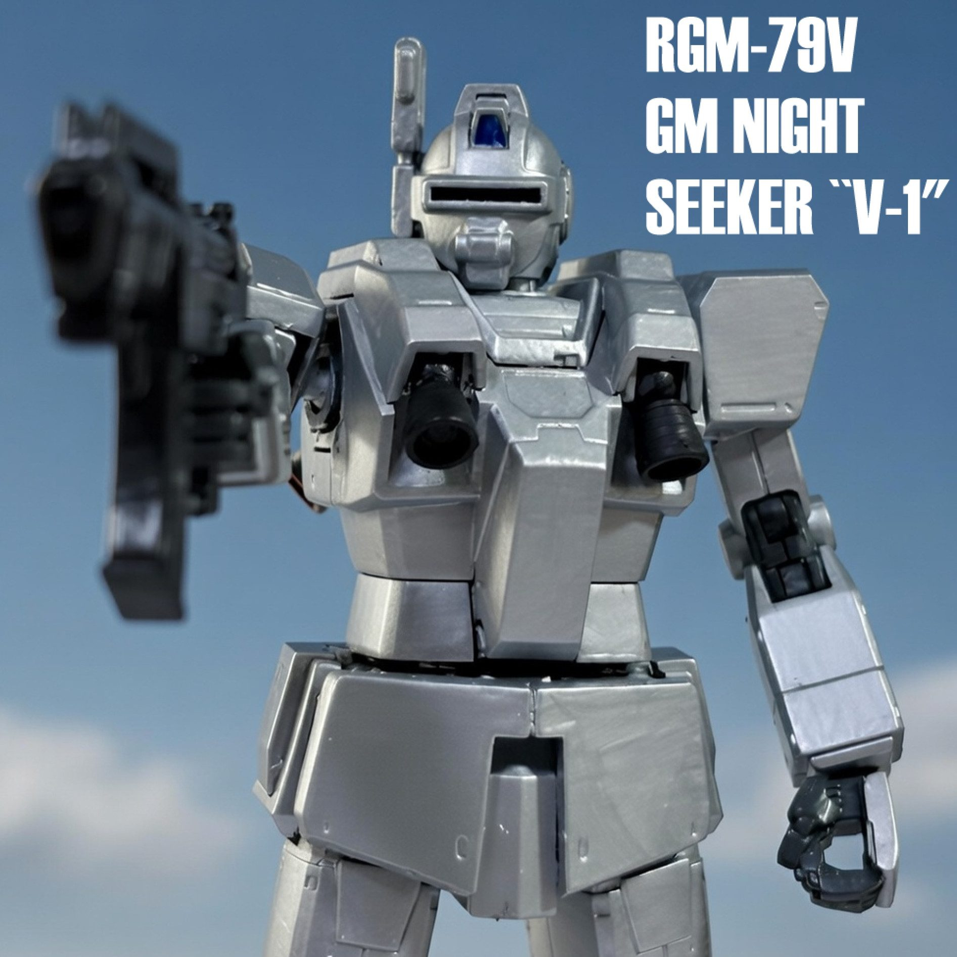 今日2月6日は「GMの日」らしいので、ジムナイトシーカーを全身銀色にリペイントした「V-1」を紹介。かなりマニアックだが、元ネタは仮面ライダーアギトに登場した「V-1システム」でたまたまナイトシーカーの型式番号がRGM-79Vと同じだったので、勢いでV-1にしてみた。