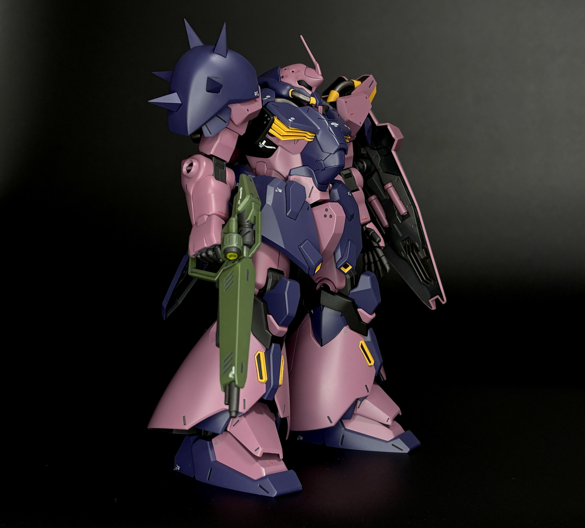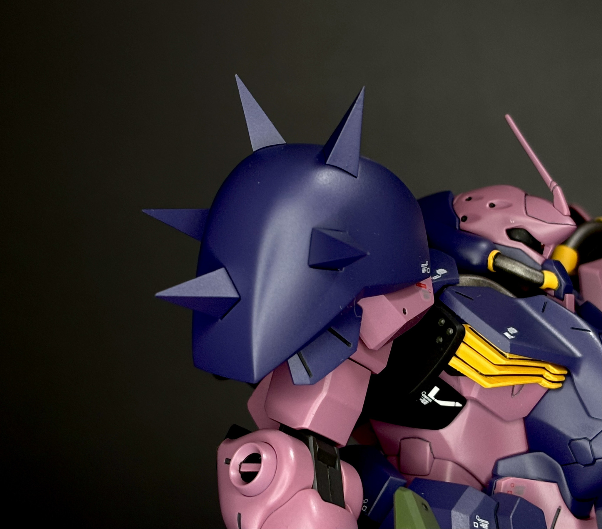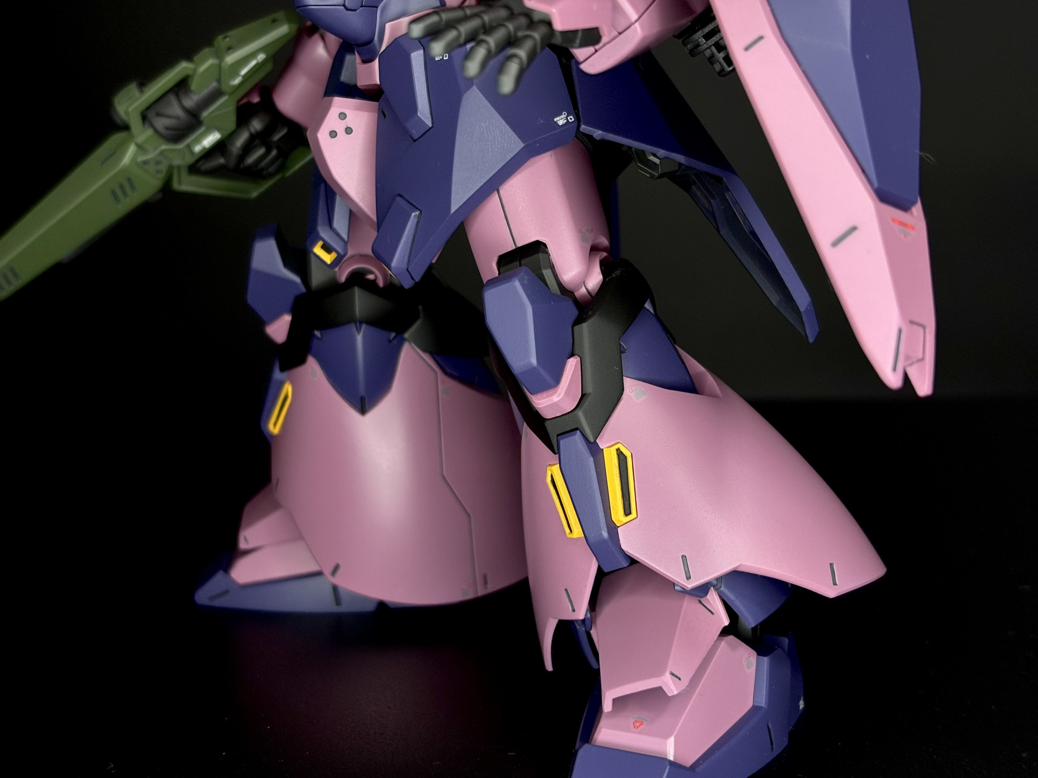 メインのピンクと紫部分は水性アクリル、関節等のグレー、黒部分はラッカー塗料でそれぞれエアブラシで塗装してます。