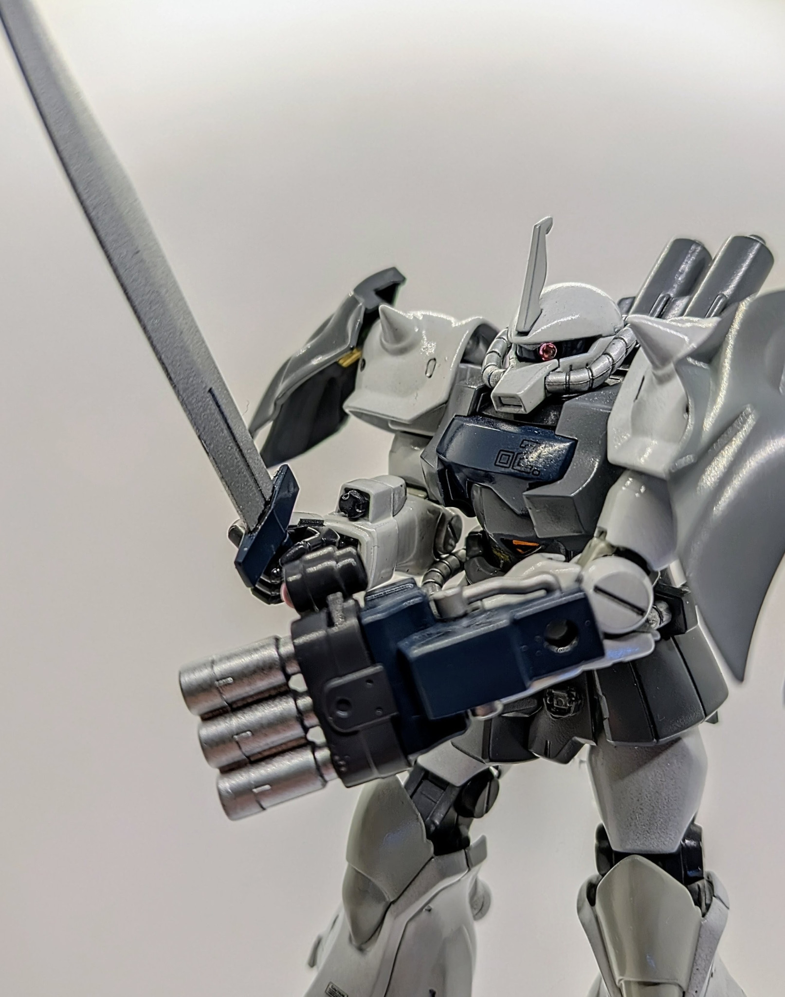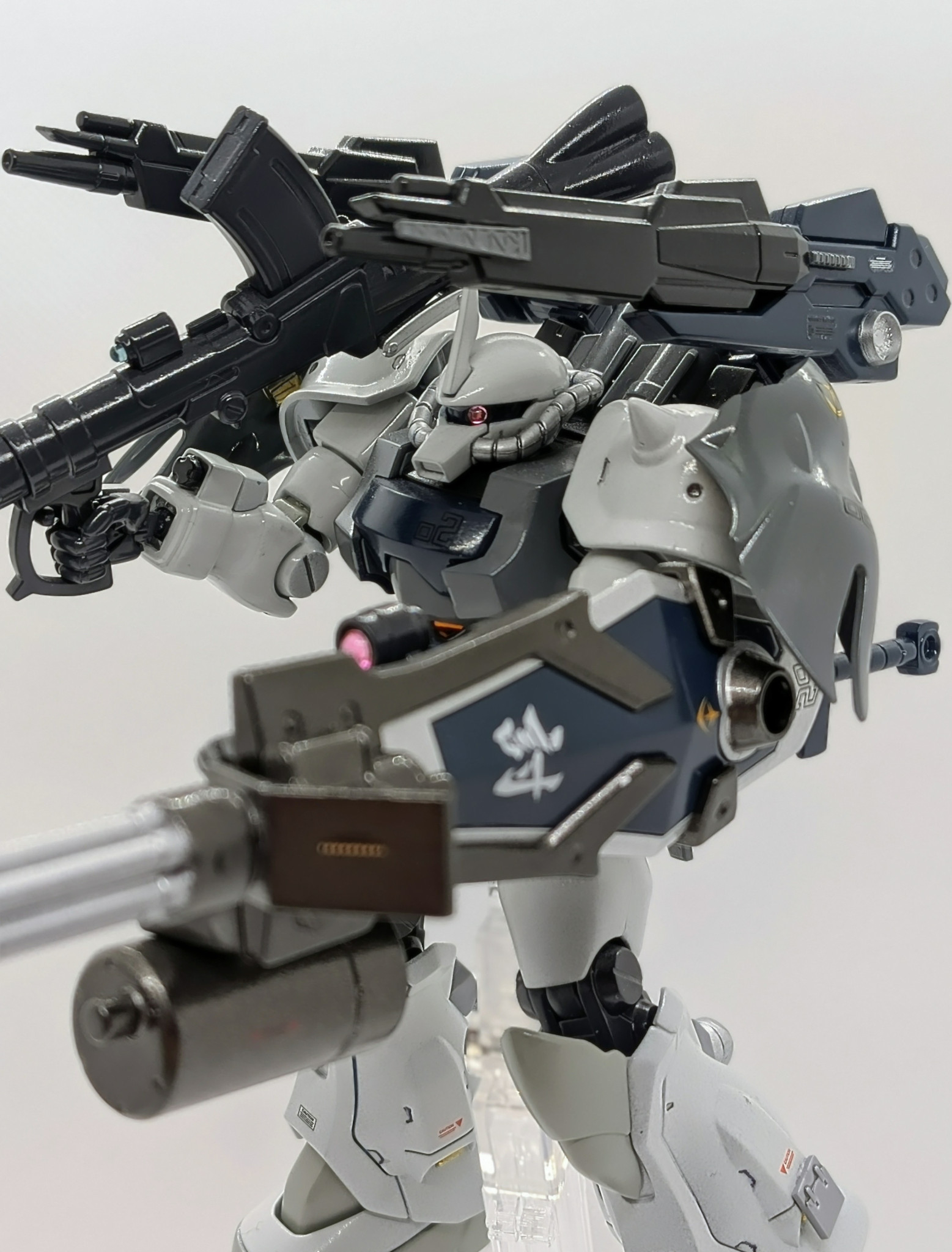 グフにキャノンタイプがないことが昔から気になっていたので、作成しました。グフカスタムははじめて作製しましたが、良いキットですね~。ホワイトの塗装に四苦八苦した作品です、閲覧有難う御座いました。