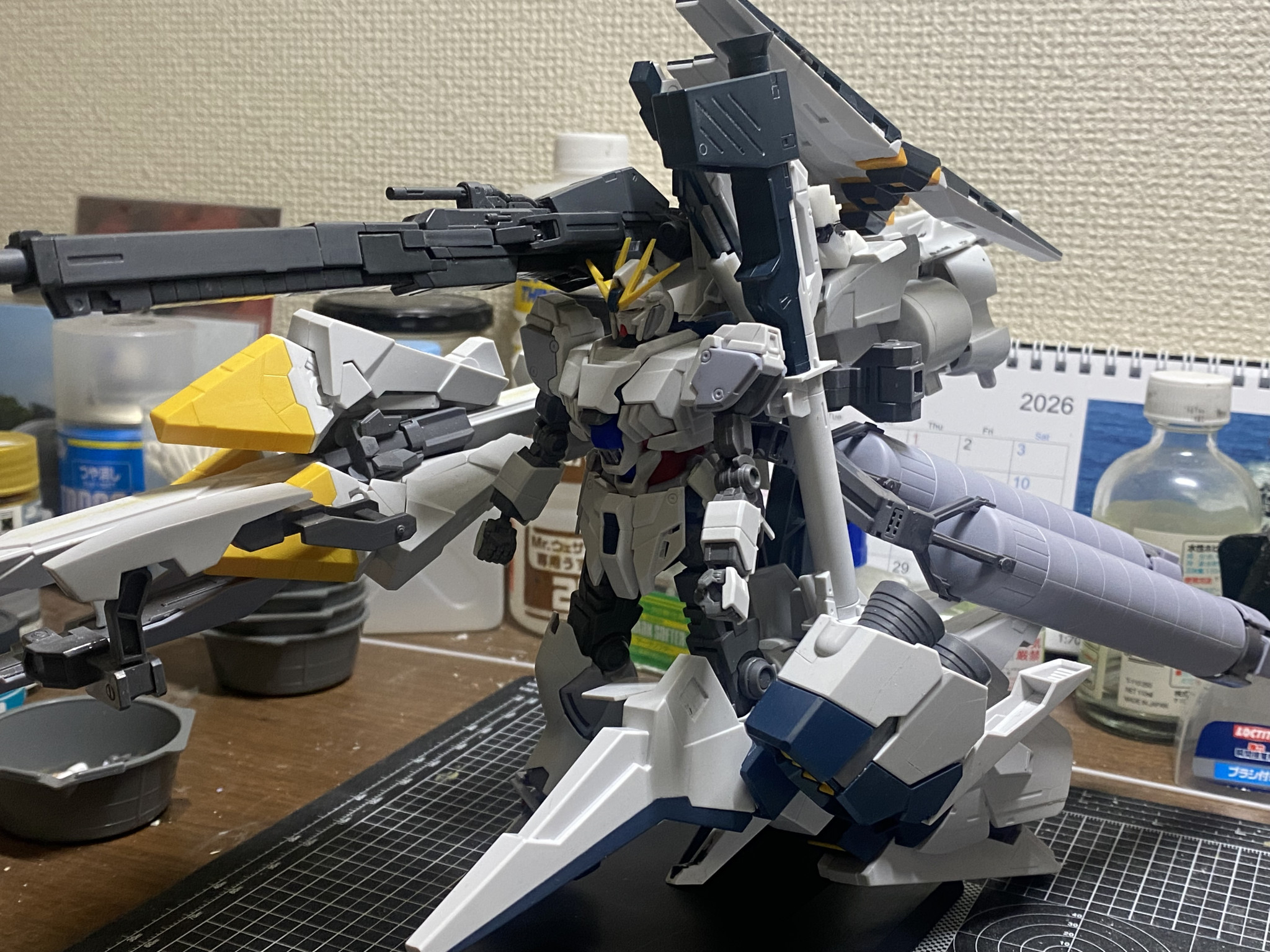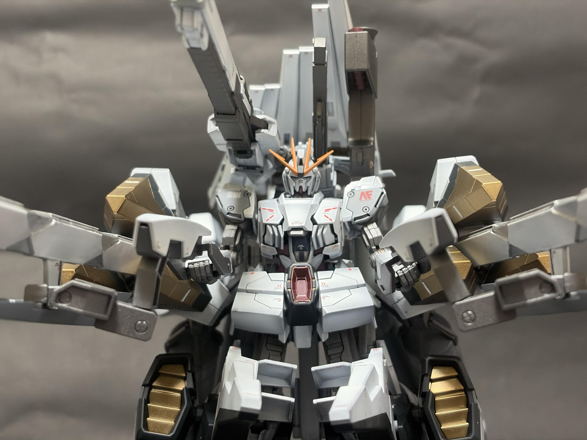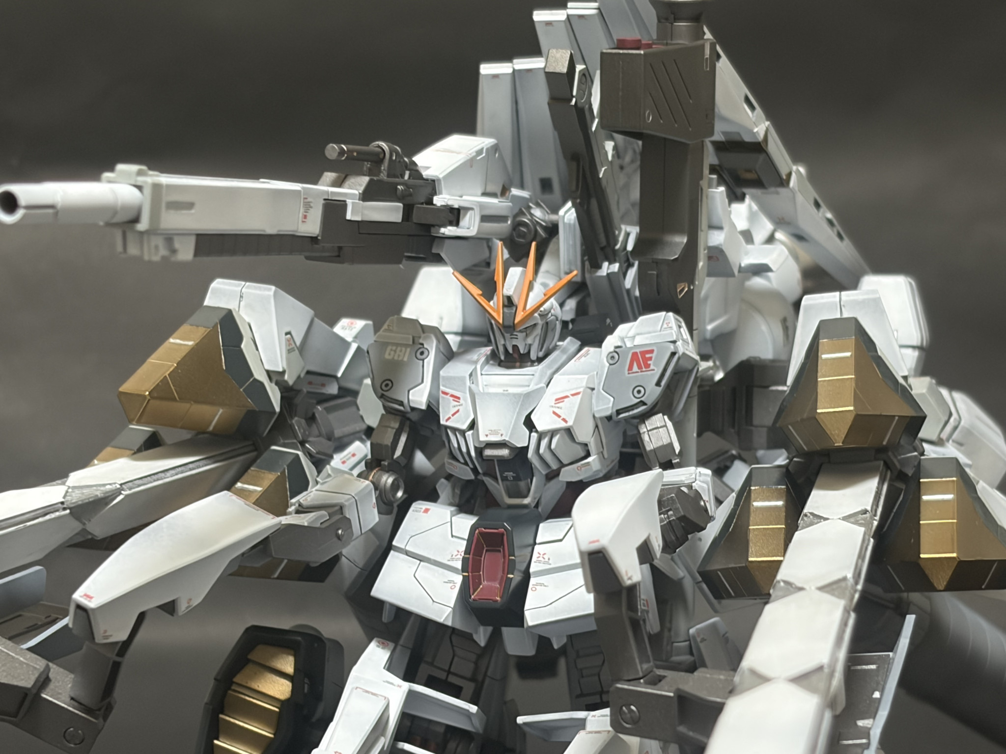 作中撃墜数ゼロだったナラティブを何とか活躍出来る形にしたくて、νガンダムの武装を装備させてみました