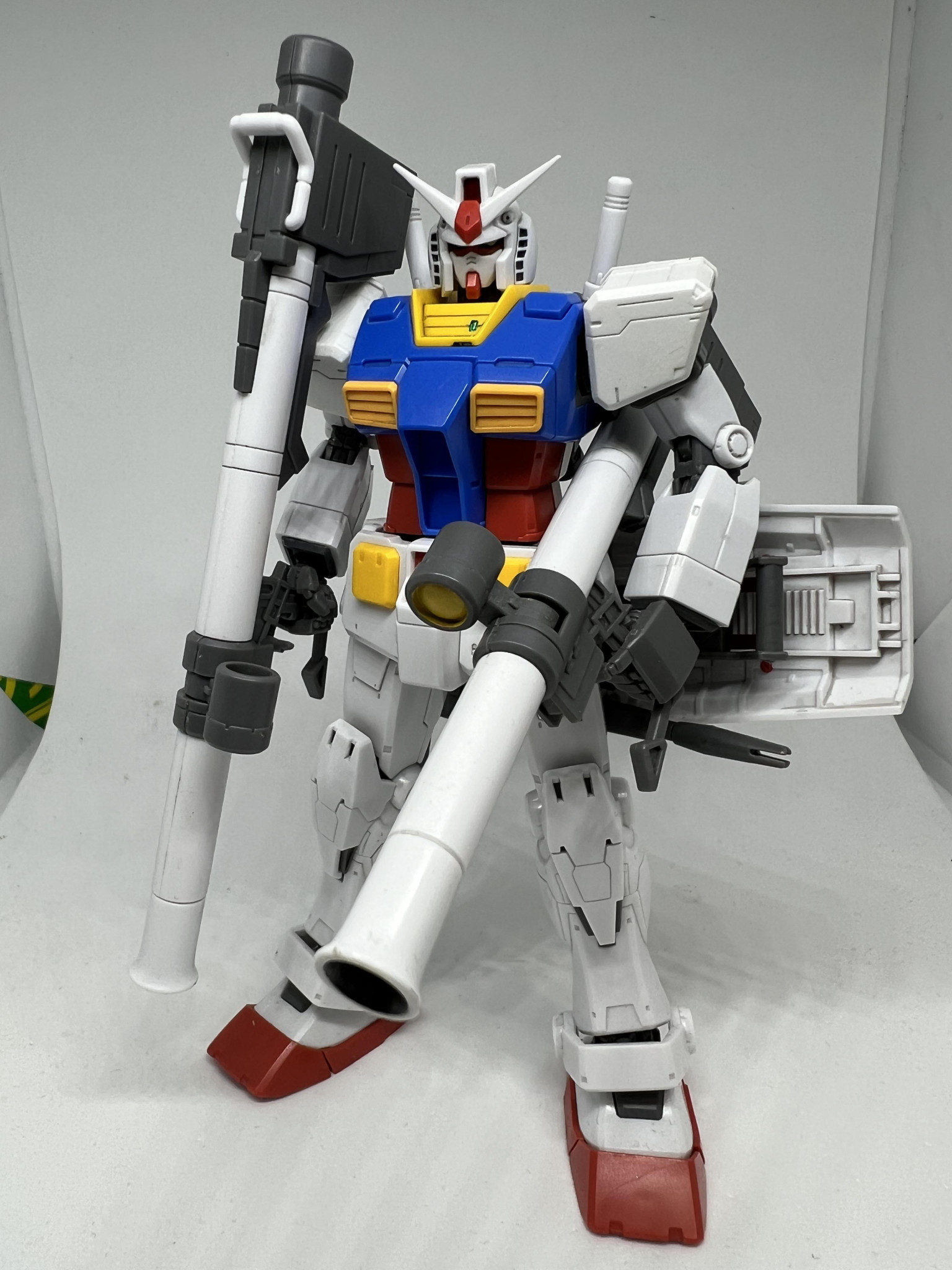 上のガンダムを制作した際に話をしていた肩やバックパックを手に入れられたため、接続位置や置き換えに手を加えながらなんとか形にすることができました。