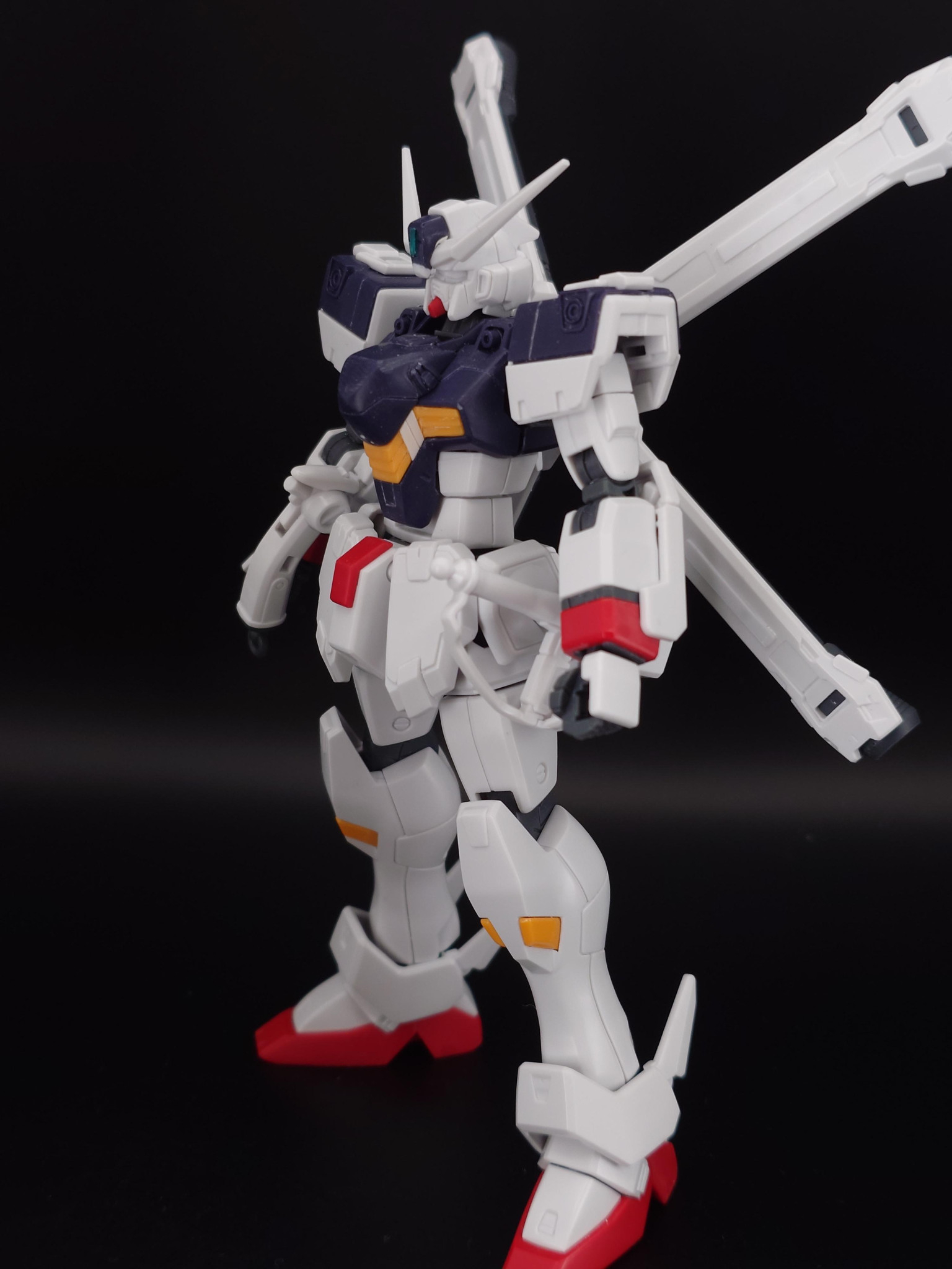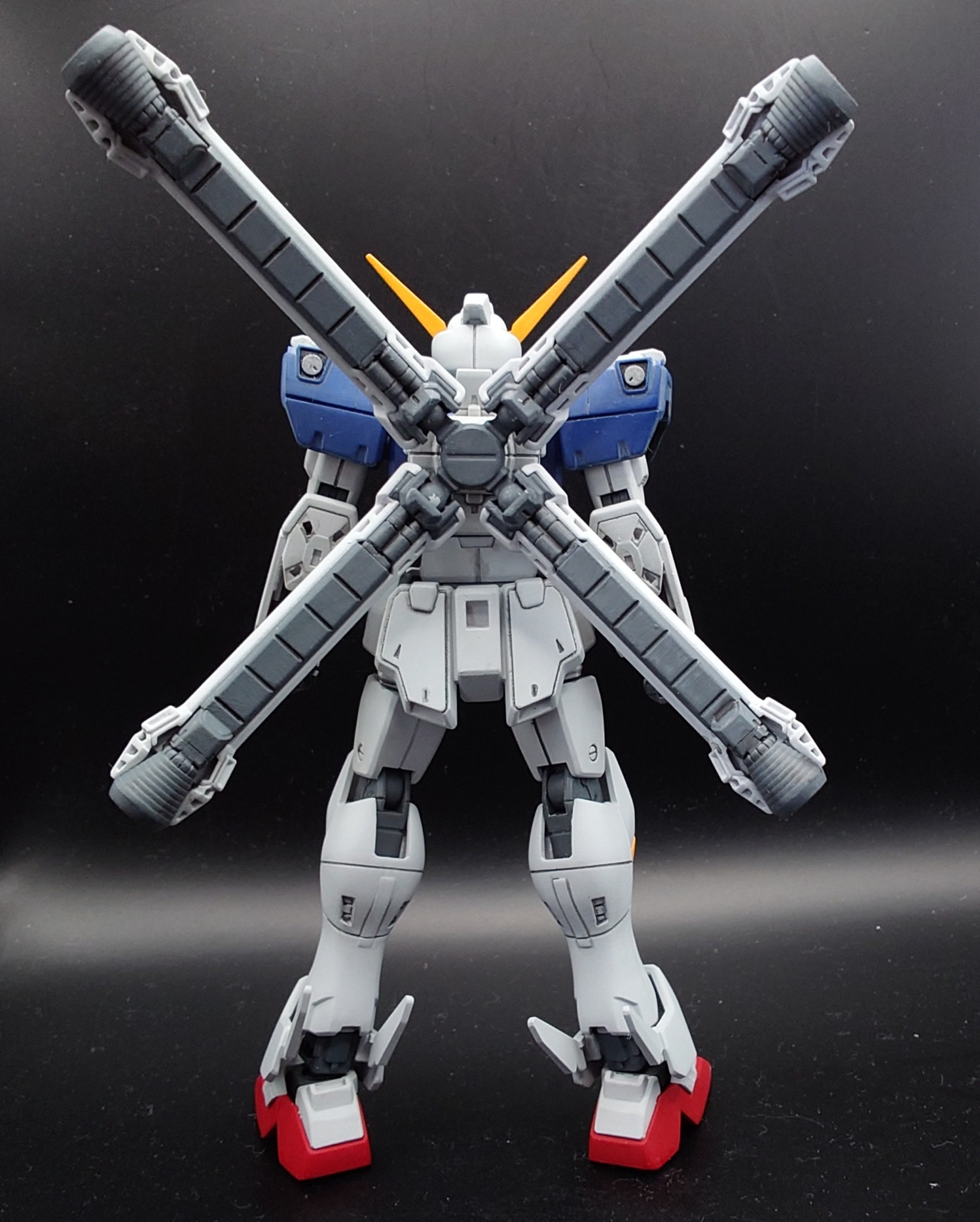 クロスボーンガンダムの特徴であるX型のバーニアも速度重視よりも宇宙での姿勢制御での有効性を考えると変更なしとしています。