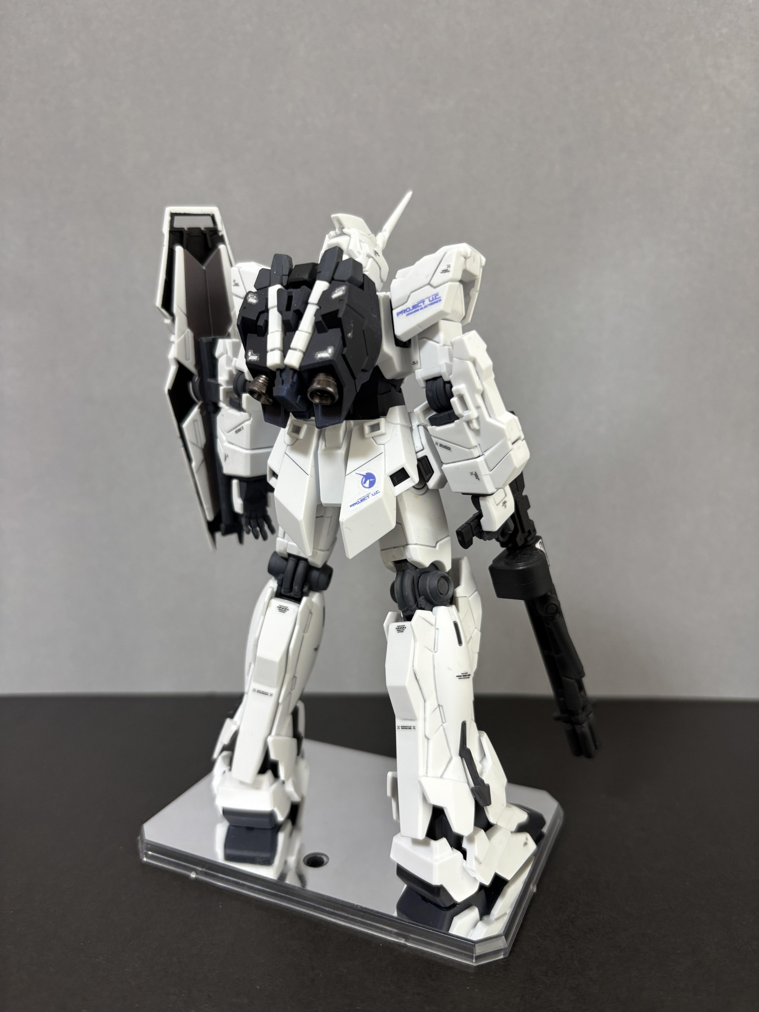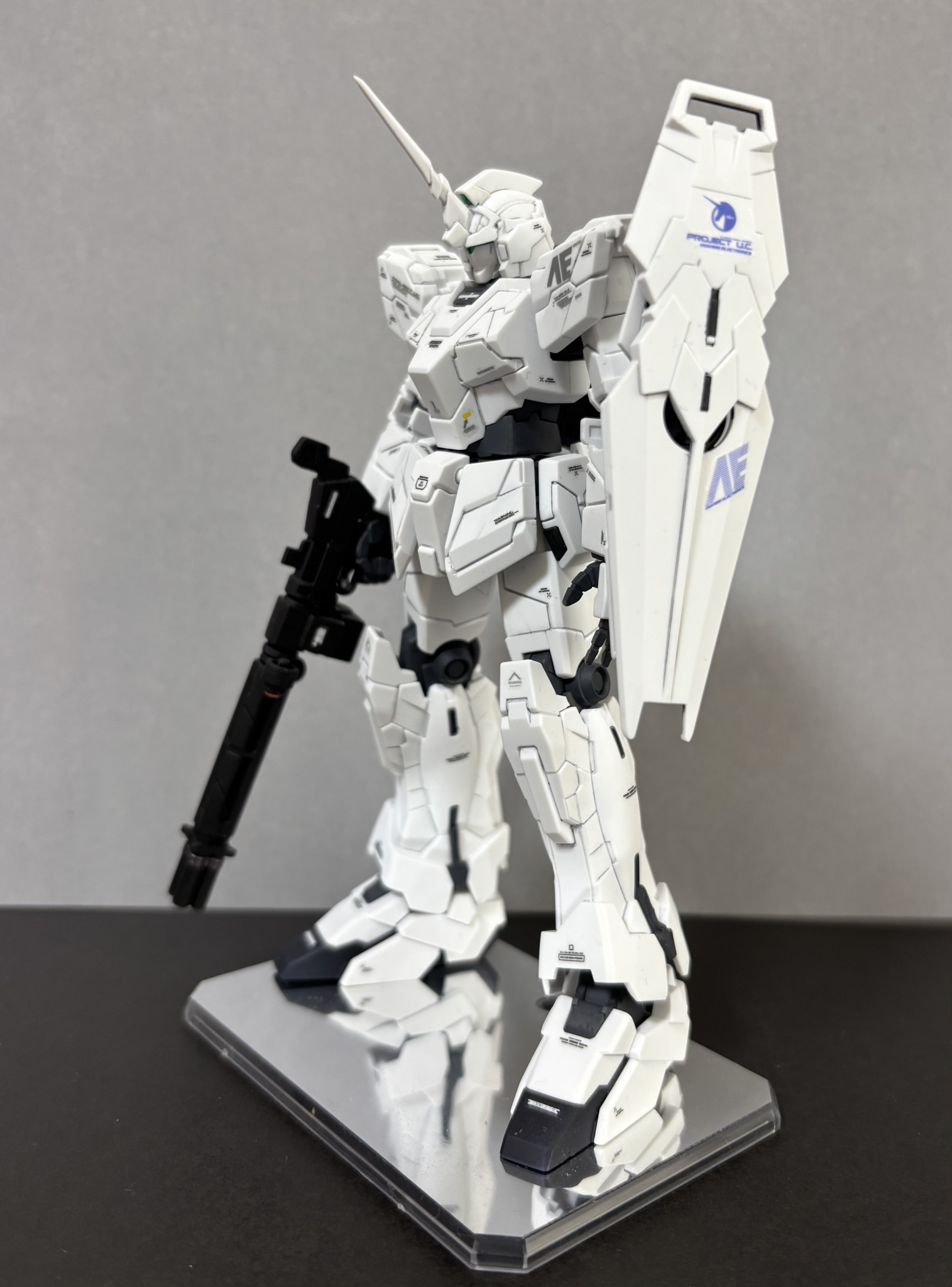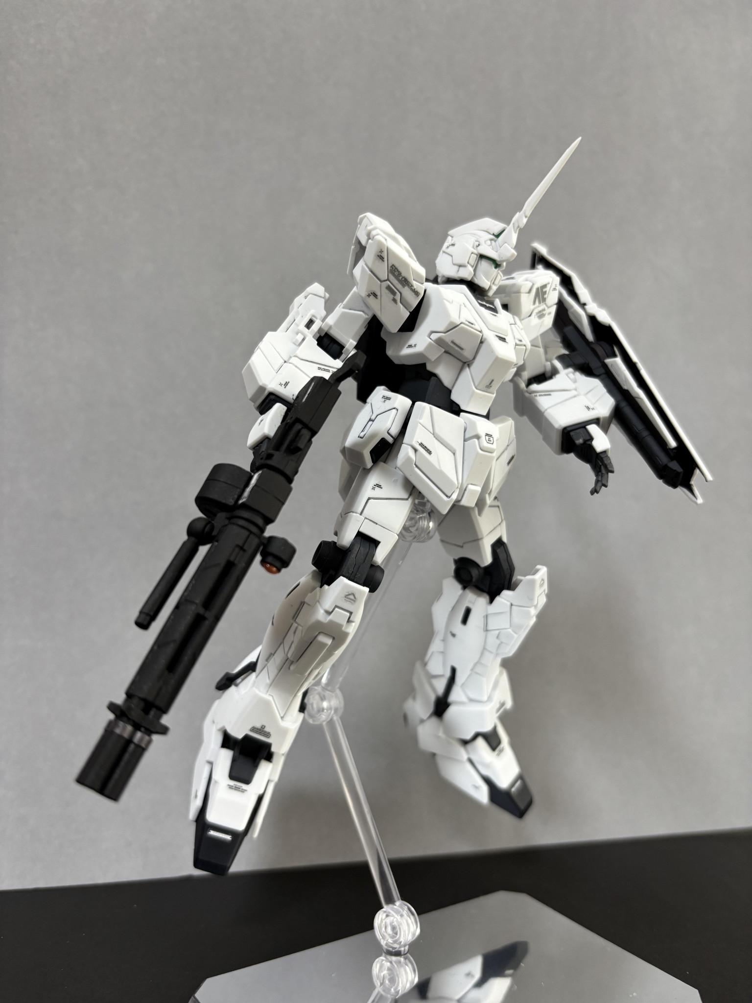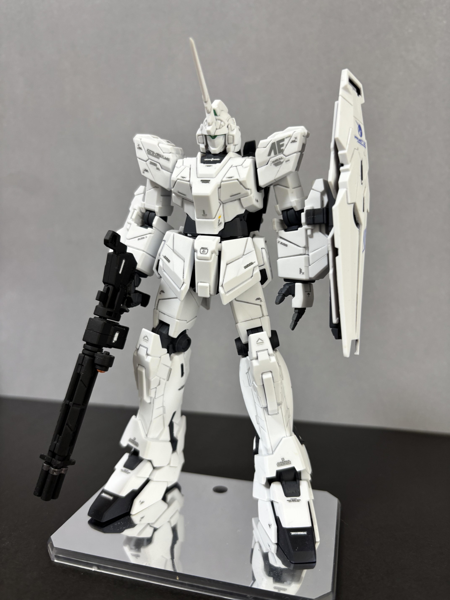 3作目になります。全ガンダムの中でユニコーンが一番好きでして、ユニコーンモードも製作しました。ガンダムマーカー部分塗装になります。