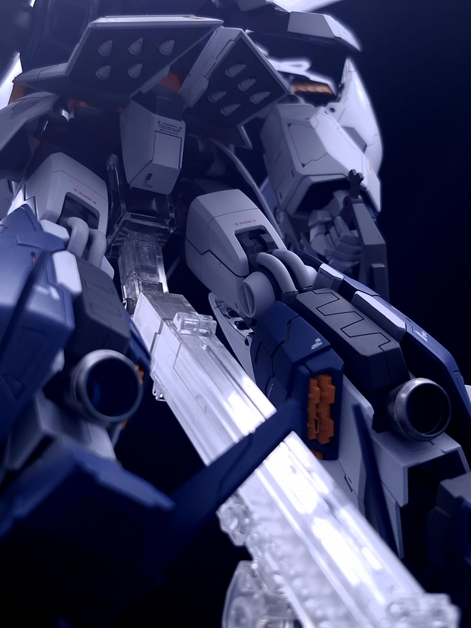 頭頂部にカメラを追加&ヘルメットの大型化をしてクスィーの潰れたアウトラインをいわゆる見慣れたガンダムのシルエットに近づけてあります。