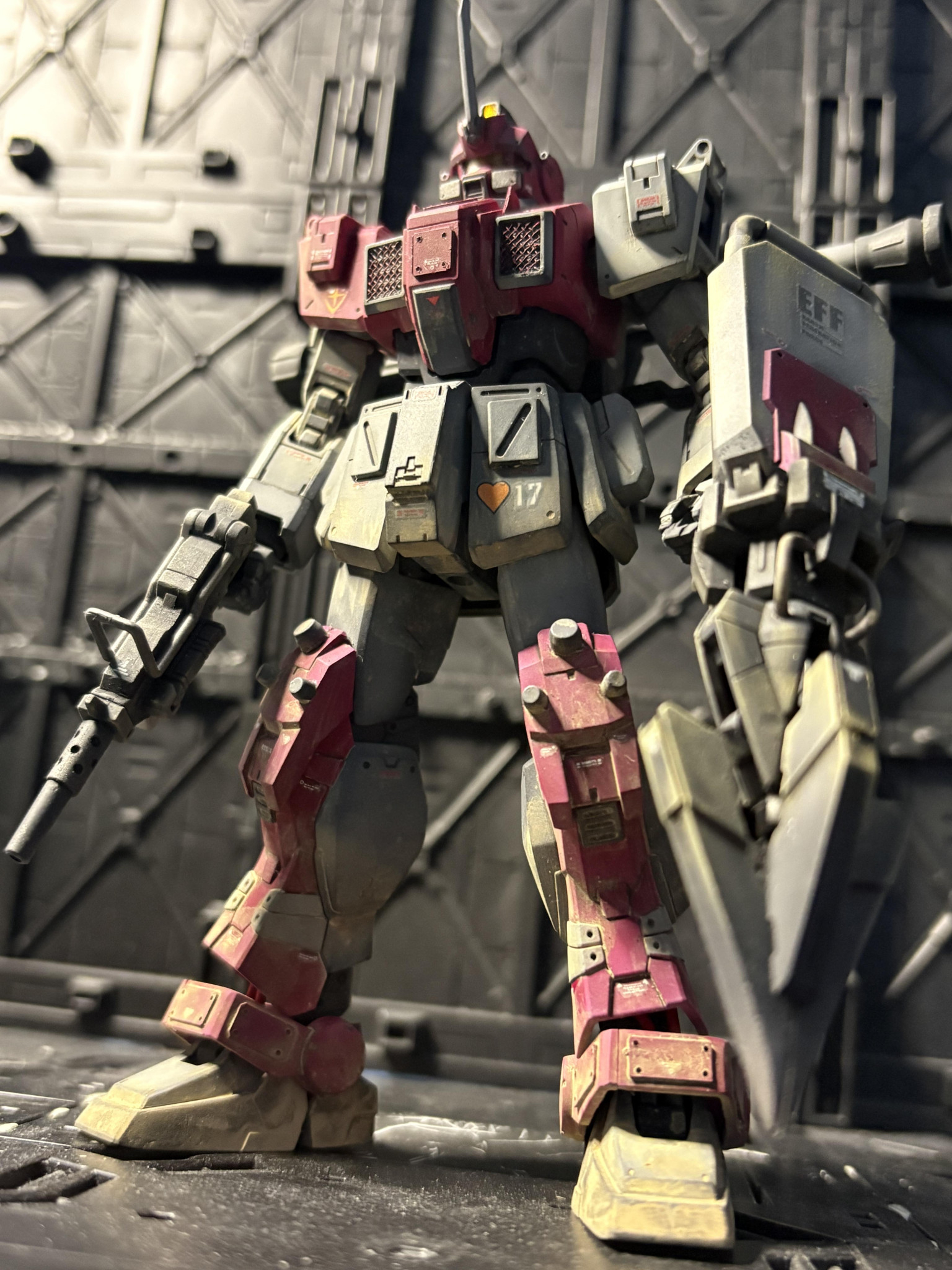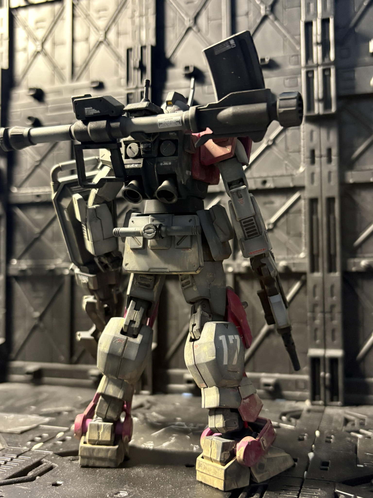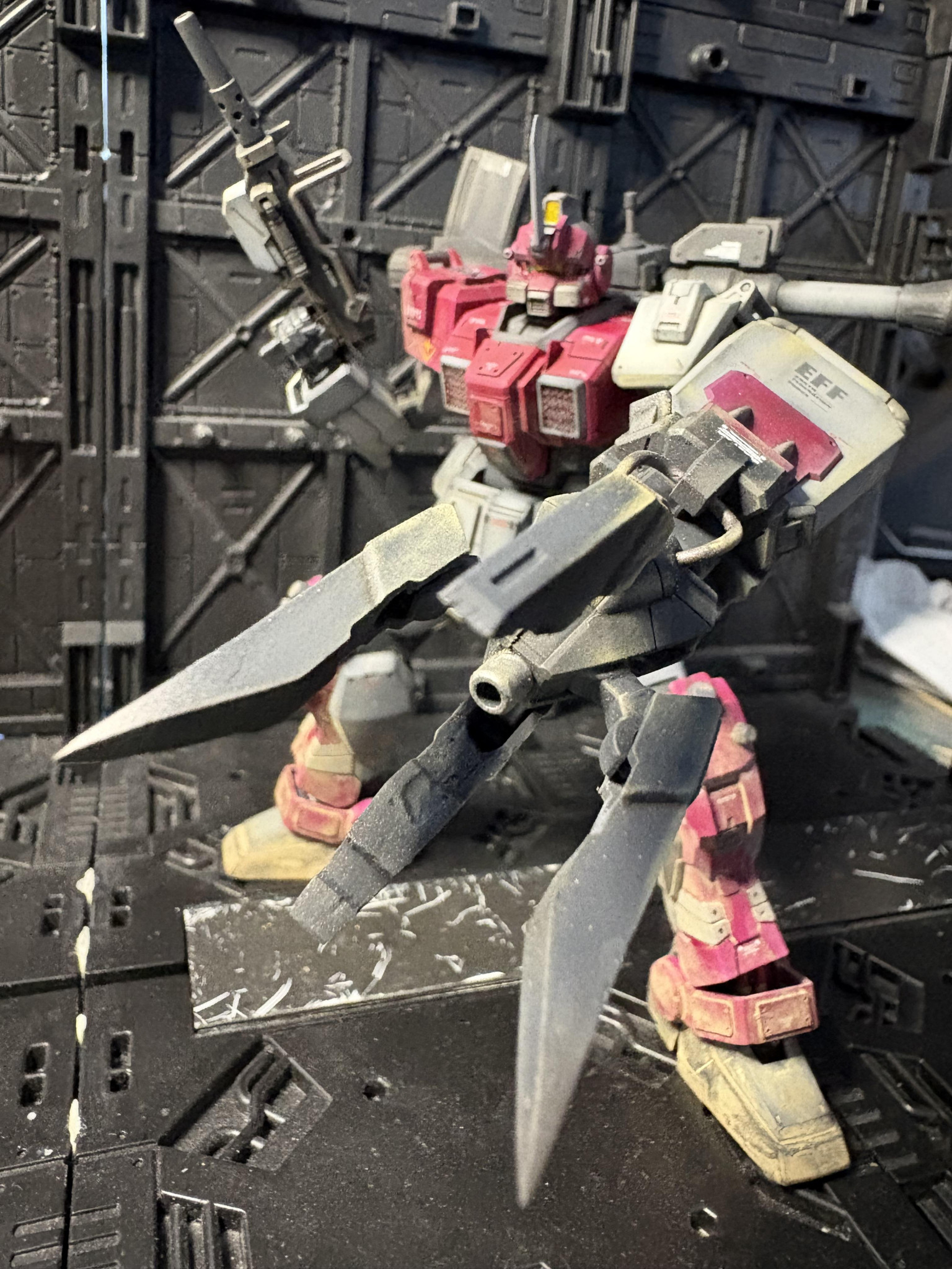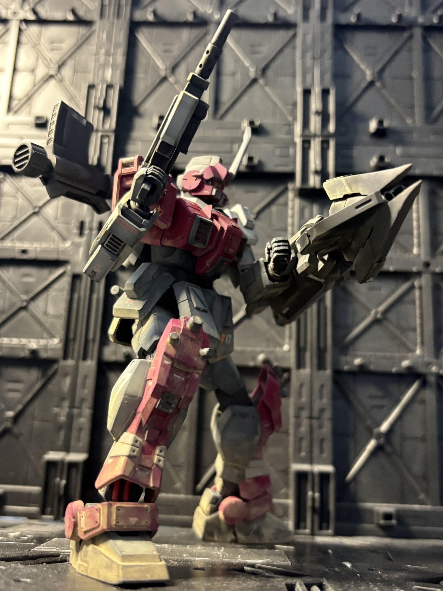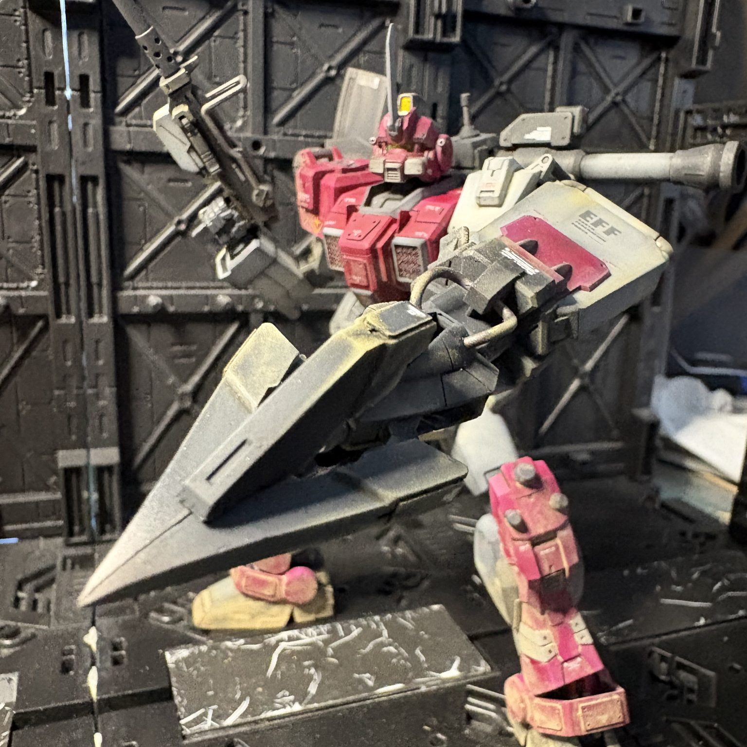 前回に引き続き、赤い三巨星の一体。ジムアイアンバンカー装備で御座る😁