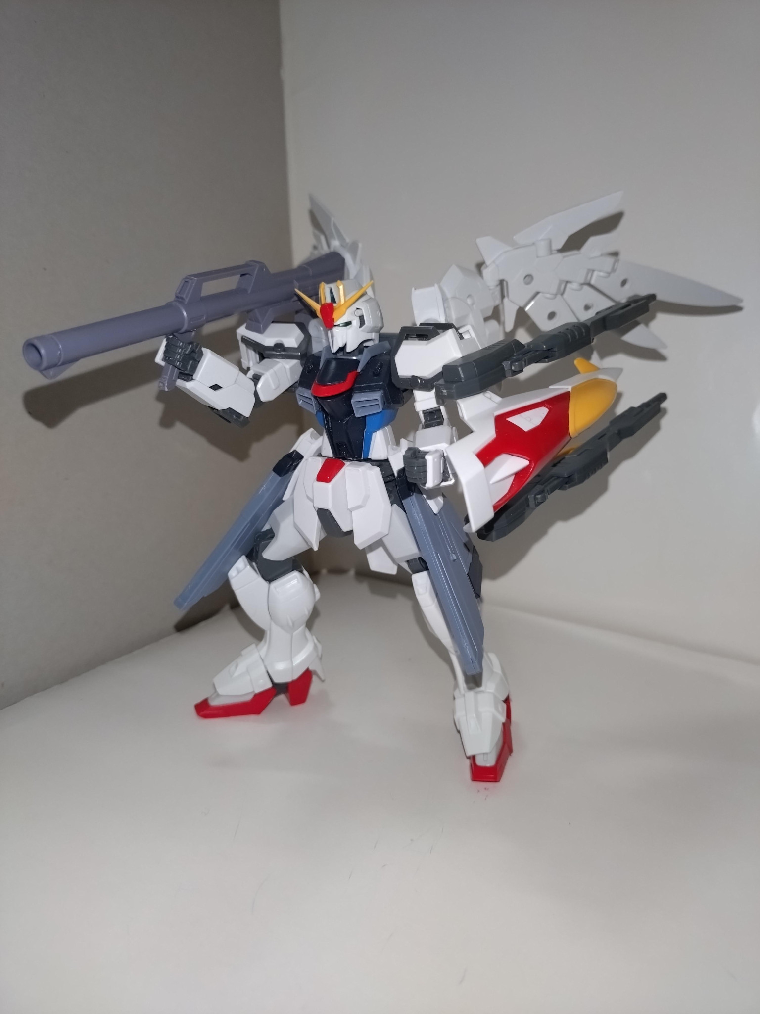 最近、HGCEストライク、HGCEフリーダムのパーツがイエサブに入っていたのを確認し、これらを用いて、以前制作したダブルアルファガンダムをより強化してみました。