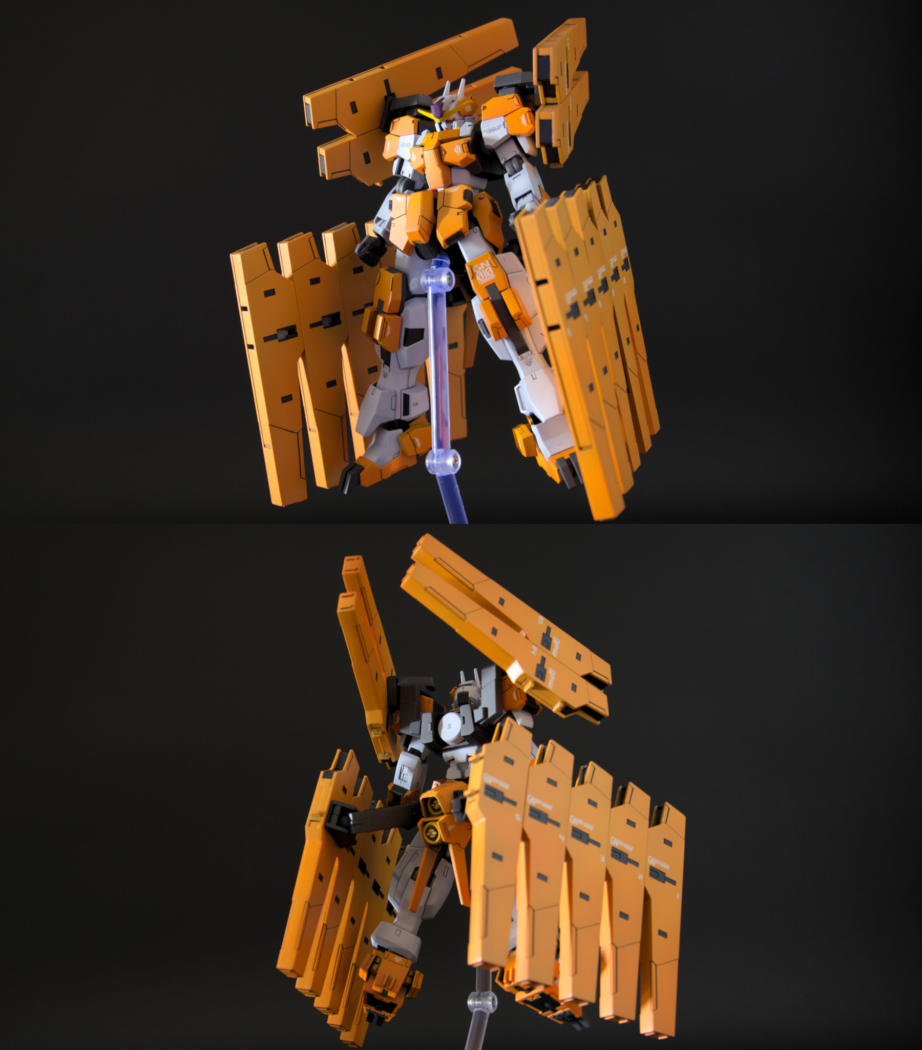 最終決戦仕様としてさらに増量したシールドビットは合わせ目消し、塗分け共に苦行でしたが、連結部のツメが折れた時が一番萎えました。。