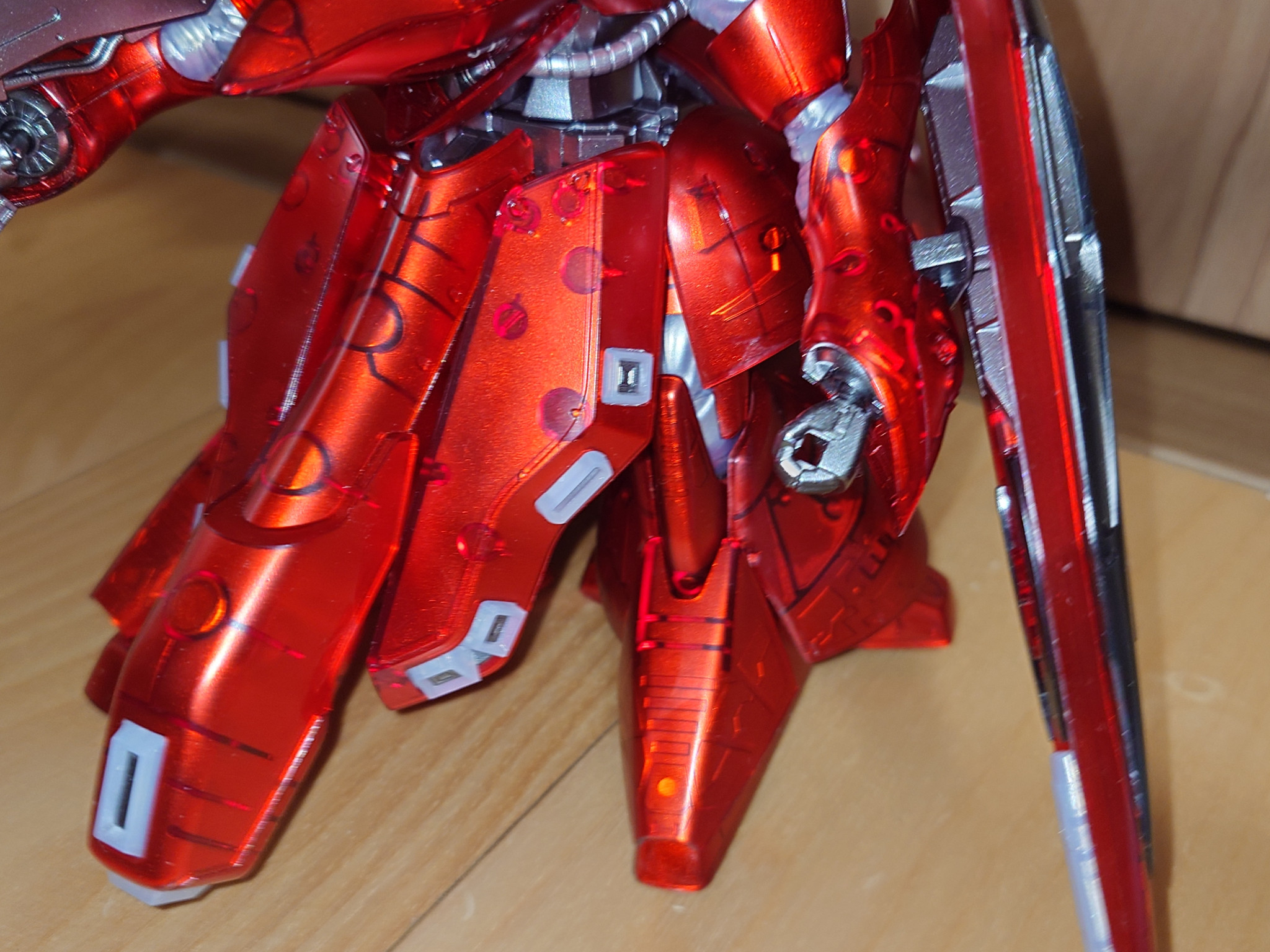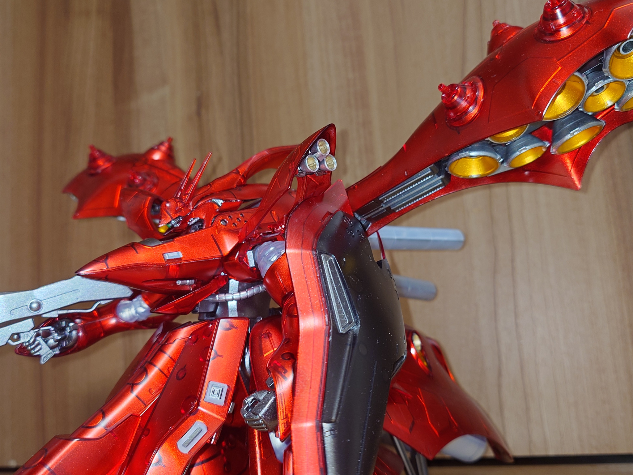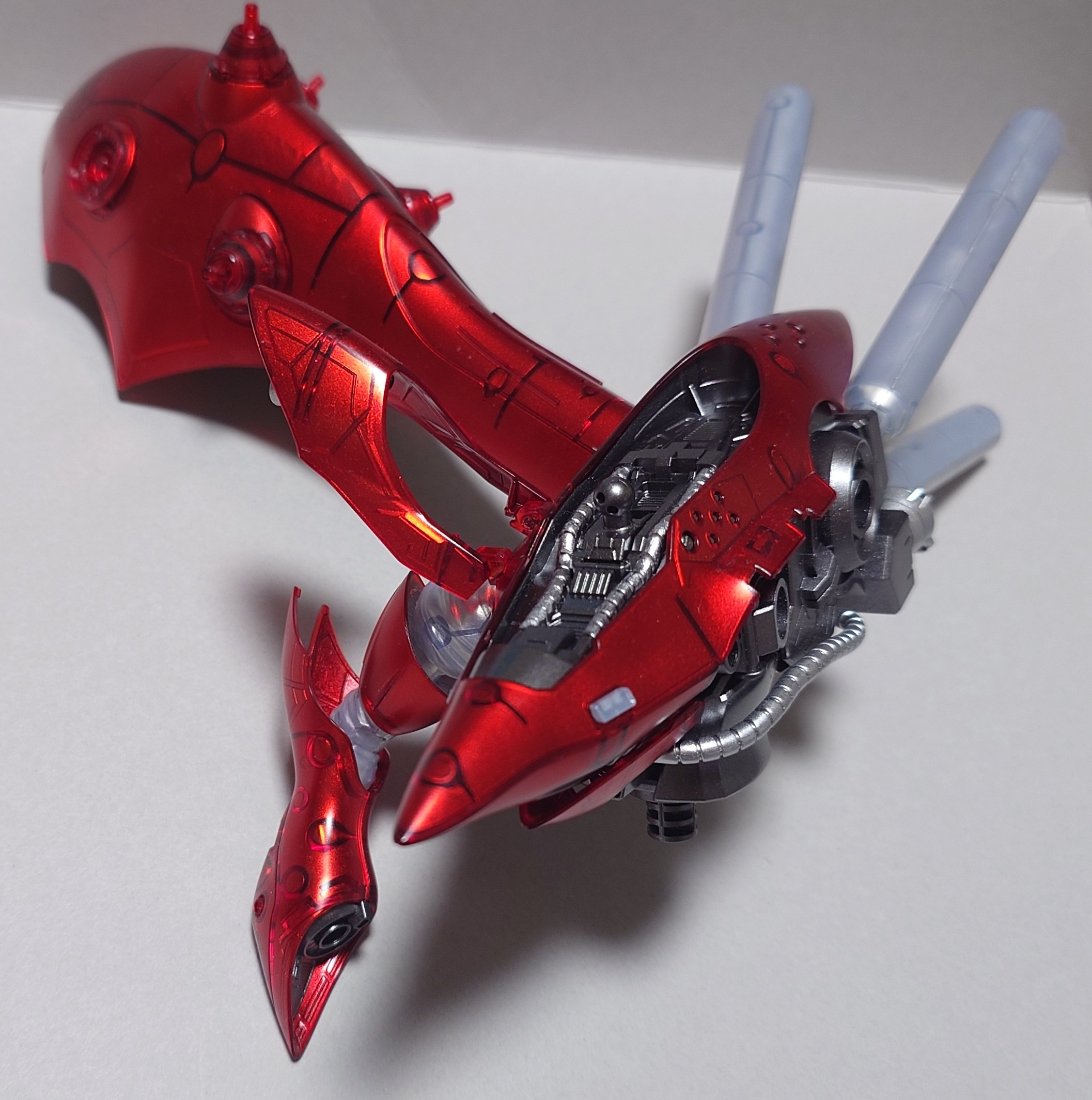 こんな感じに裏面をスターブライトシルバーで塗りました。でも、結構見えてしまう所もあるので、基本的には裏面はシルバーの上からクリアレッド吹いてます。