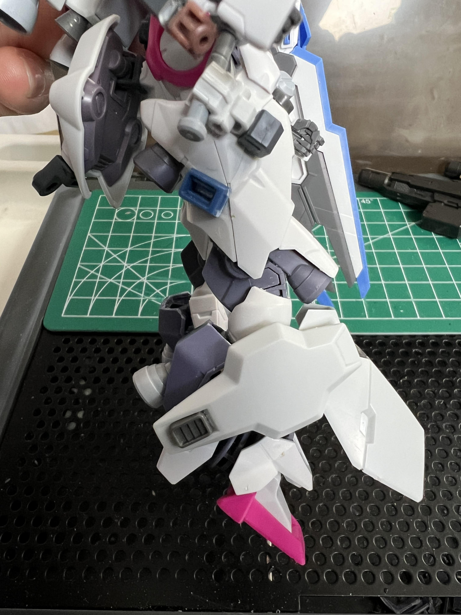 ルブリスの足をジオン系の裾が広がったシルエットにする為にミカエリスの太ももを加工して可動式の装甲に