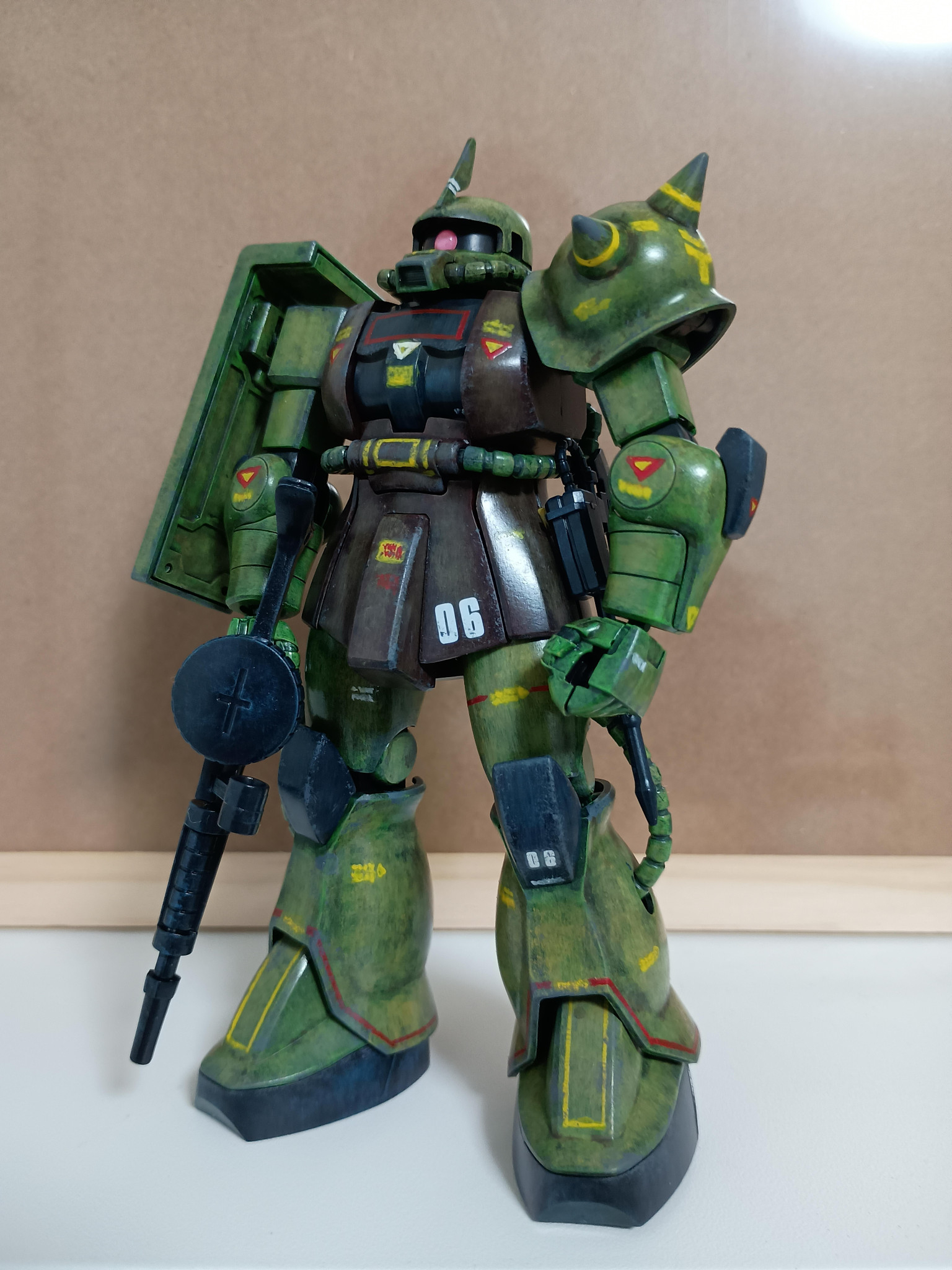 HG グフカスタムを清水式筆塗り、全塗装しました🎨手を加えた…