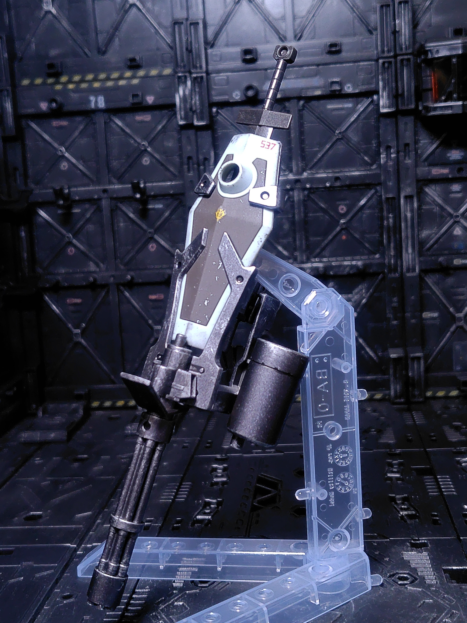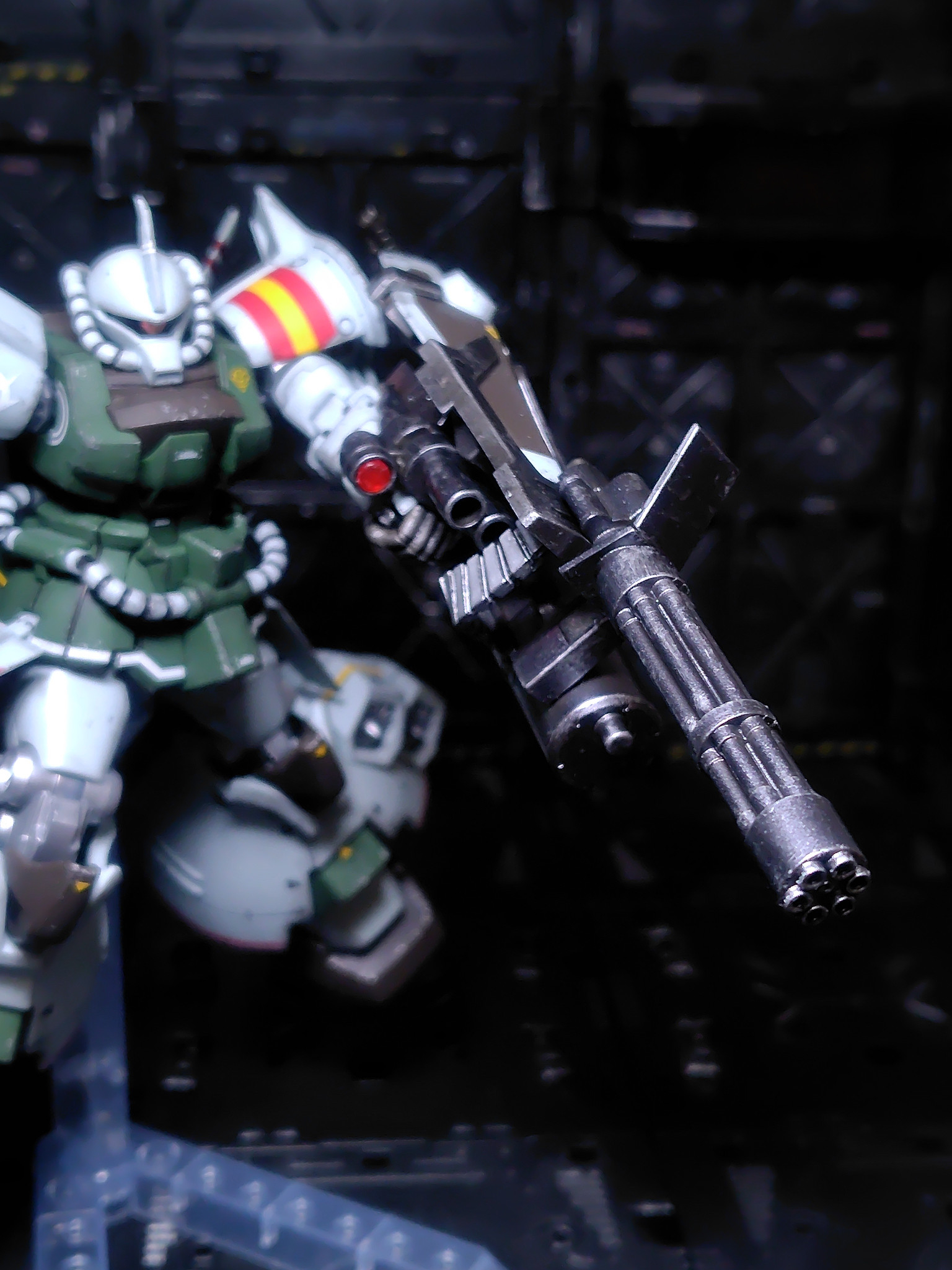ゴツい機体のウェザリングとガトリングの金属感が質感、重量感、がたまりませんね。カッコ良いです。ポージングもキマっててタダモノでは無いぞって凄いです。またまた見応えのある作品ありがとうございます。