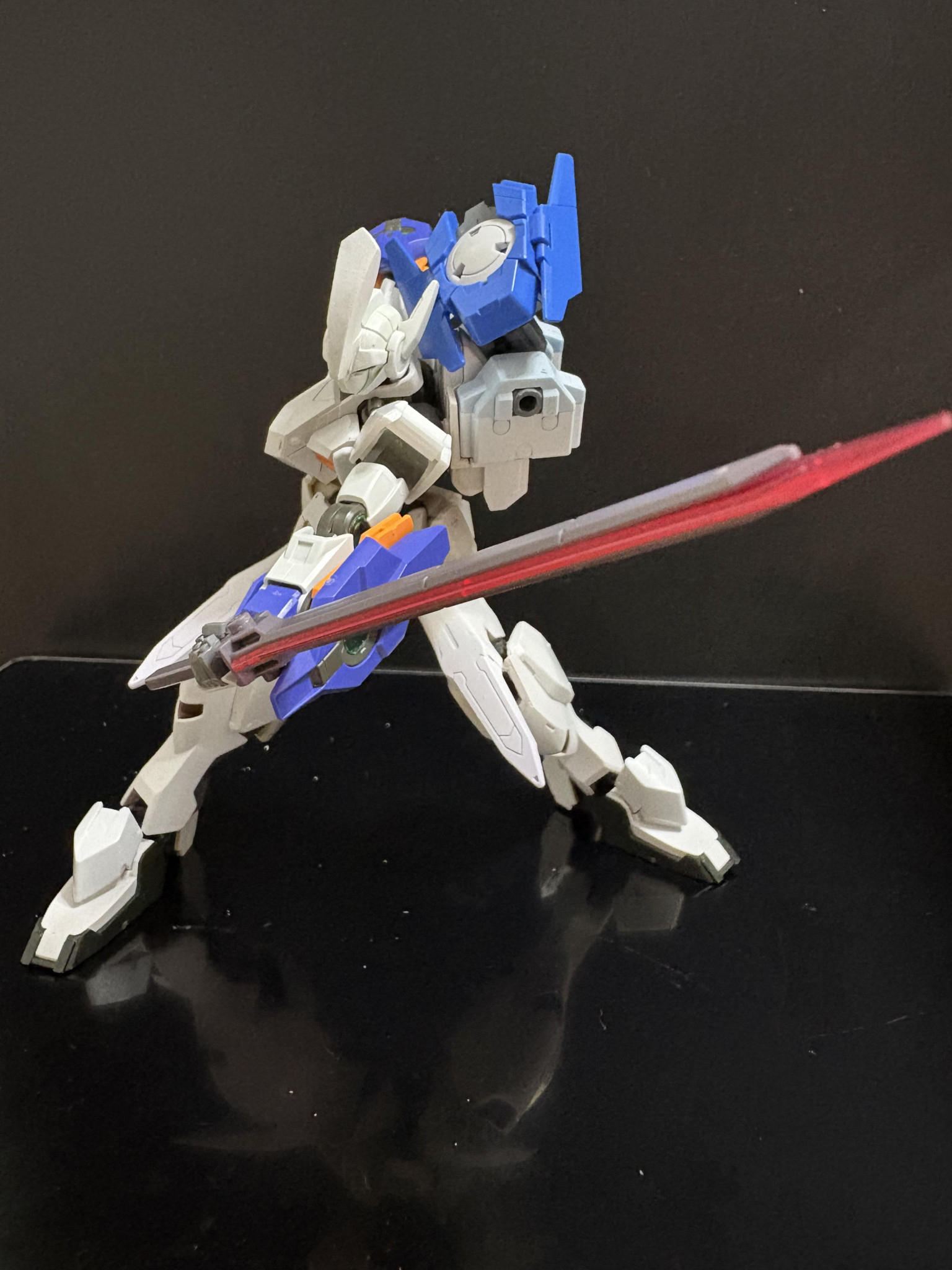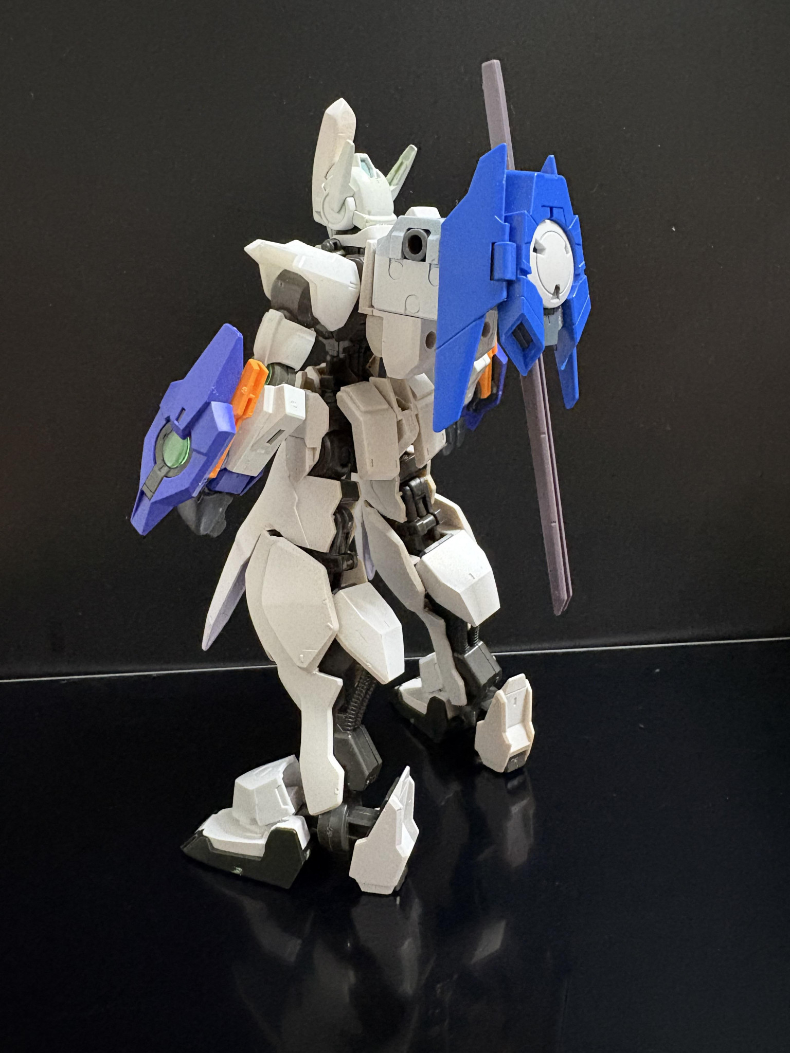 そこで、背部に外付けのGNドライヴを強引に接続。GN粒子を機体各部のエイハブ・ウェーブ伝達経路に混入させることで、本来相容れない「パワー」と「柔軟性」を無理やり同期させている。