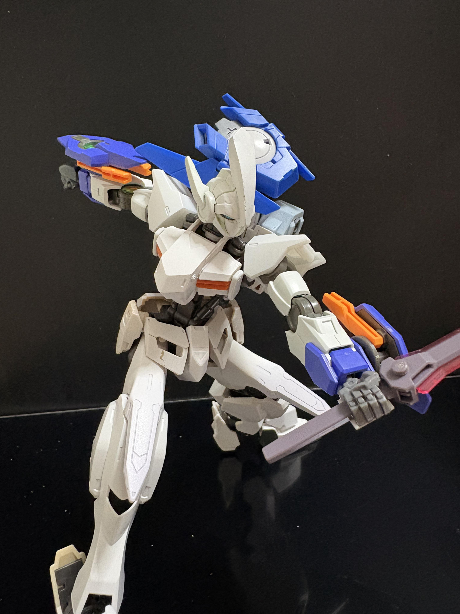 鉄血のオルフェンズの「エイハブ・リアクター」を骨格に、00の「GNドライヴ」を外付けで同期させるという、技術的にも設定的にも「じゃじゃ馬」な機体を目指しています。
