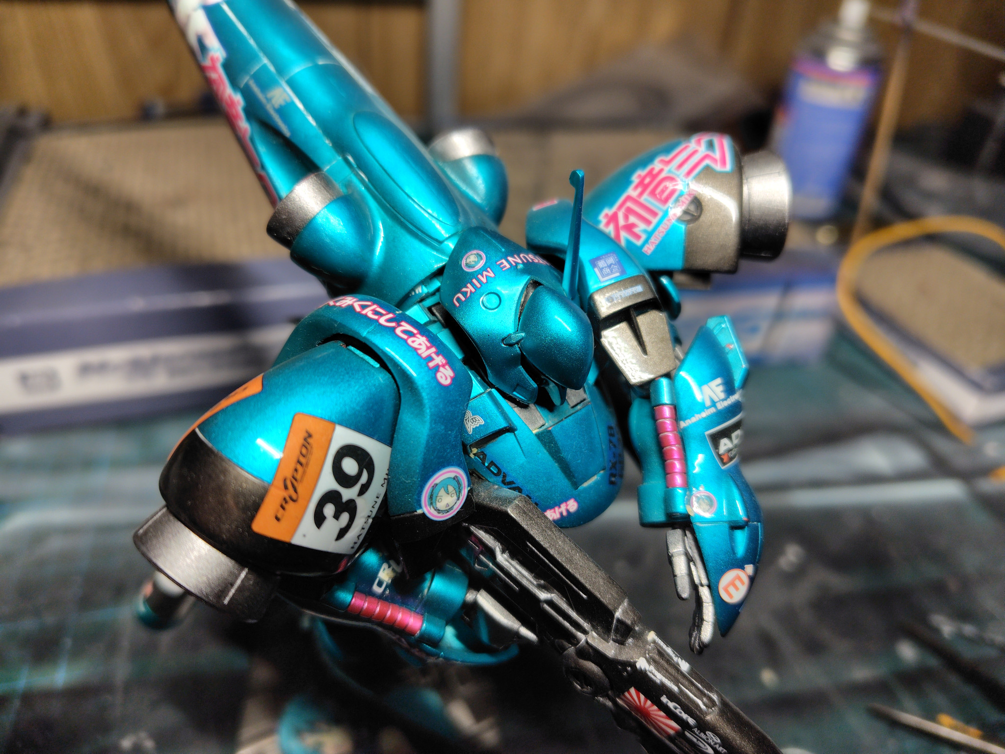 仮組みだけして時間なく放置してたガーベラと昔依頼のカーモデルのデカールの余りという無茶な組み合わせでしたがなんとか見えるぐらいにはなりました。しかしガンプラとウレタン塗装は相性悪すぎると痛感しました。