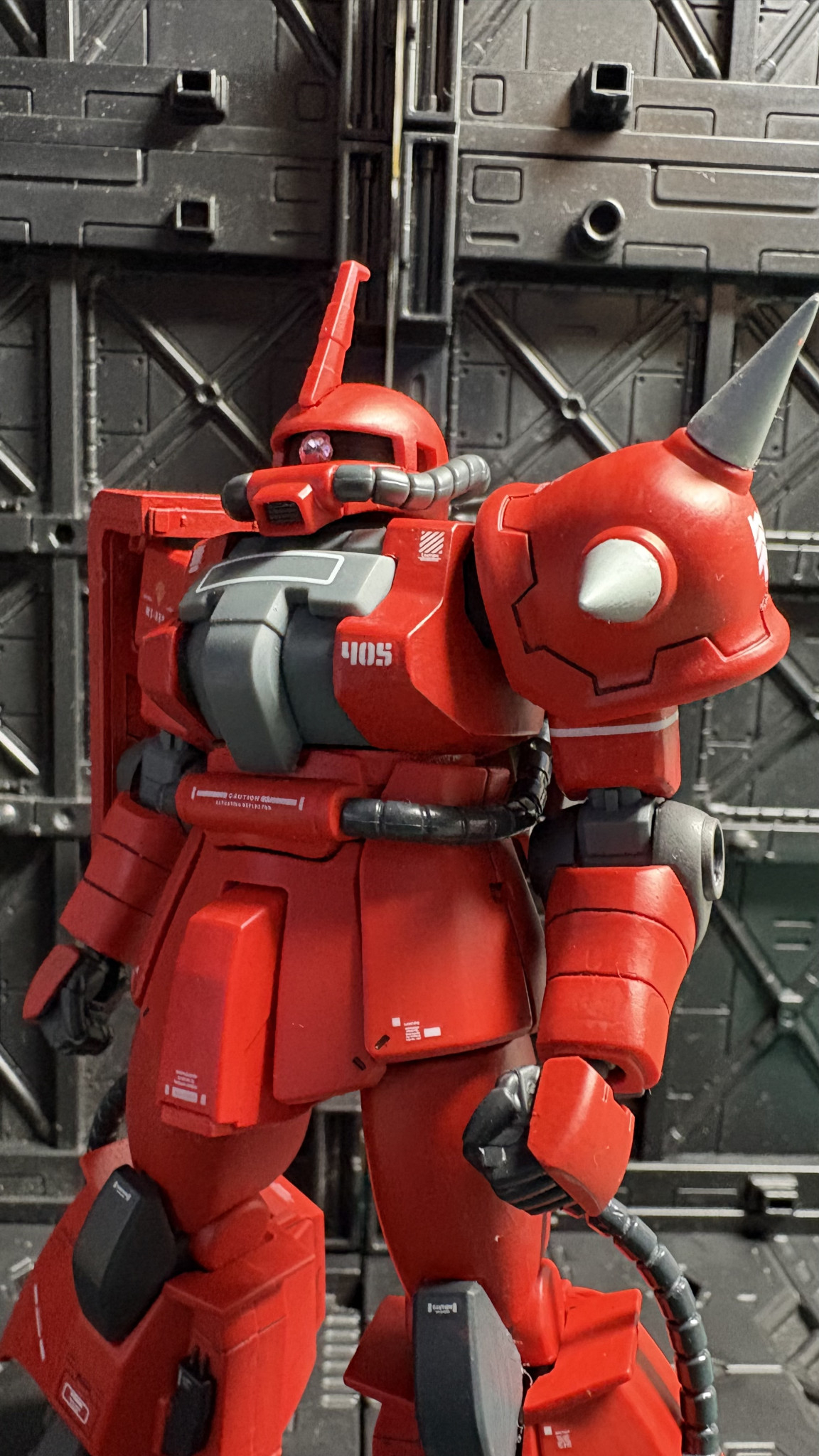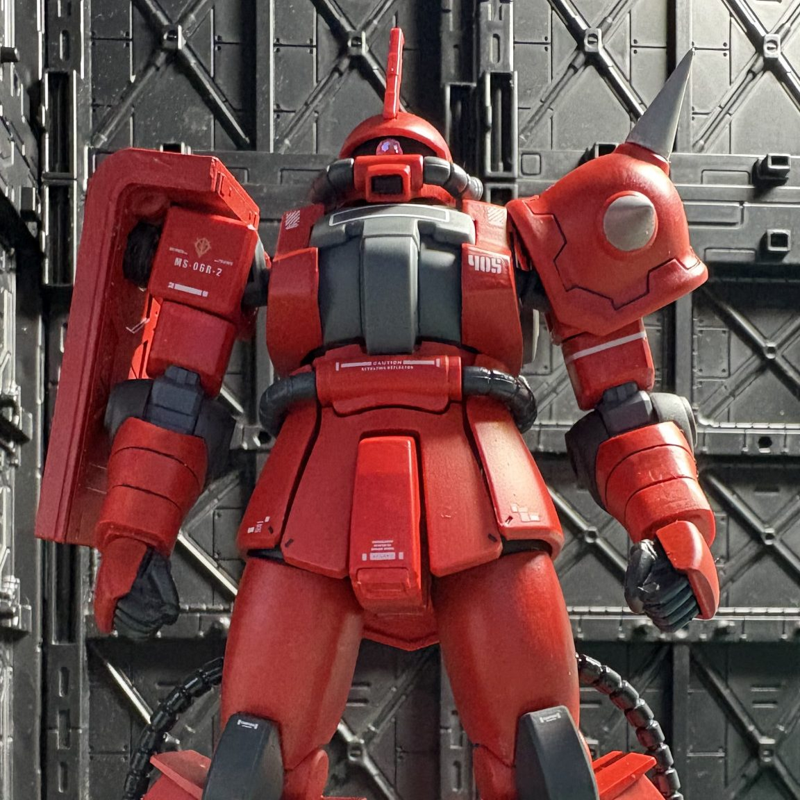 特にジョニー・ライデンの乗機として作っていないので、肩スパイクはグレーに塗装。カラーリングも若干変えています。
