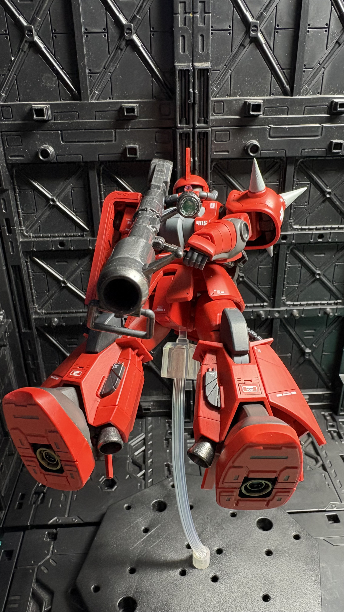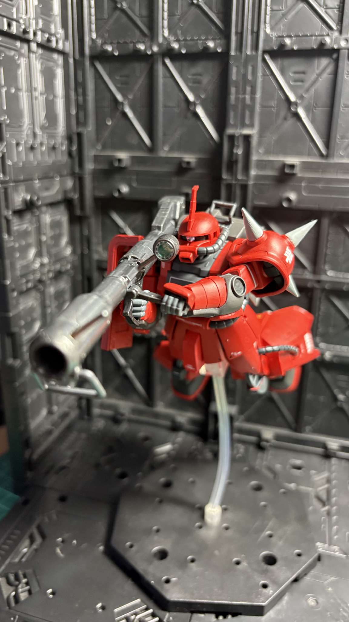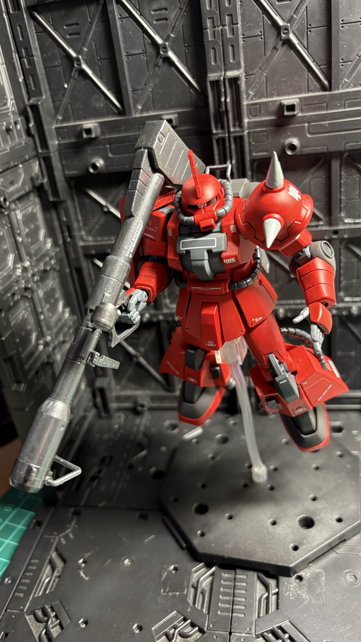 お顔はモノアイ部で縦にチョイ詰め、胸部・腰部はF2型に交換しました。高機動F2ザクFz型ってとこでしょうか😅