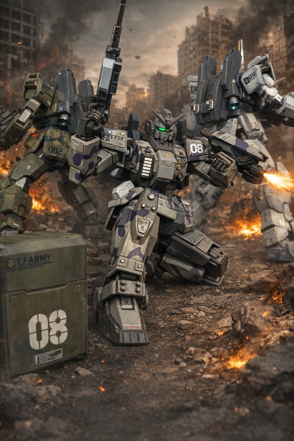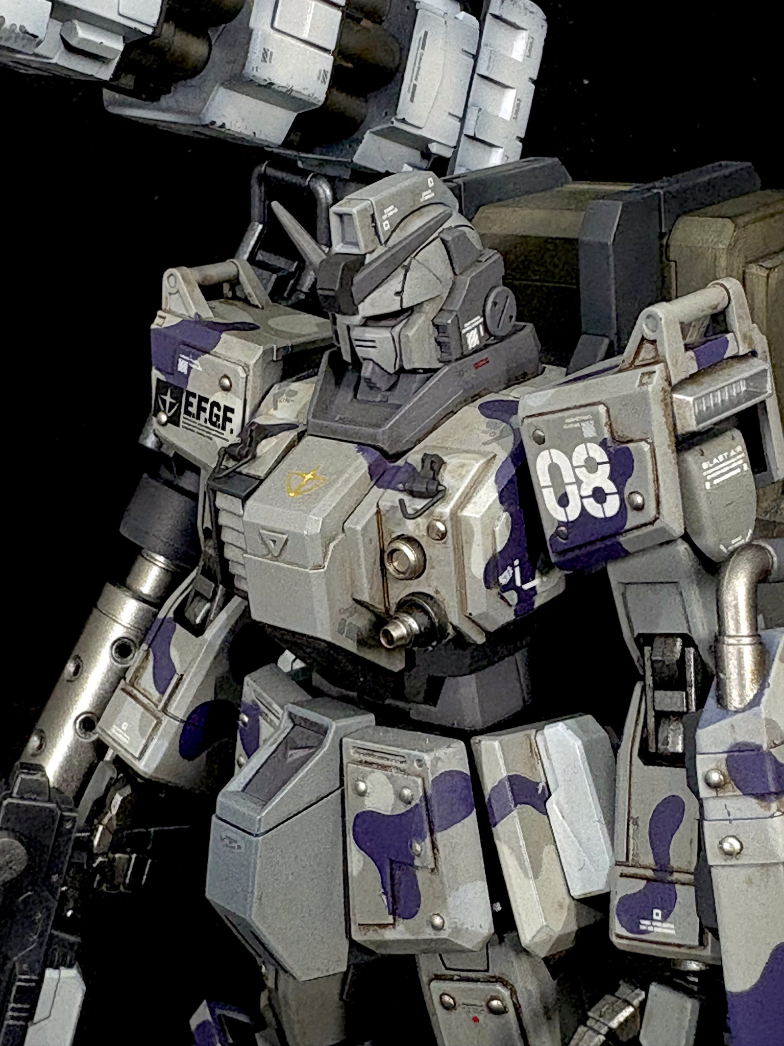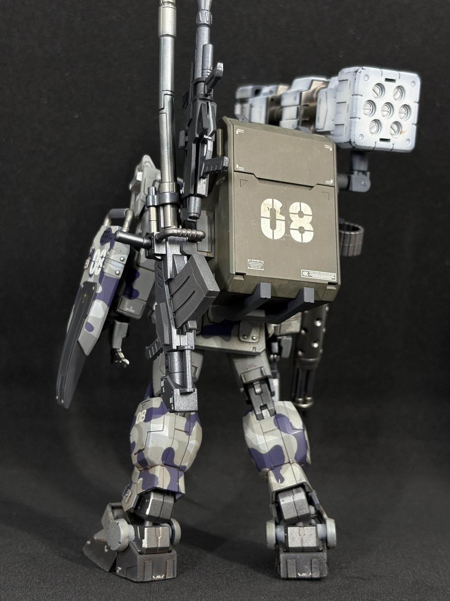コメント失礼します!武器モリモリでテンション上がります!武器の塗り分けのセンスがあり、デミのガトリングがカッコいいです!迷彩も素晴らしいく、陸戦型のゴツさに磨きがかかってますね。良いものありがとうございます!