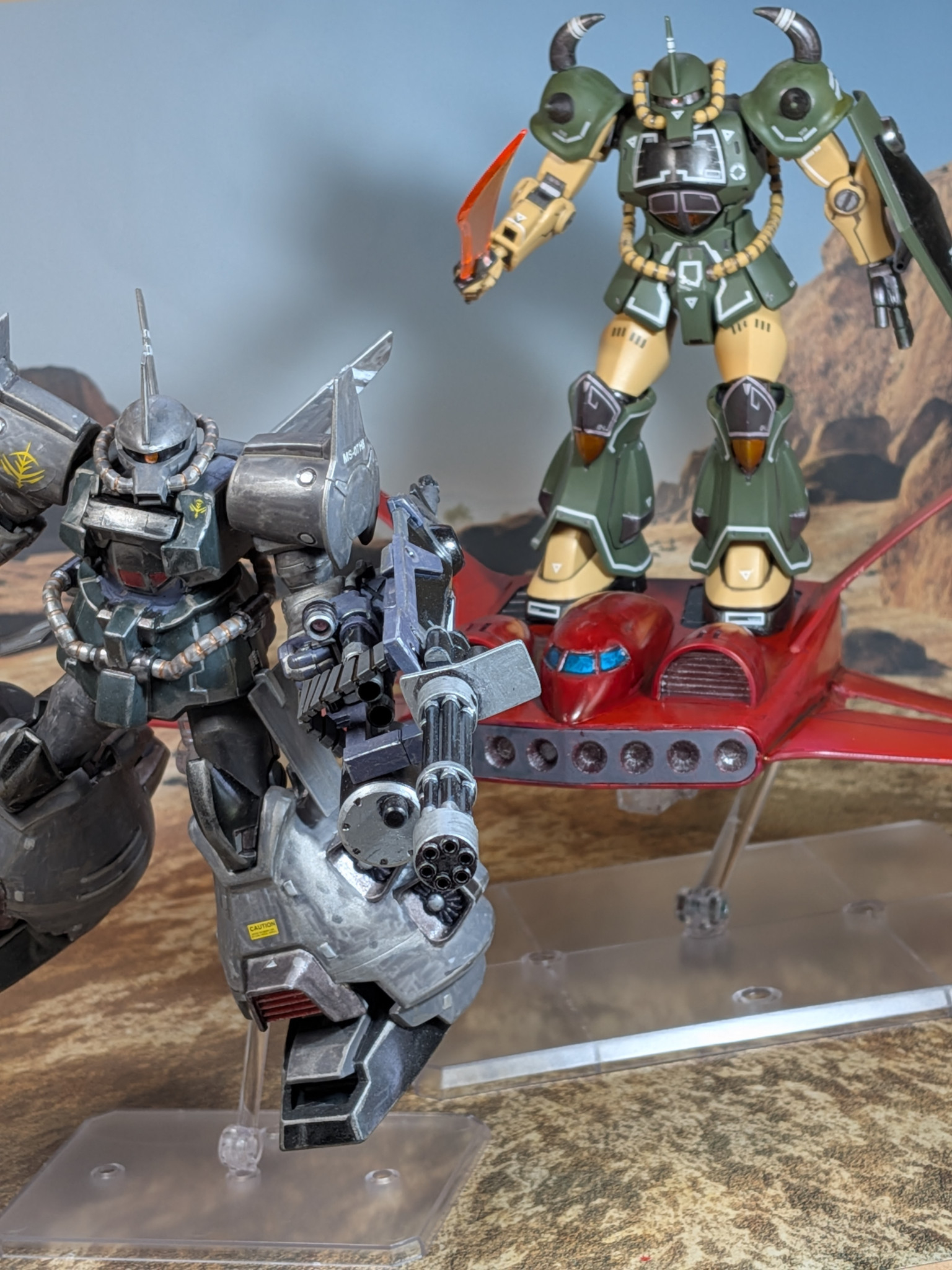 渓谷を2機のМSが飛ぶ。