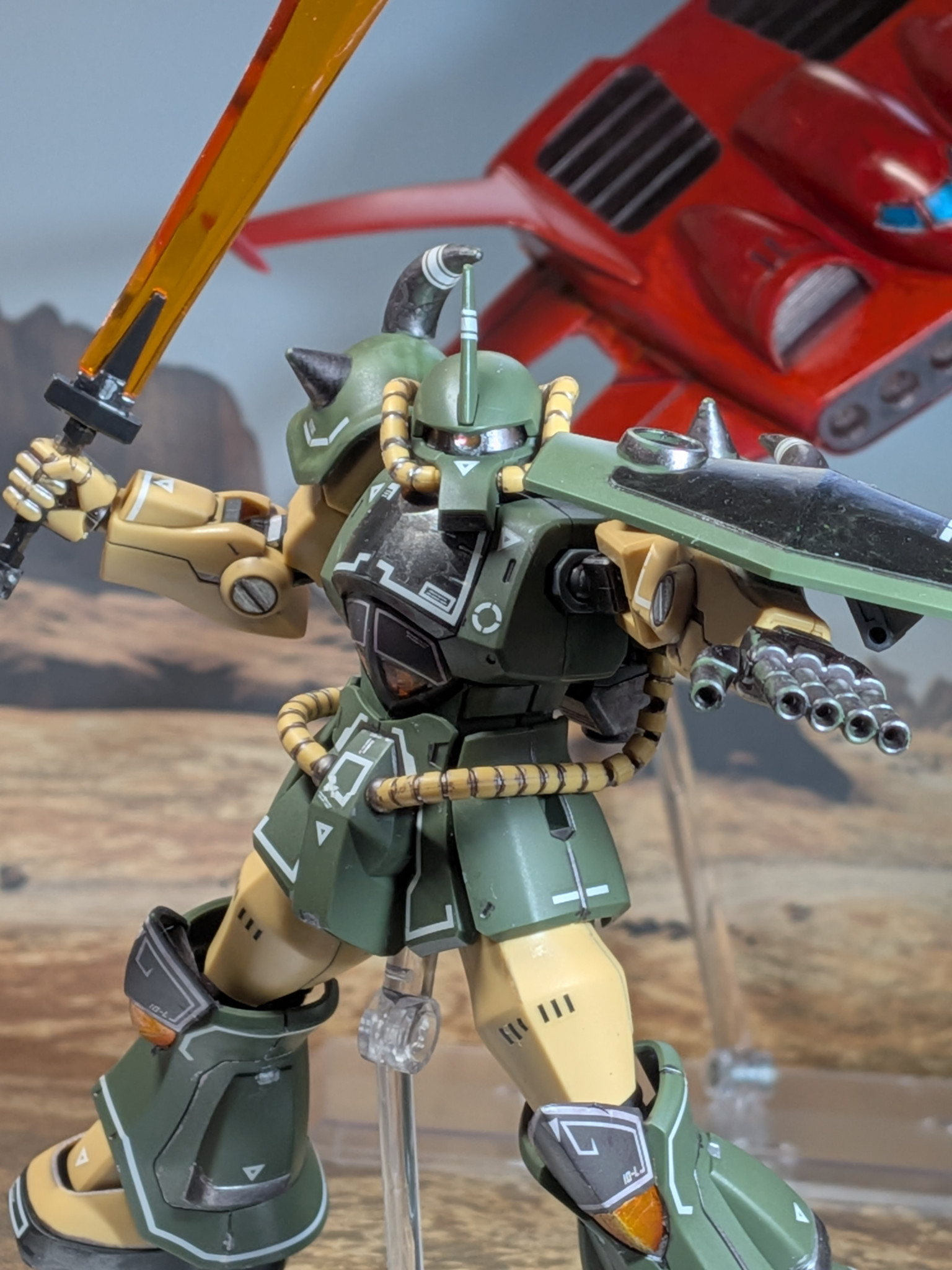 ガンダムザガンを作りました いつもの部分塗装に今回は光沢トッ…