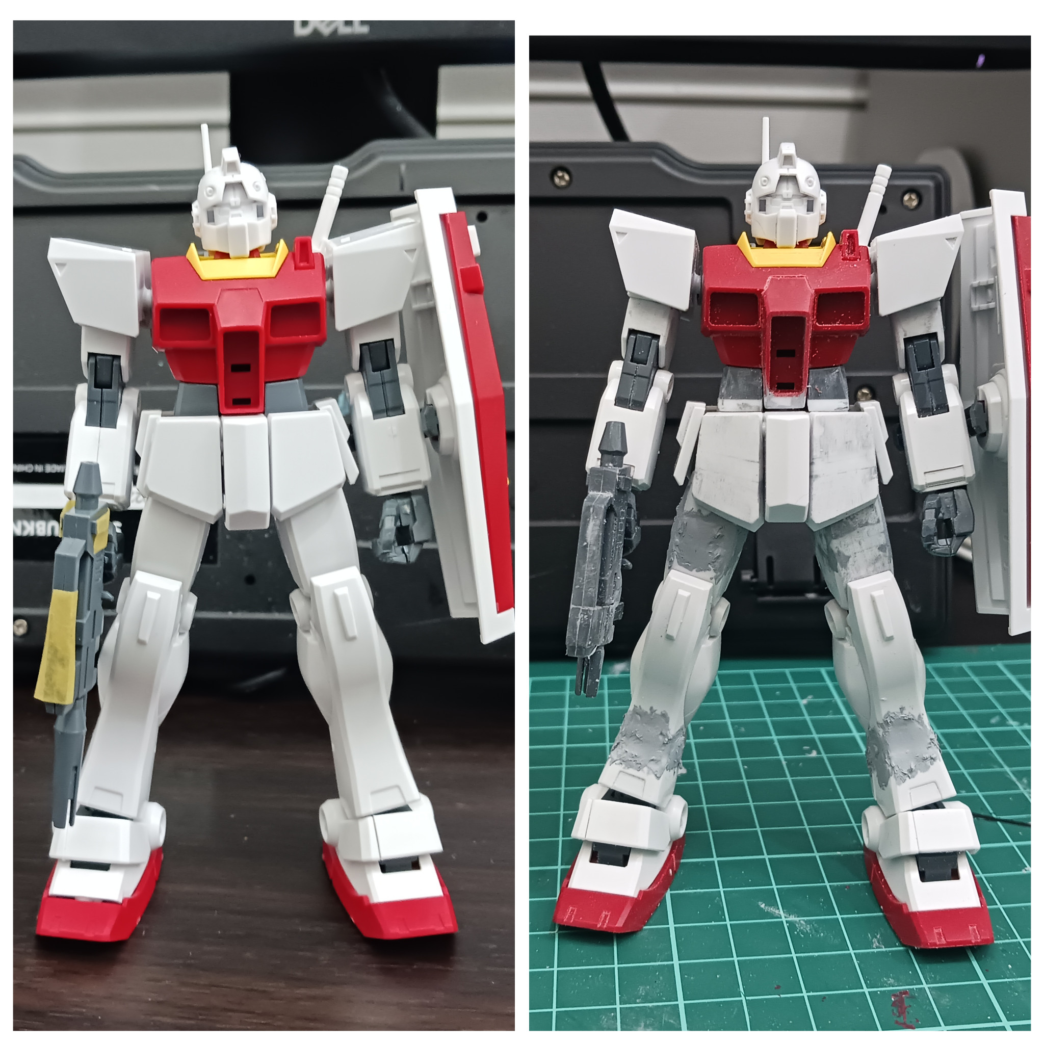 キットはジムⅢ金型がベースらしく、脛から下が長が目に感じました。脛を弄ってみと太股のバランスが悪くなり、それではと太股を弄ると胴体のバランスが悪くなりました。思いつき改修は宜しくないです。😖