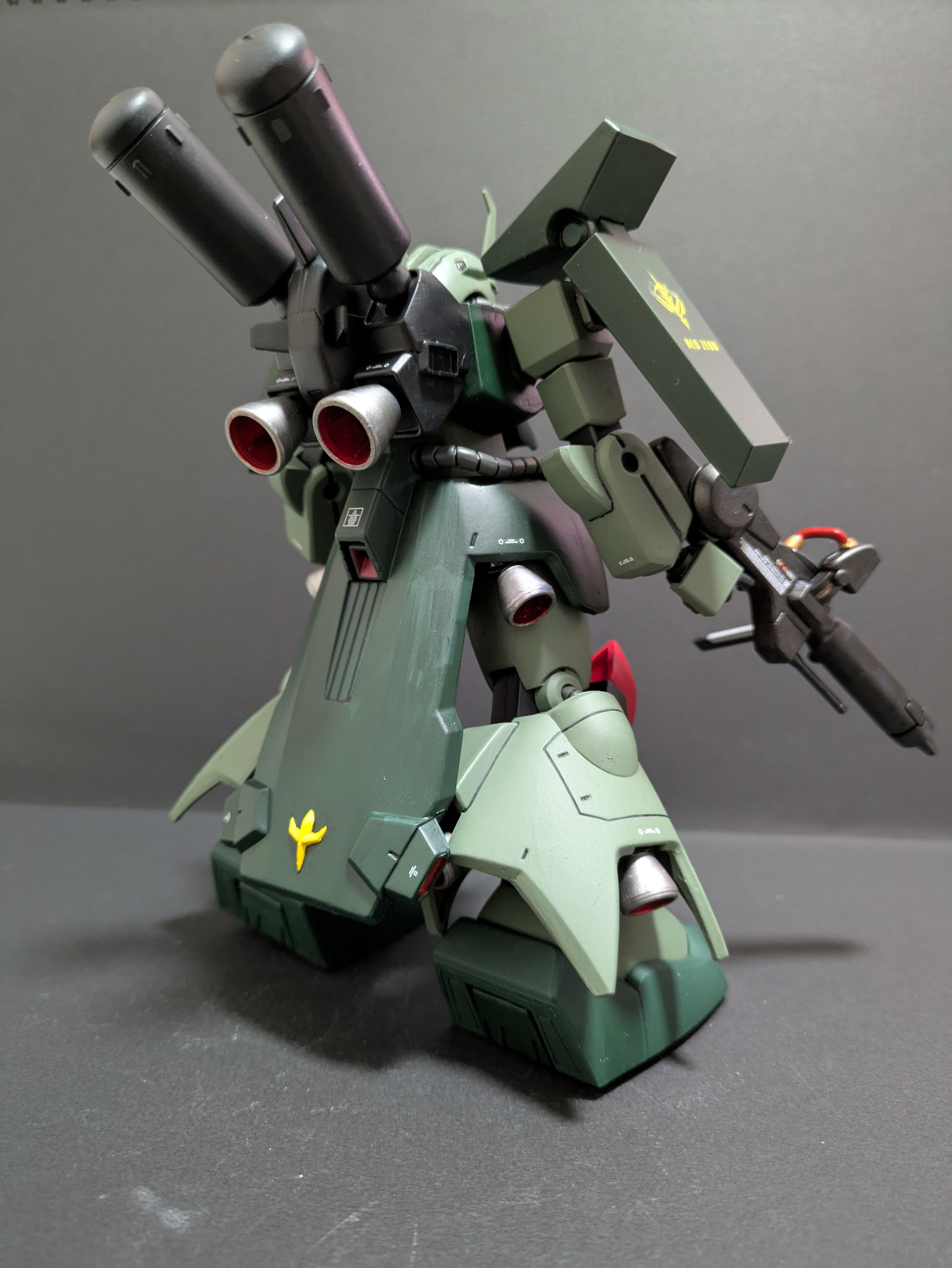 バックパックの超大型バーニア、リアスカート、プロペラントタンク等、ザクIIIからさらにゴツゴツした仕上がりになりました