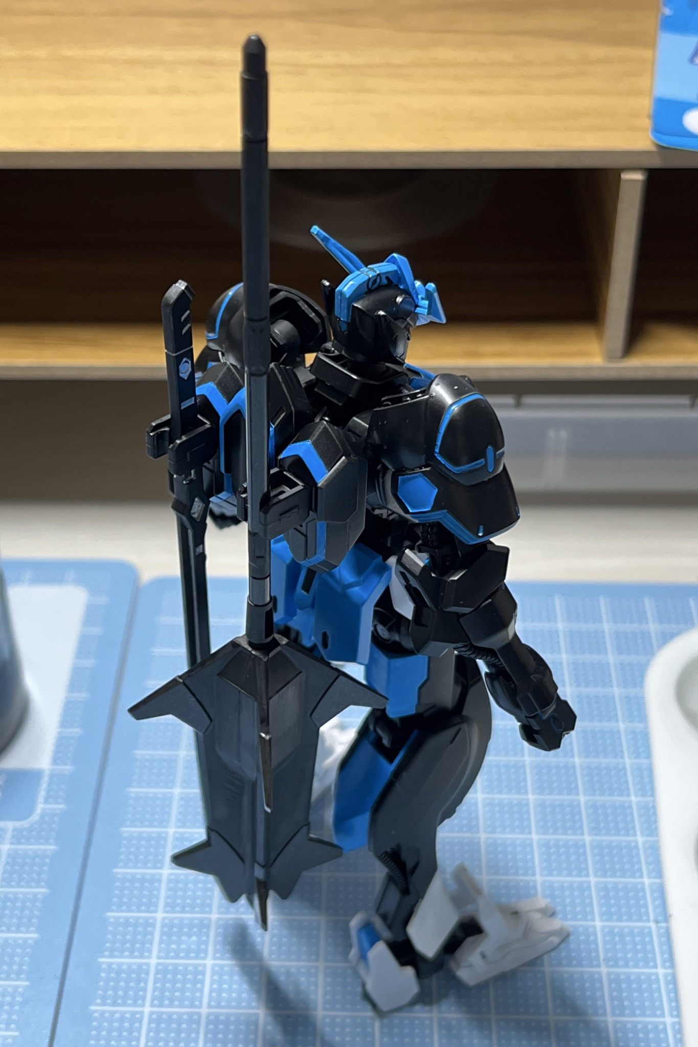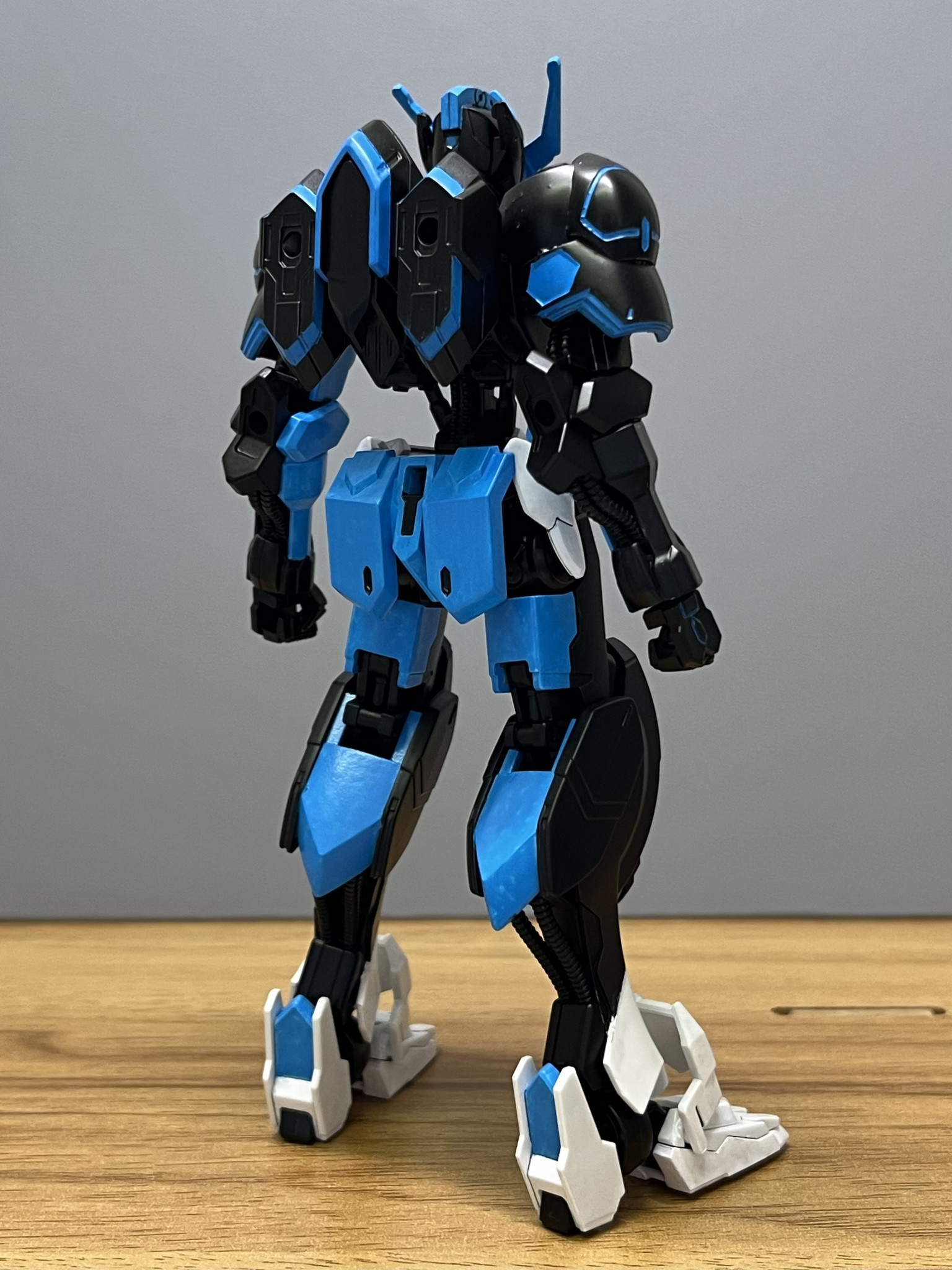 後ろ姿もバルバトスの意匠を残しながらも出来るだけウイングマンっぽく見えるように塗り分けを考えました。