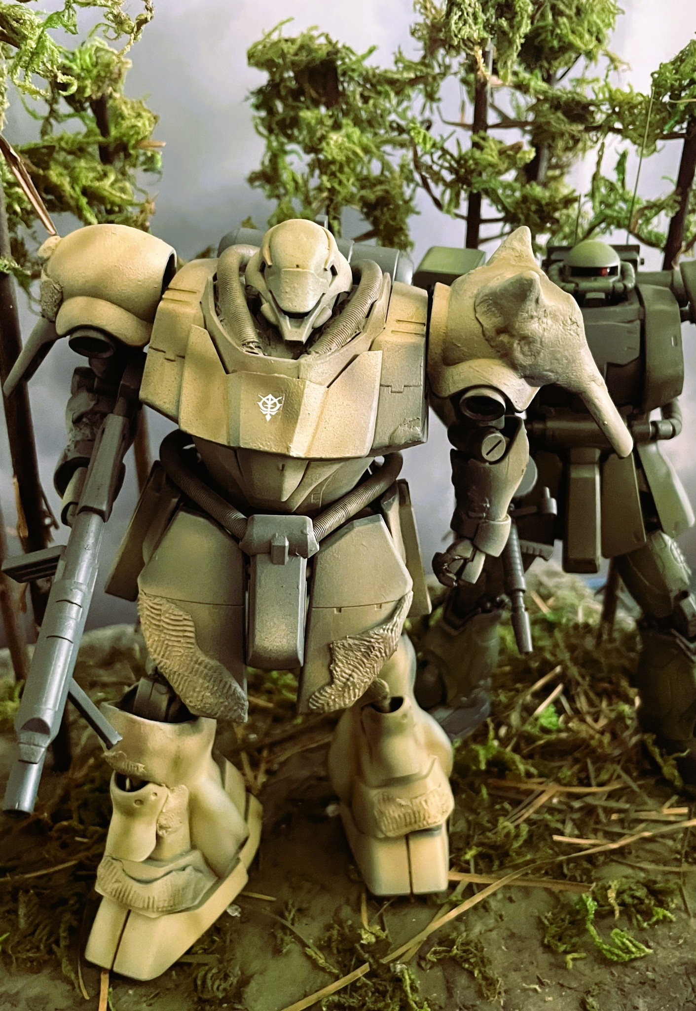 ザクを森林地帯のベースに配置したものです。
