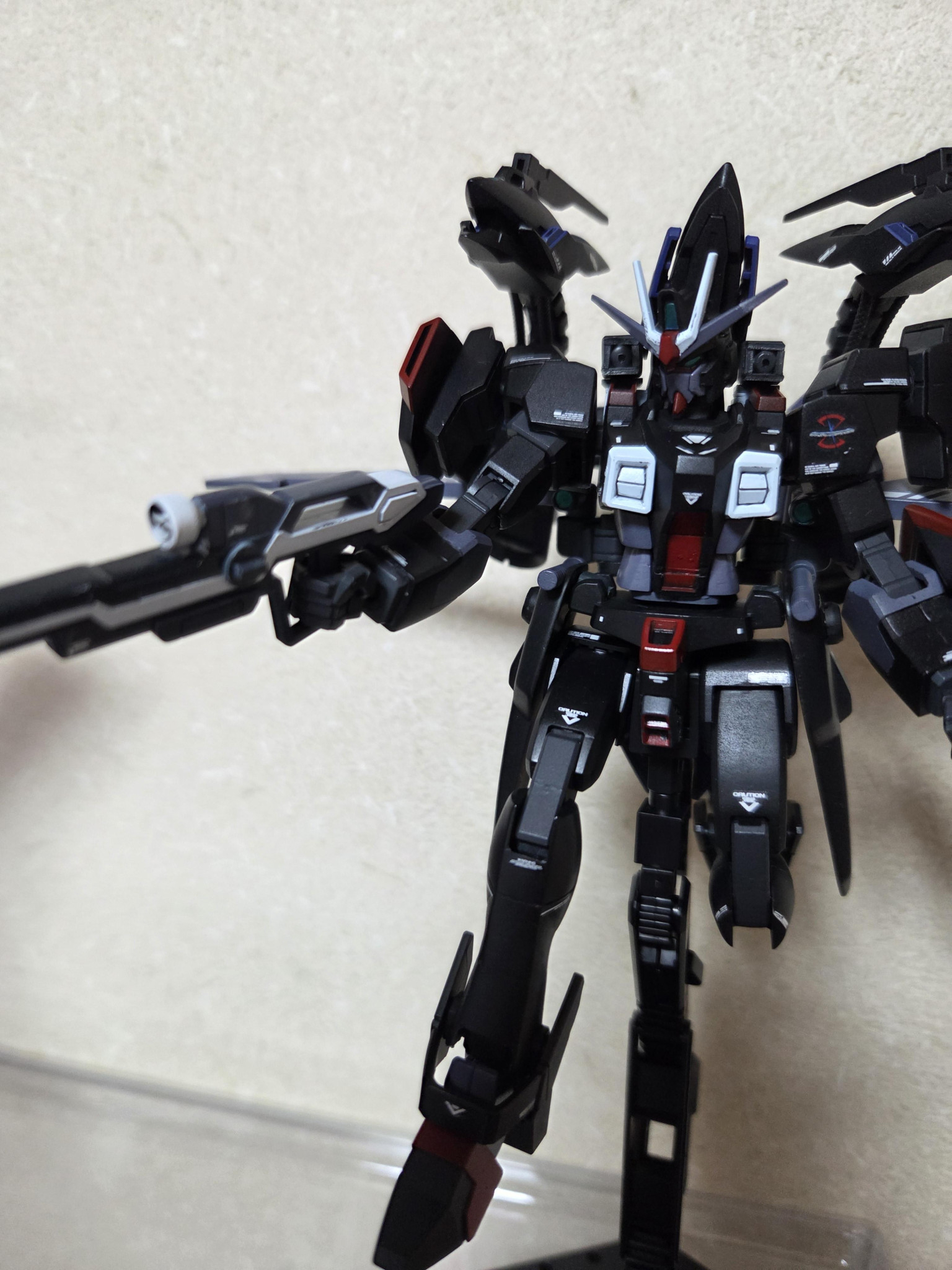 MS形態時には原型機と同じヴァジュラビームサーベルとビームファングに加え、腰部に移植したビームブレイドも使用できるようにしました。