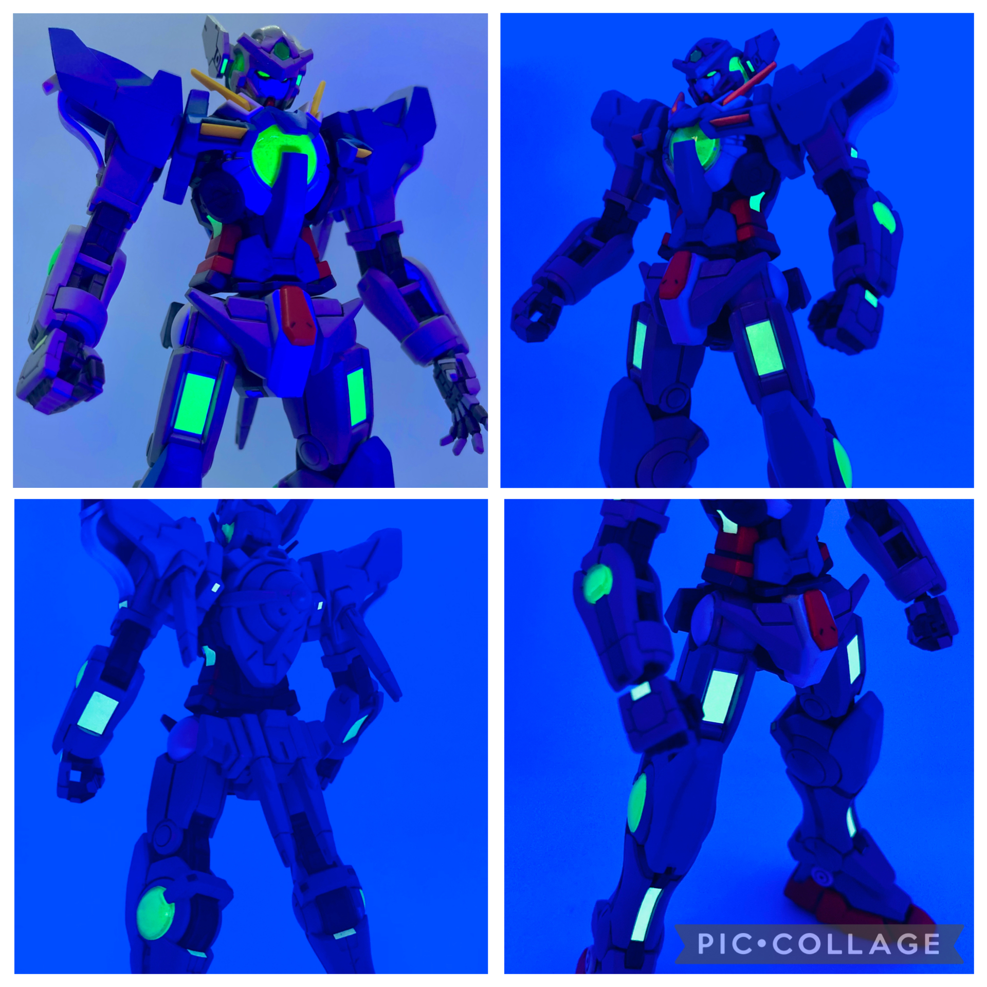 透明パーツの内側には蛍光塗料を、そして今回のハイライト‼️100均蓄光テープを太もも、すね、腕などに貼りUVライトを当てると‥。