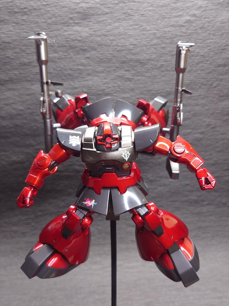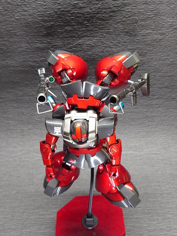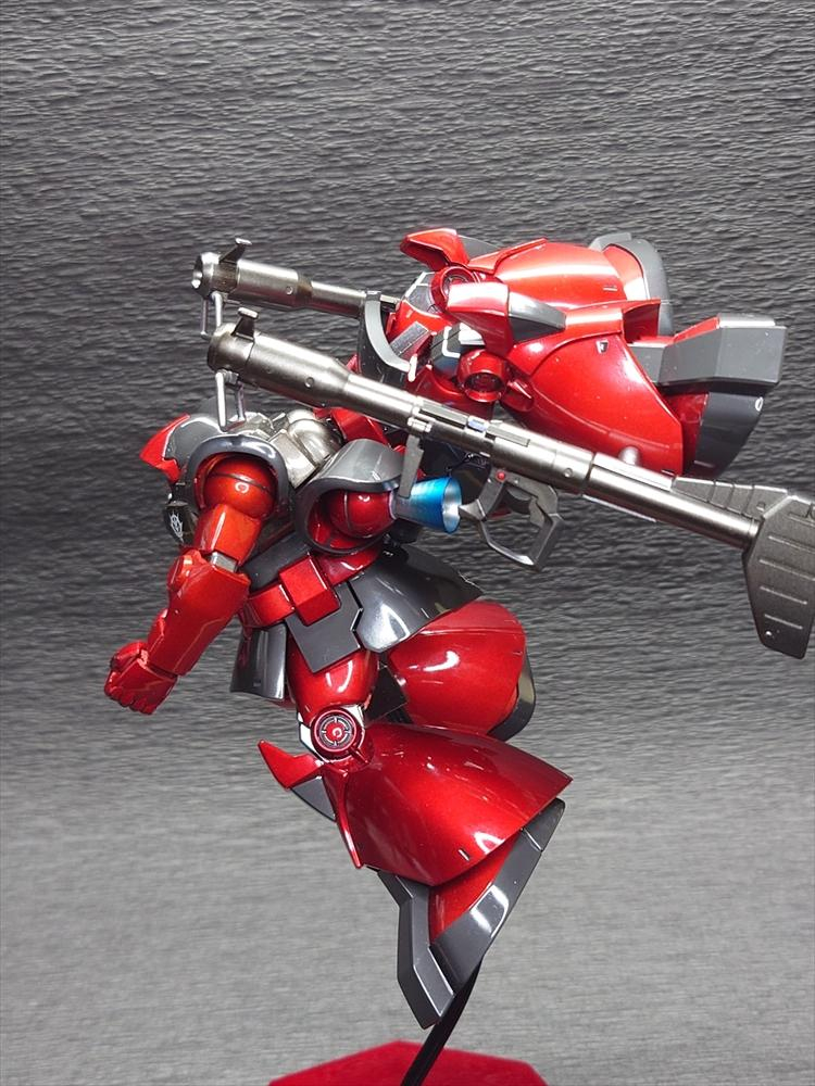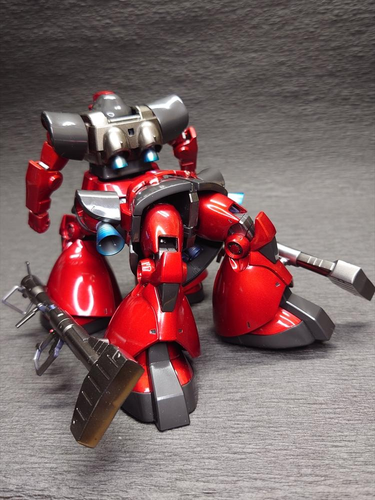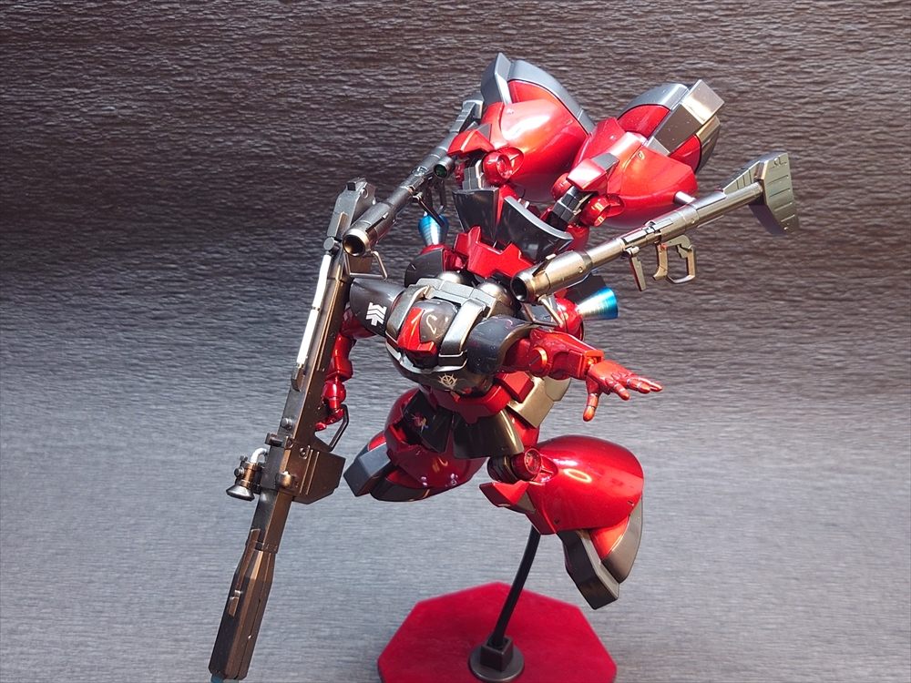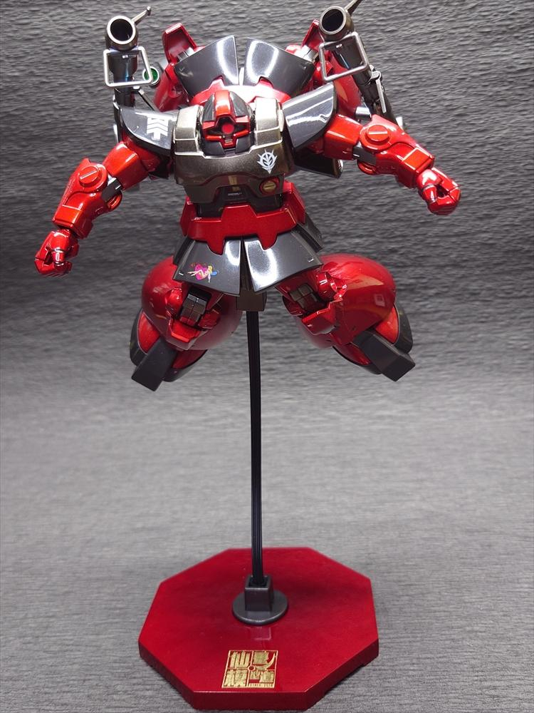 当初からドムはキャンディ塗装にしたかったので。べつに誰かの専用機という脳内設定はせずに製作。台座は100均から。