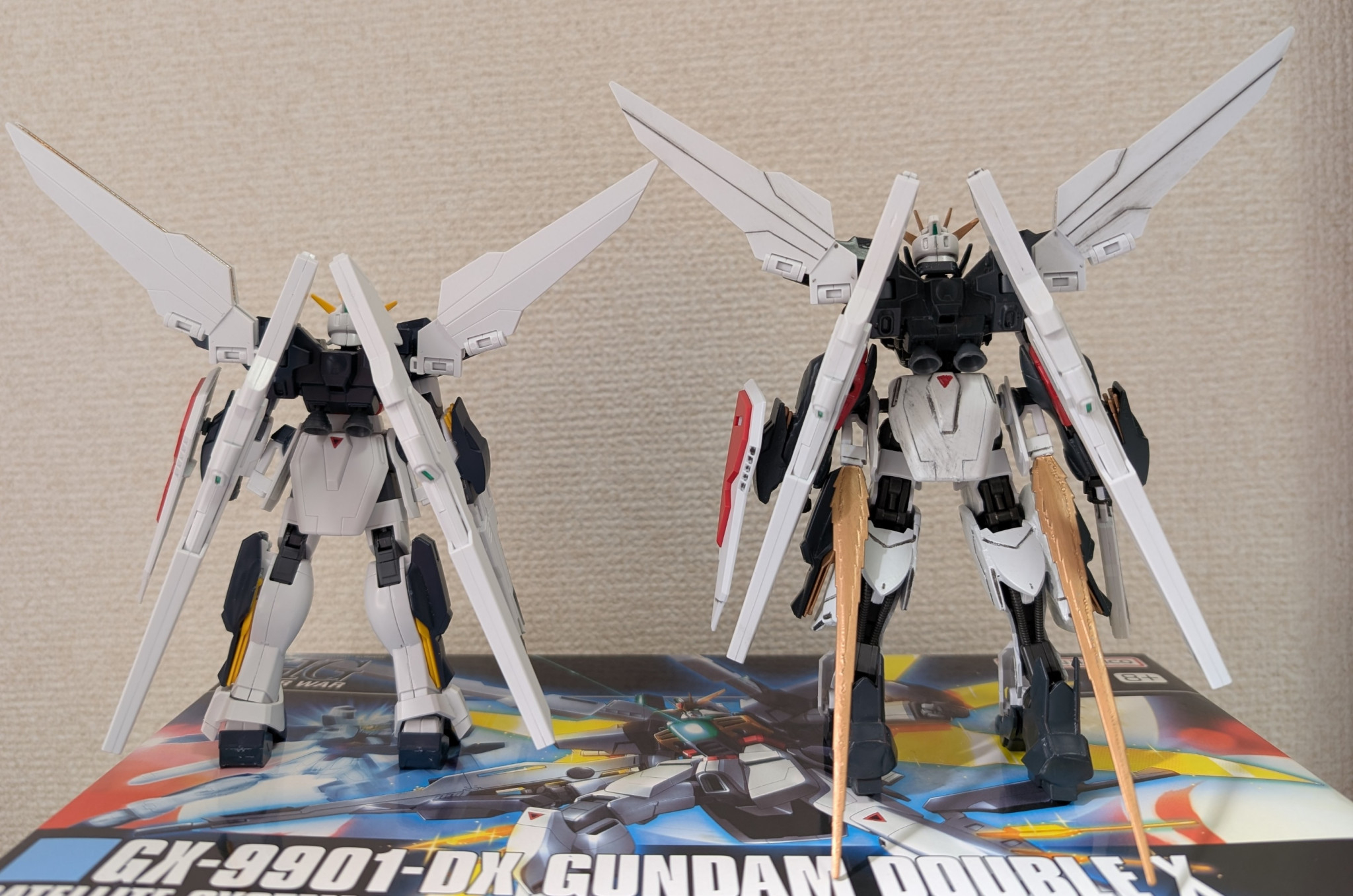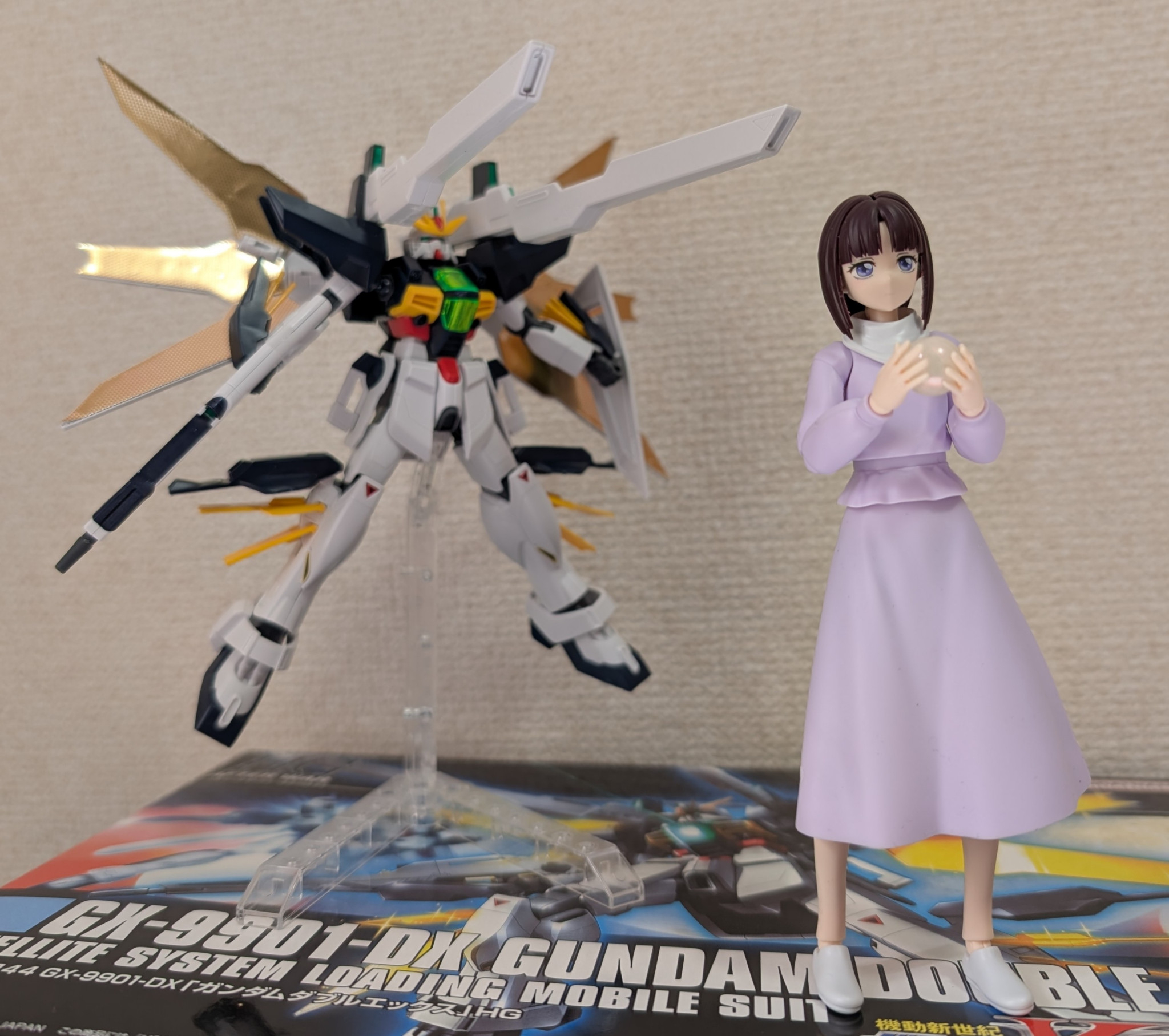 その記念に、直前に買った「HGAW」のダブルエックスと「鉄血版ダブルエックス(オロバス)」と共演させました♪♪