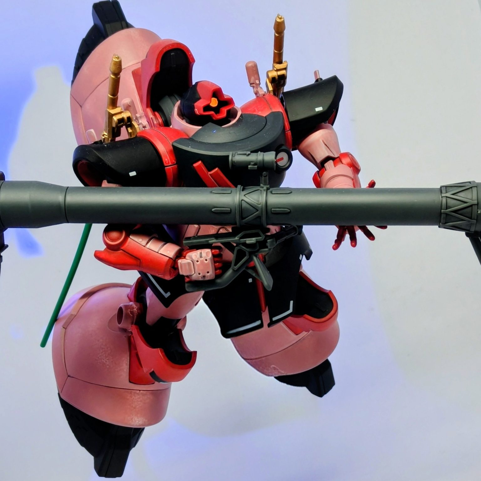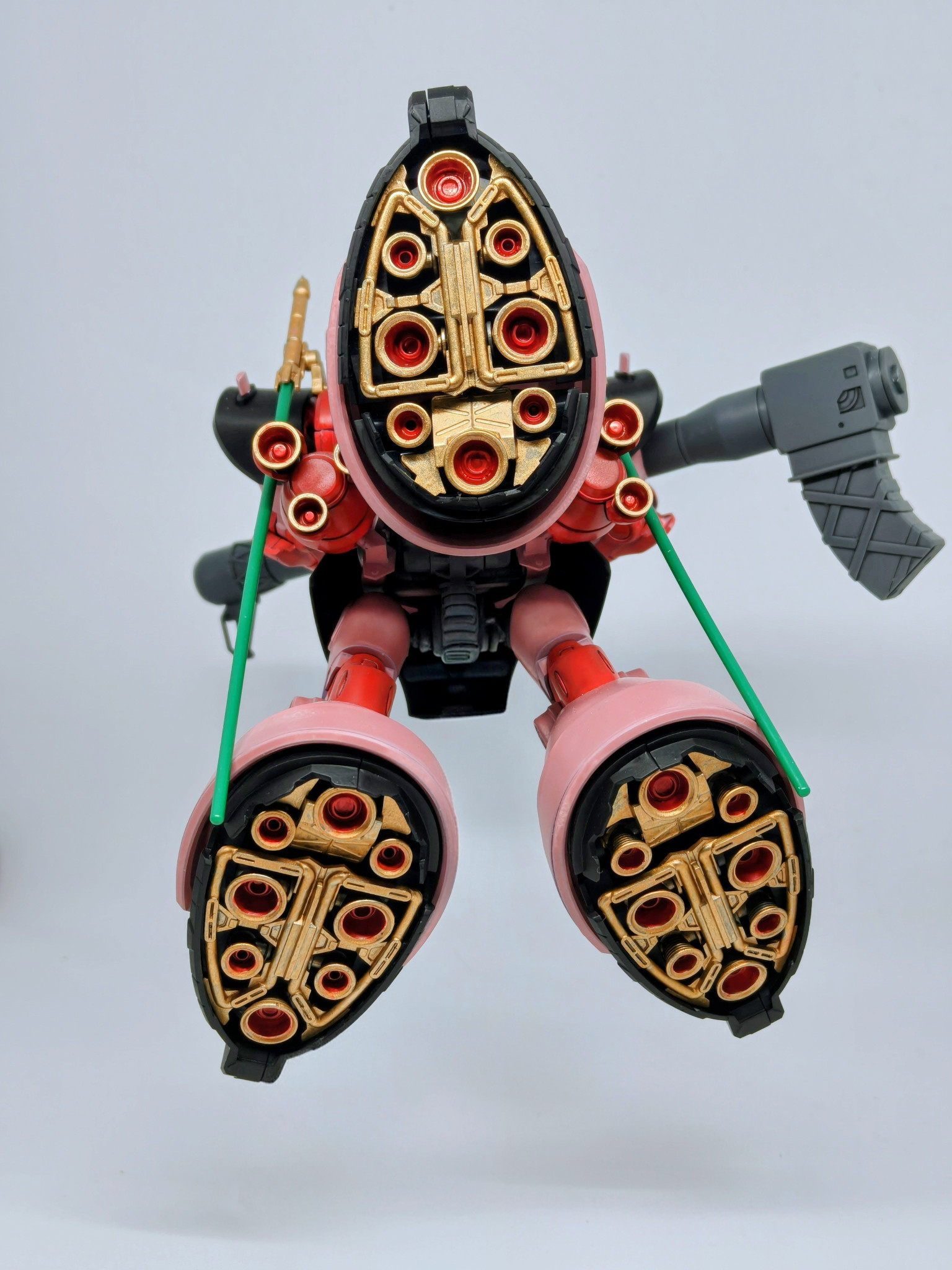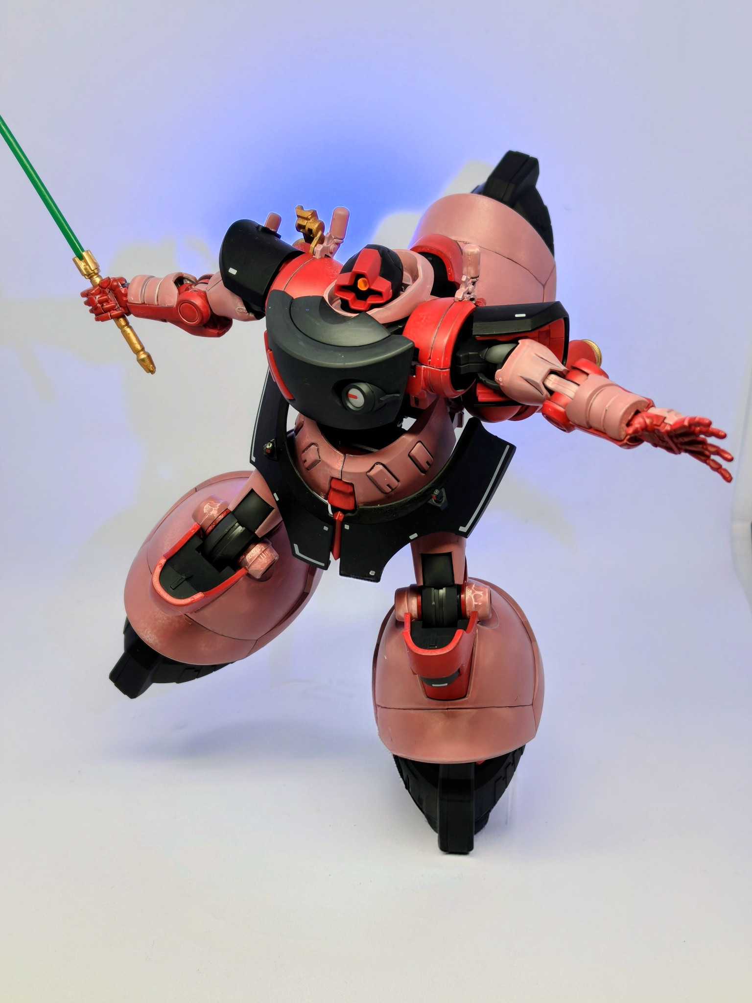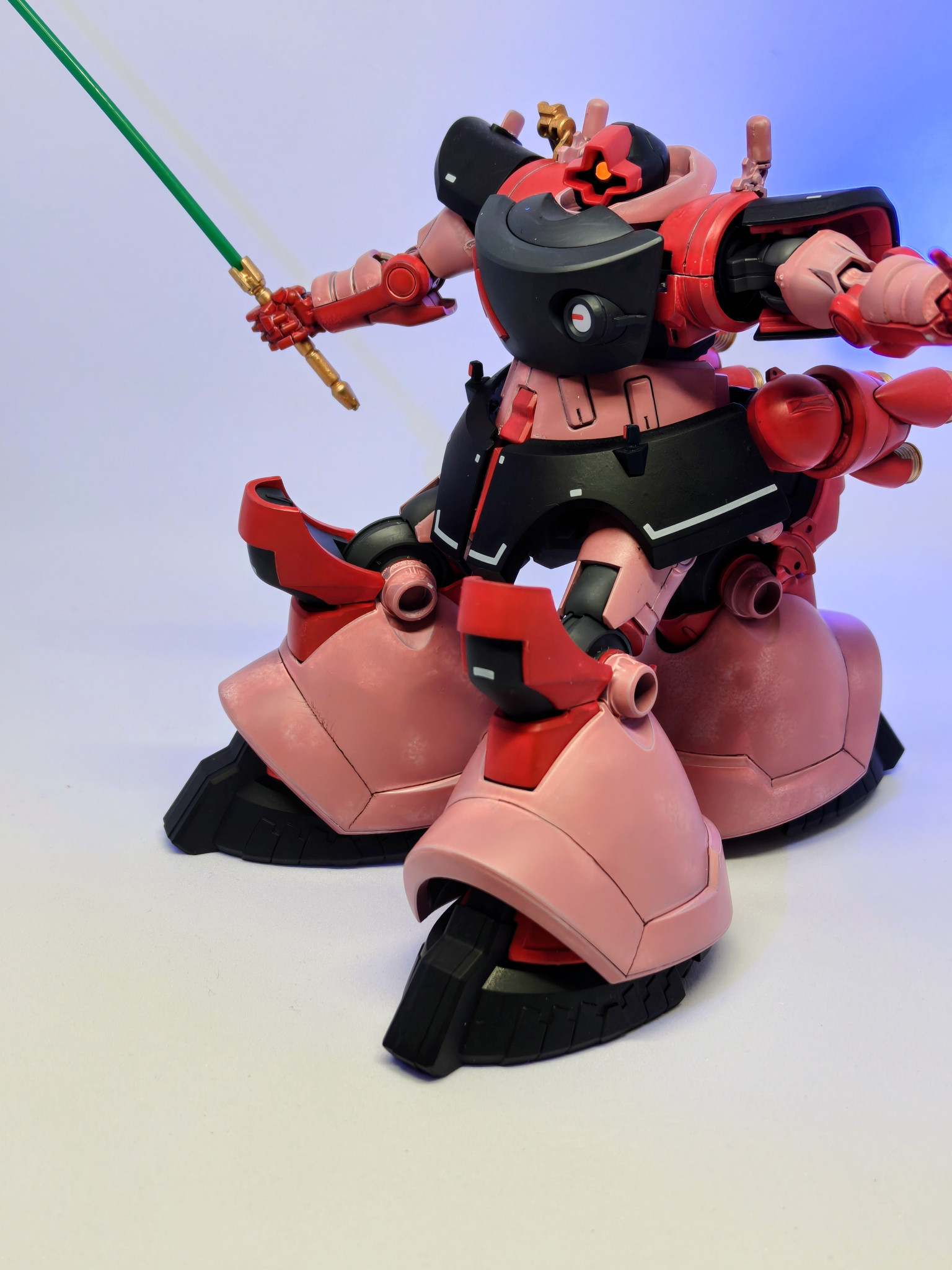 シャア専用リック・ドムといえば、個人的には黒いところは暗めの小豆色とかのイメージでしたが赤いガンダムを見習って真っ赤にしてみました。