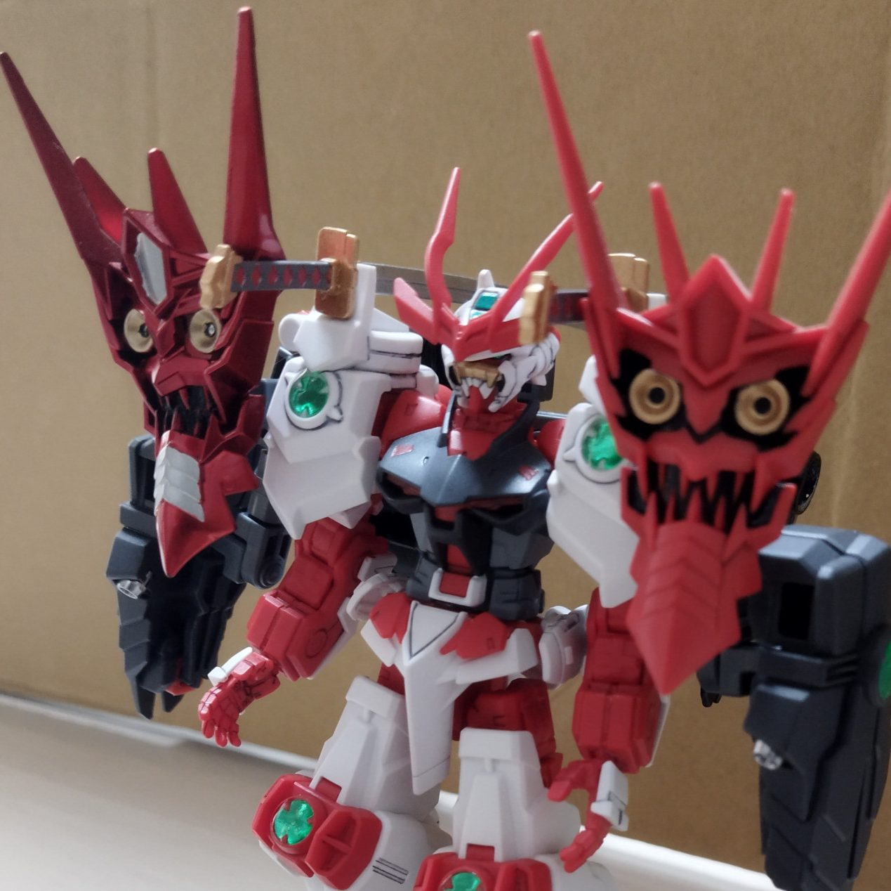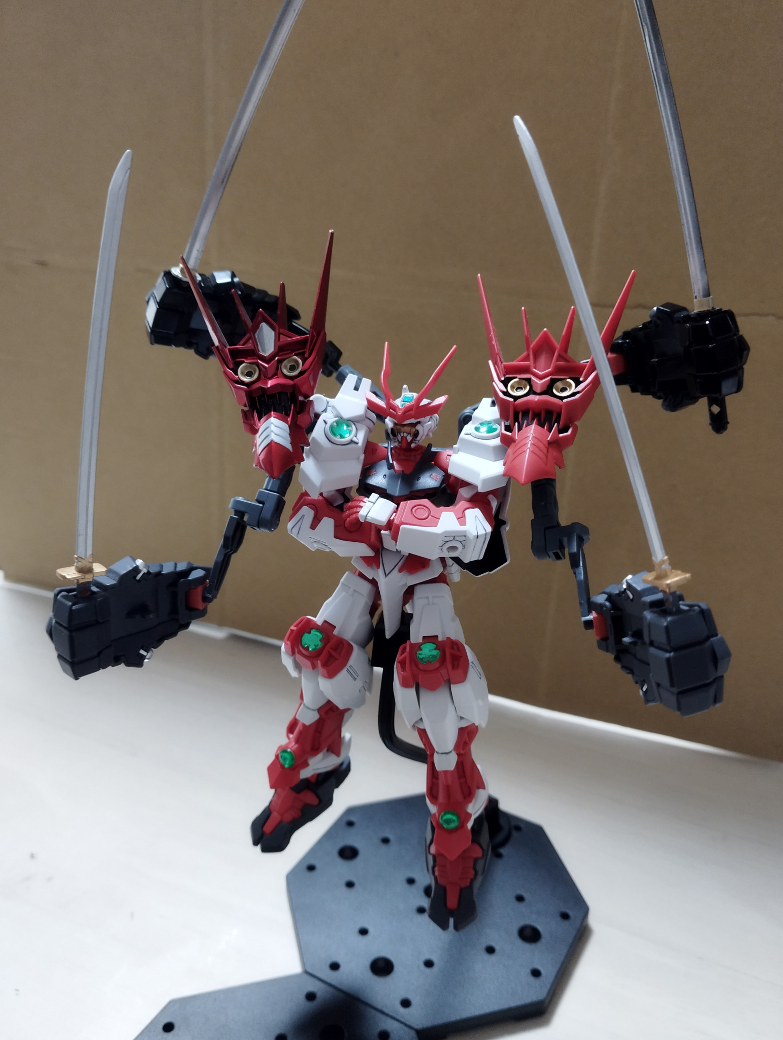 部品取りのつもりで塗装済みの戦国アストレイ2体( 1体はメッキ風)を手に入れてたんですが、前回のバルバタウロスで多腕にしたせいで、せっかくならと墨入れやレジンと塗装の変な所を修正して組んでみましたw