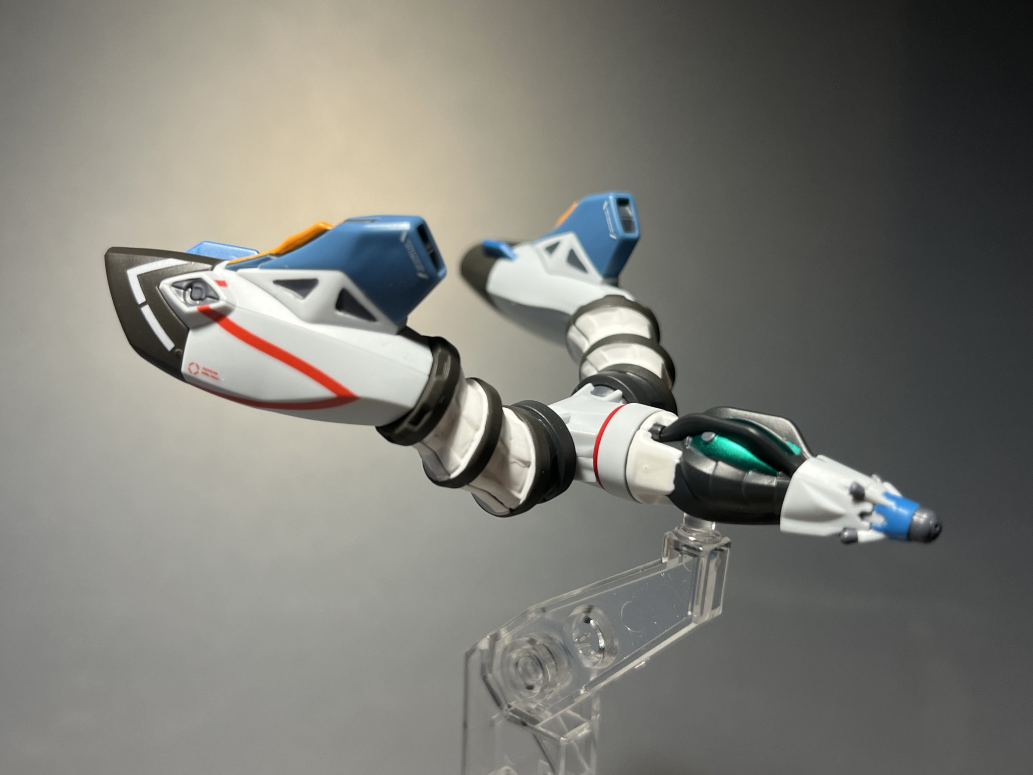 去年の夏頃にたまたまセブンイレブンで買えたジークアクス。手をつけたのは去年の9月でちまちまやすりがけまでは楽しかった。見慣れない立体なので部分塗装が必要な箇所を確認するだけで戸惑う。複雑な塗り分けで特にグレーを白に塗る箇所は手こずりました。普段ならマスキングしてエアブラシのところを筆塗りしたので時間かかりました。完成後はごちゃごちゃしてるのにまとまり感があり、山下いくとさんは凄いなと思いました。ここまでかっこいいと思ってなかったので合わせ目消しはやらず、後悔。やはり時間を掛けてでも自分の納得のいく工作をしておくべきでした。