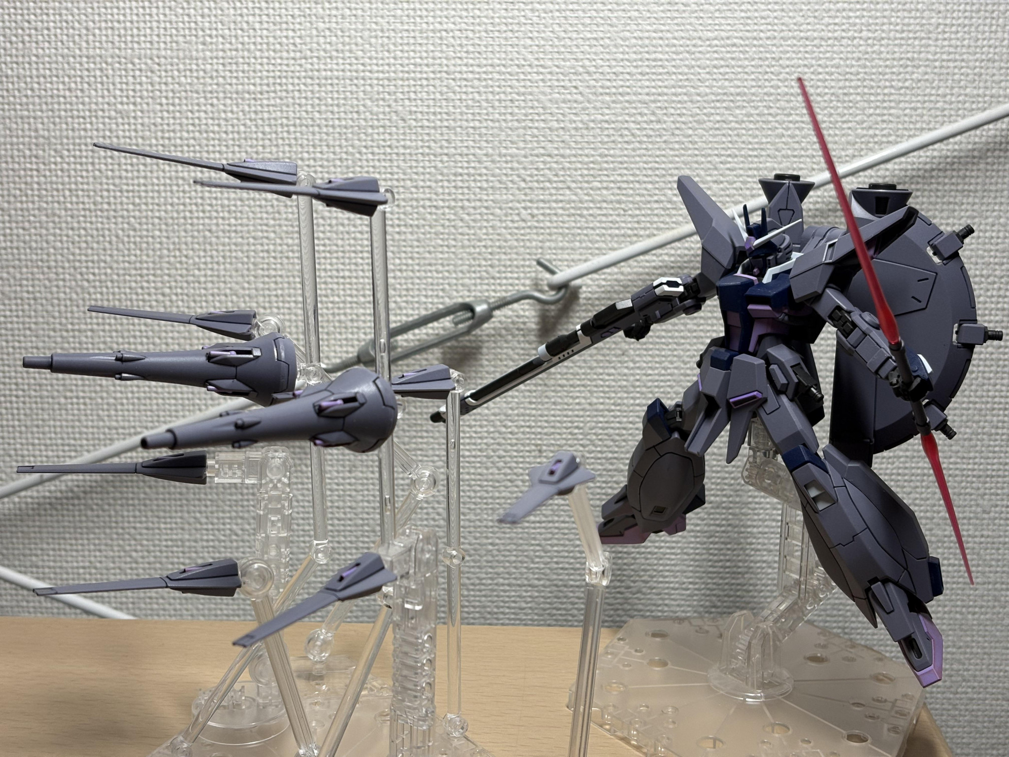 腰のドラグーン及び、大型ドラグーンの砲塔は、内部パーツカットして可動化してます。最速で組んで、加工方法とかYouTubeに載っけてくれる人、ありがとう!