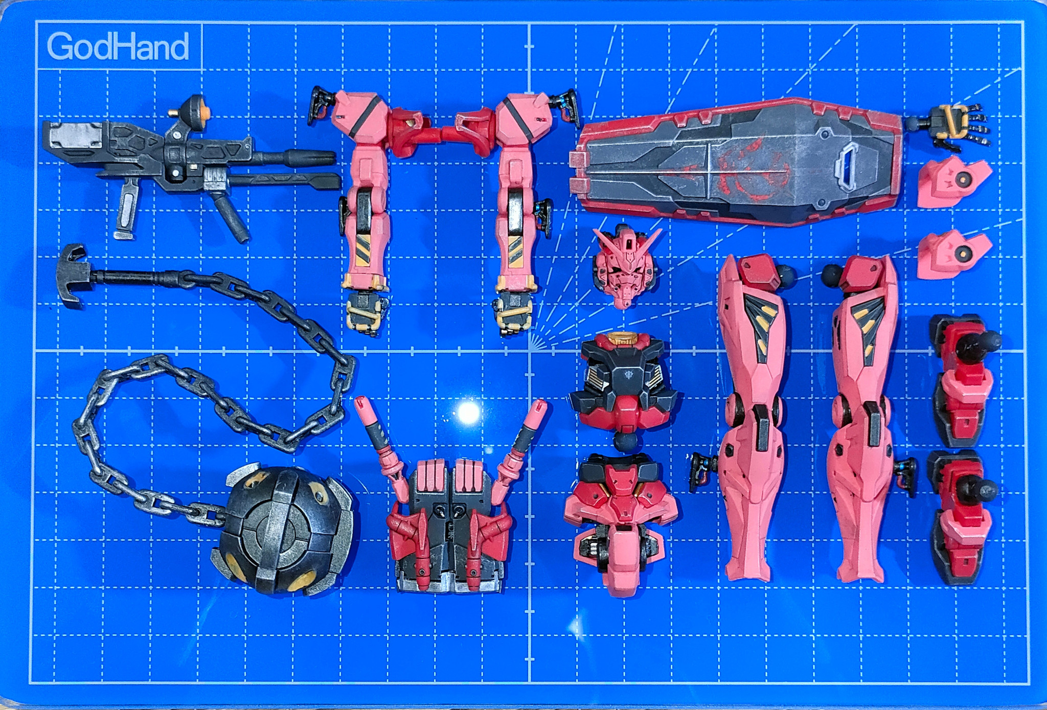 今回のお気に入りポイントは股関節辺りからチラ見えするシリンダーと胸のダクトの塗り分けです(笑)