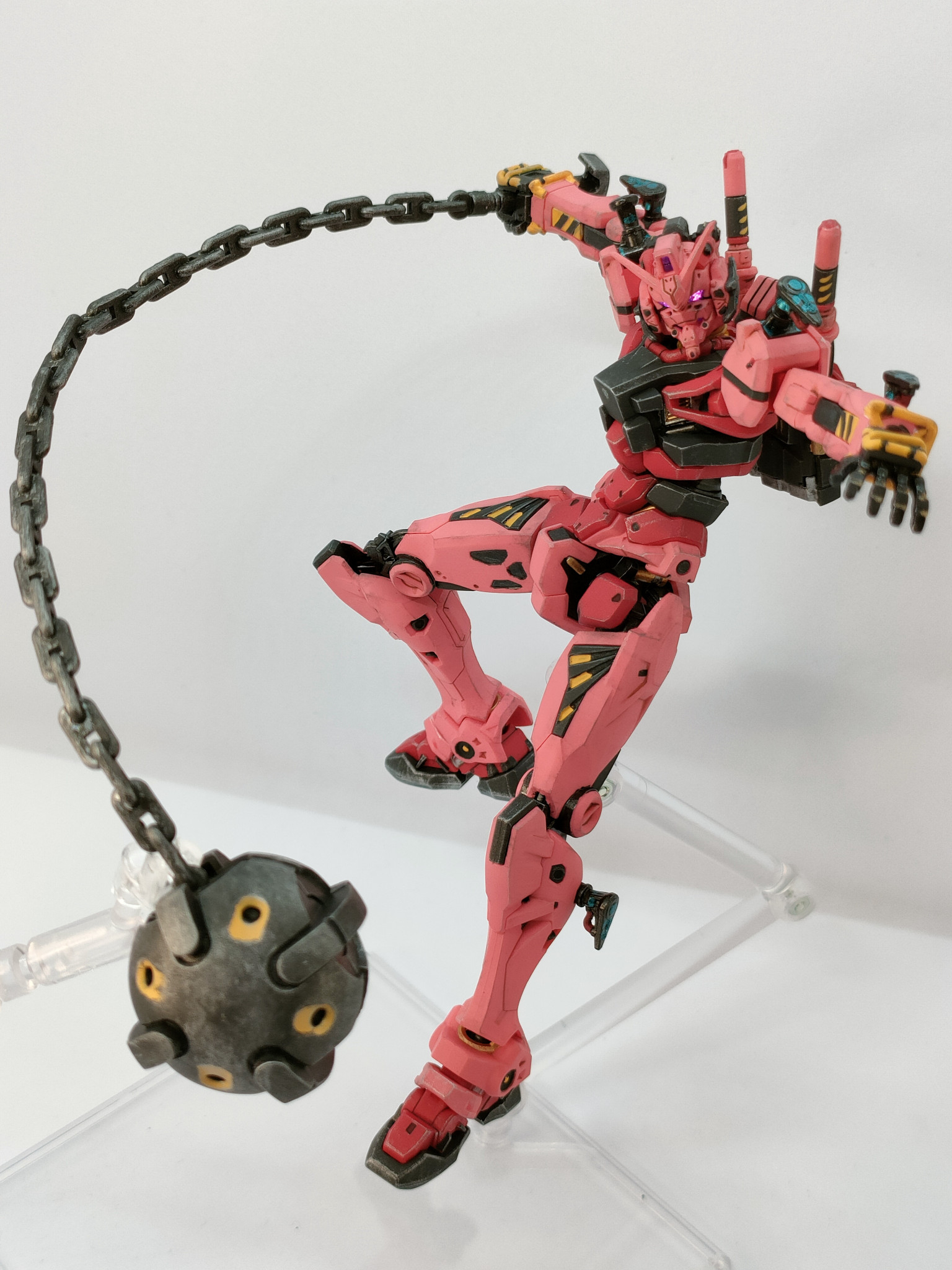 ガンダムマーカーと水性ウェザリングペイントで仕上げ、一部を真…